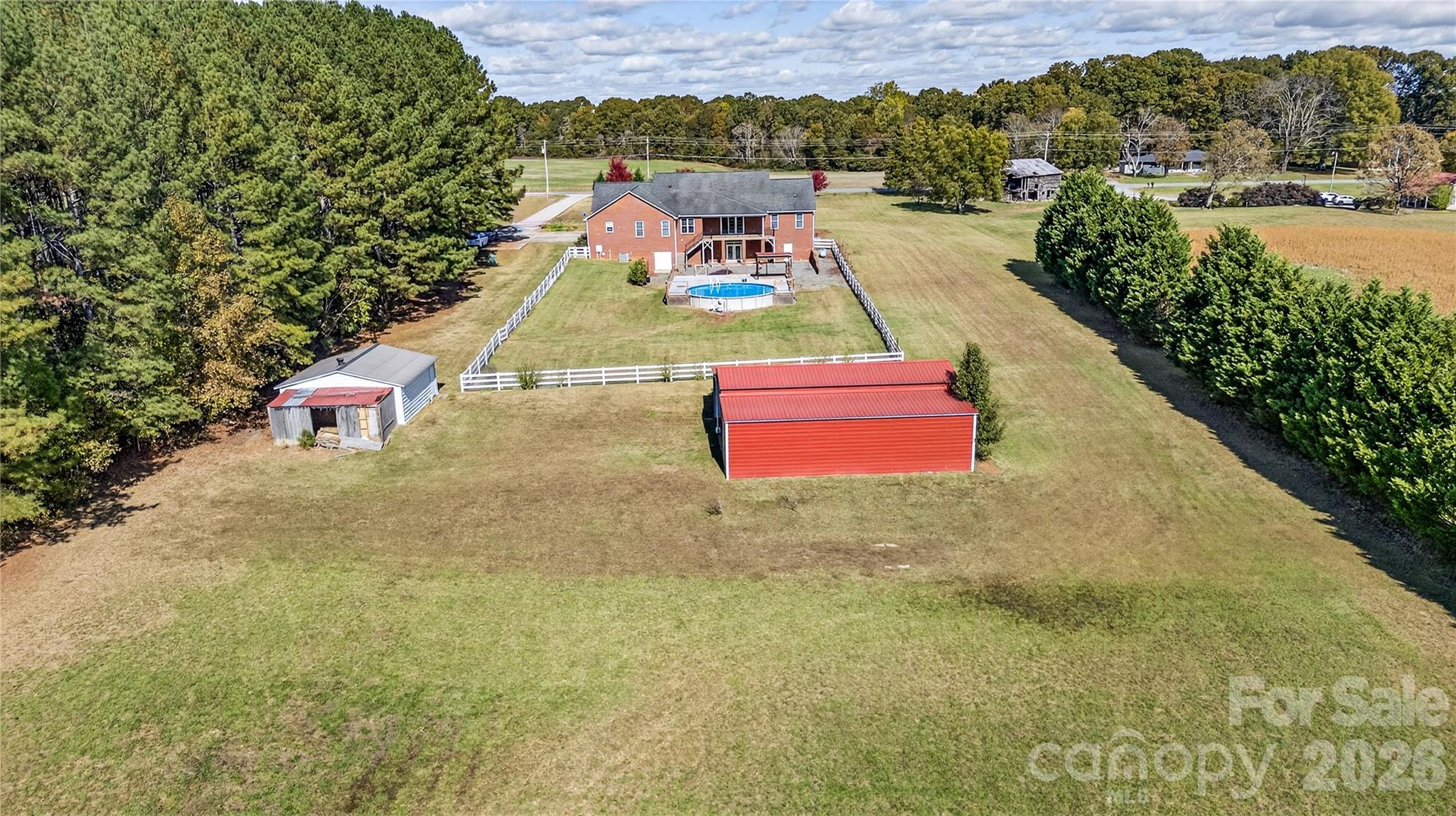 A rare opportunity just became even better-now $849,900 for 7.5 private acres, a full-brick ranch, heated walk-out basement, barn, pool, and endless flexibility. Welcome Home to 3987 Highway 27 W in Lincolnton! This full-brick, custom ranch beautifully combines comfort, function, and Southern Charm. From the moment you arrive, the welcoming rocking chair front porch invites you to sit back, relax, and enjoy peaceful views of the front yard and open fields beyond. Nestled on 7.5 serene acres with a small stream, fenced yard, above-ground salt water pool, and a versatile barn—this property is ideal for those dreaming of country living, a mini farm, or simply extra space for hobbies and toys. Inside, fresh neutral paint throughout this home, nearly 3,500 sq. ft. on the main level plus 1,900+ sq. ft. in the walk out basement provide incredible space and flexibility for any lifestyle. The bright, open floor plan features hardwood and tile flooring, soaring ceilings, and cozy gas log fireplaces in both the great room and primary suite. The chef’s kitchen offers granite countertops, a gas cooktop, stainless steel appliances, bar seating, and a sunny breakfast area—plus a separate dining room perfect for gatherings and holidays. The spacious primary suite includes a walk-in shower and generous closet space, while three additional bedrooms and a laundry room with cabinetry complete the main level. Downstairs, the partially finished basement offers a large recreation room, full bath, and abundant storage—it could easily be finished as a second living quarters, ideal for multi-generational living, guests, or an in-law suite. Enjoy two garages—one for parking and one designed for your workshop—with a convenient lift elevator for easy access to the main level. Step outside to the rear patio and soak in the tranquility of your private retreat. Are you a gardener? You’ll love the open, sun-filled space ready for your dream garden. Don’t miss this opportunity—ranch-style living at its finest, with room to grow, relax, and make lasting memories! With a little TLC and your personal touch, this could truly become your dream property! Easy access to HWY 321, Lincolnton, Hickory, Vale and Surrounding areas. CLT International Airport is only 38 miles!