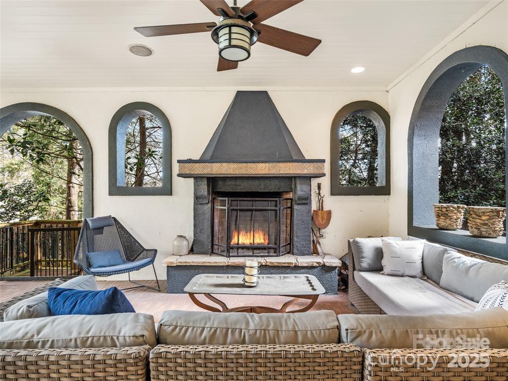 Step into timeless elegance with this 1920s Spanish Revival home nestled in the heart of desirable Kenilworth. Set on a professionally landscaped, oversized lot with lush gardens, this one-of-a-kind historic residence seamlessly blends classic charm with modern comfort. Featuring 4 bedrooms and 3.5 baths. Spacious primary suite with a Juliet balcony, home office on the main level, and gym and guest quarters on the lower level. The unique octagonal great room serves as the centerpiece, complete with a wood-burning fireplace—perfect for cozy evenings or entertaining guests. Formal dining with French doors. Modern kitchen with new Wolfe range. Light-filled living room with built in bookcases. Enjoy outdoor living on the covered veranda with its own fireplace and generous seating area ideal for outdoor entertaining. Thoughtfully designed for today’s lifestyle, the property includes radiant floor heating, ample storage, and a new roof (2022). Pet-friendly with a private drive, plentiful parking, and a 1-car garage. Just minutes to Downtown Asheville and historic Biltmore Village—this rare gem captures the best of Asheville living. 9 Duke St. (pin# 964895000000000) included and is a buildable lot.