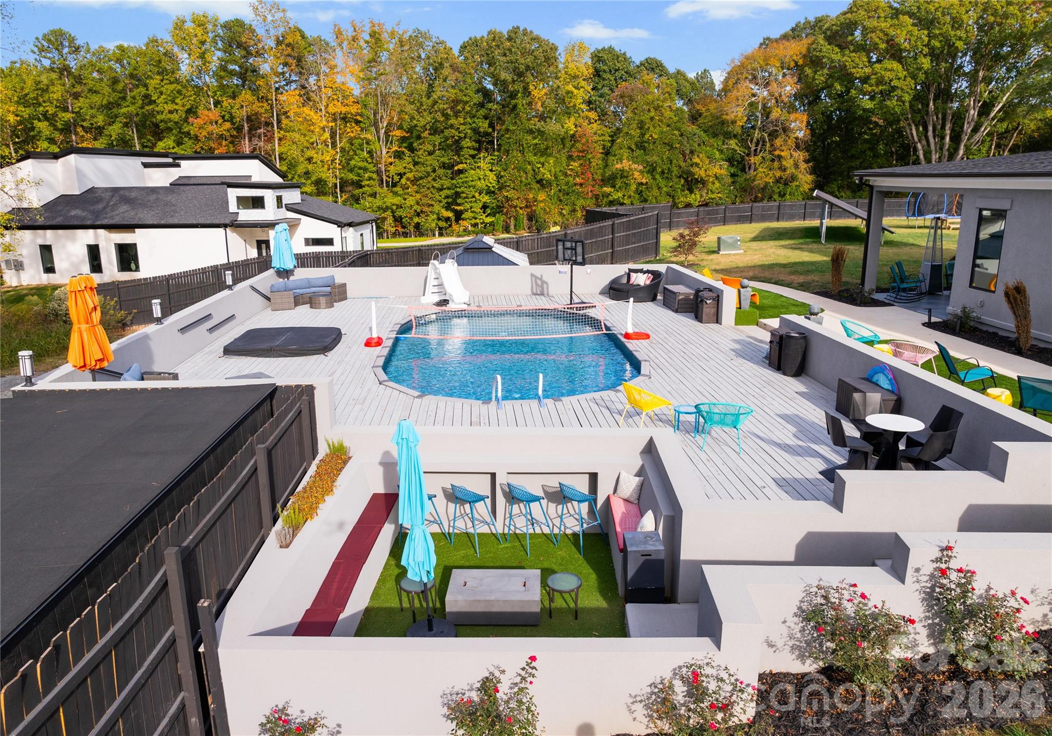 Just minutes from Lake Wylie, this modern masterpiece invites you to experience the perfect harmony of tranquility and entertainment. Set on 3.27 acres, this estate offers a private resort atmosphere designed for those who want to live without compromise. Step inside to discover 5 exquisite bedrooms, 5 full baths, and 2 half baths, anchored by expansive living spaces that blend style and function. A custom theatre with wet bar, office loft, and game room make this home ideal for both work and play, while a 380-gallon saltwater aquarium adds a captivating focal point to the main level. Outdoors, every amenity has been curated for indulgence and connection. Two sparkling pools, a hot tub, and two distinct BBQ entertainment areas—including one with air conditioning, TV, and a pizza oven—create the ultimate setting for gatherings. A commercial-grade gym with massage chair and sauna transforms daily wellness into a luxury experience. Family-friendly features include a gated playground with dual trampolines, and practicality meets passion with a 5-car garage and a 15x32 powered storage building. The comprehensive security system ensures peace of mind, while the guest house provides the flexibility of hosting extended family or generating Airbnb income. Whether you’re seeking peaceful seclusion or an entertainer’s dream, 15700 Youngblood Rd delivers both in stunning fashion.