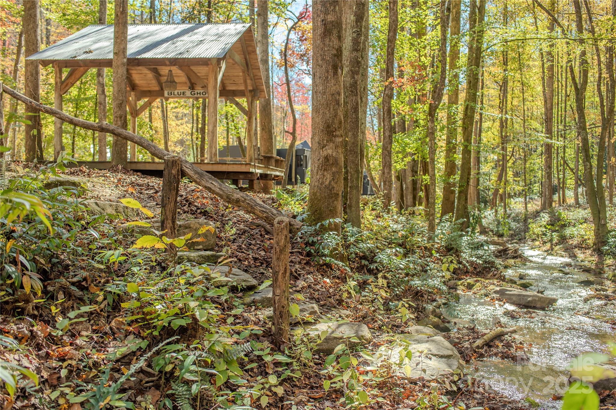 Exceptional long-range ridgetop view lots combined with luxury treehouse-style lodging in a creekside campground make this quiet, forested mountain property 12 minutes from downtown Brevard a true once-in-a-lifetime opportunity. Easily accessed by good roads, the view lots feature installed power, roughed-in drives, gentle building sites and dramatic southerly views. The luxury campground is anchored by a rocky, tumbling creek flowing past three luxurious treehouse accommodations, each flanked by a stream-side open pavilion. Open recreation areas include large, lavish bath houses, swings, fire pits and play areas. Cobbled creek beds and clear, musical water courses are highlighted by a small waterfall and stepping-stone crossings below the confluence of two mountain streams. A quick and easy drive to downtown Brevard provides fine dining, shopping, live music, and a vibrant Appalachian small-town scene. Pisgah National Forest, which bounds the property on two sides, provides unlimited adventure and outdoor experiences including trout fishing in bold rivers, rock climbing, paddling, and hiking to find waterfalls, rock faces, spectacular views and hidden natural landscape features.