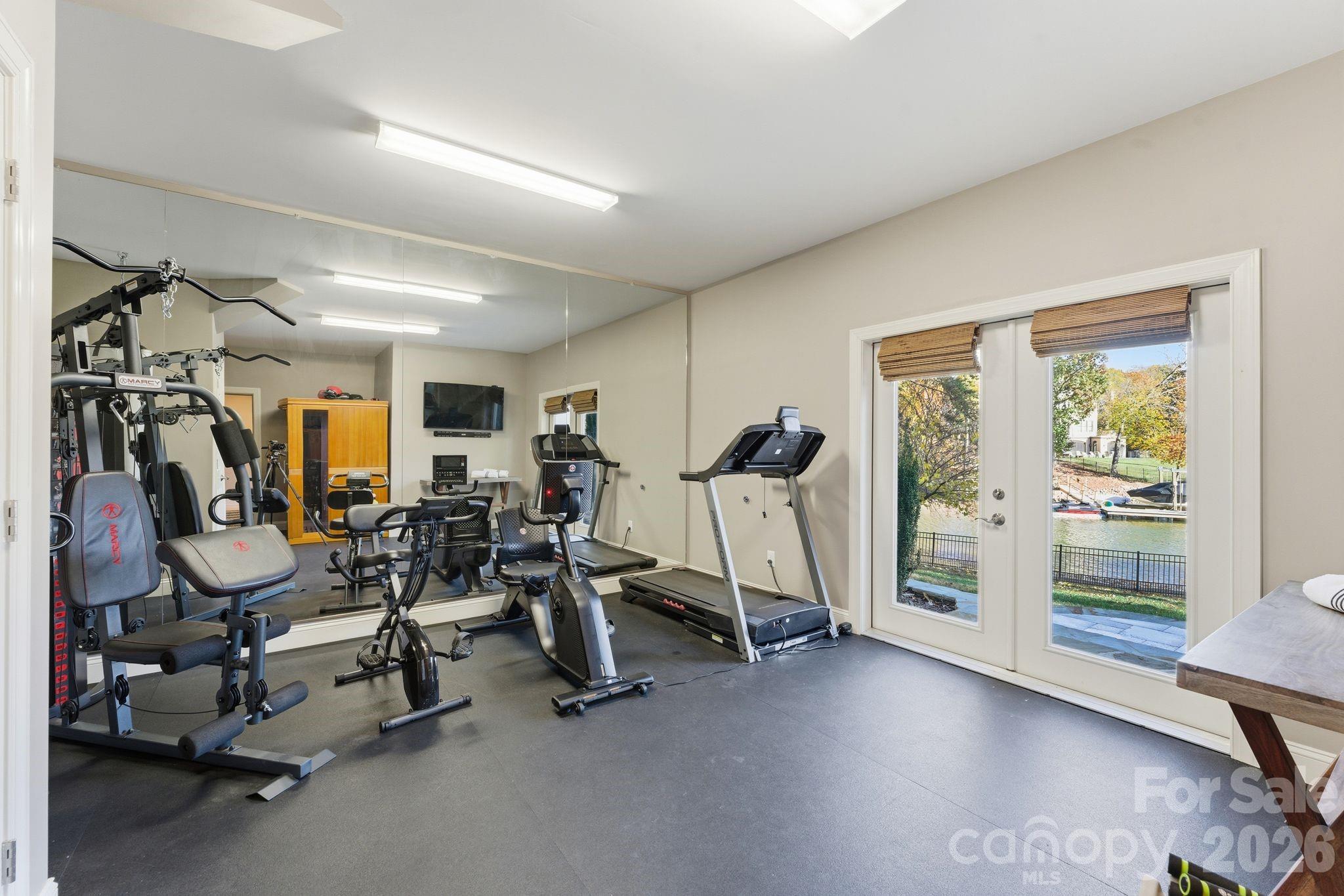 Waterfront Luxury at The Point, Trump National Golf Course This meticulously maintained stucco and stone home, located within the desirable Point Trump National Golf Course community, delivers the ultimate Lake Norman lifestyle, boasting a sandy beach and great water views. Enjoy exceptional privacy and immediate lake access with a newly rebuilt Private DOCK, sitting area and boat lift, complemented by a desirable sandy beach. For complete peace of mind, a whole house generator was installed in 2024. Step inside to an inviting foyer that leads to an executive office/den with a gas fireplace. The open-concept main level is perfect for entertaining, featuring a beautifully updated upscale kitchen with ample workspace and seating, and high-end finishes. The kitchen boasts stylish Quartz counters, a coffered ceiling, Wolf cooktop, double oven, and a built-in microwave drawer, flowing seamlessly into the large breakfast area and the stunning two-story Great Room with a floor-to-ceiling stone fireplace and abundant natural light. The well-appointed formal Dining Room features a chair rail, a stylish chandelier, and a butler's pantry, perfect for formal occasions. Step out to the recently rebuilt, large balcony with Montalcino Porcelain tile highlighting the beautifully landscaped yard, outdoor kitchen, travertine patio and exterior hot tub. The oversized Owner's Suite on the main level overlooks the lake and features a private Juliet balcony and a newly built spa-like primary bathroom designed for luxury. This retreat boasts dual vanities with quartz counters, a soothing soaking tub, a sleek glass shower, and herring bone radiant heated tile floors. The upper level has been updated with new hardwood floors and hosts three spacious bedrooms with newer baths, plus a large bonus room and a comfortable computer work area/loft. The walk-out Lower Level is an entertainer's dream, featuring a full bar/kitchen area, a billiards/recreation room with a gas fireplace, a dedicated theater room, a fifth bedroom, and an exercise room with a sauna. This is a superior home perfectly equipped for gracious lake living and entertaining.