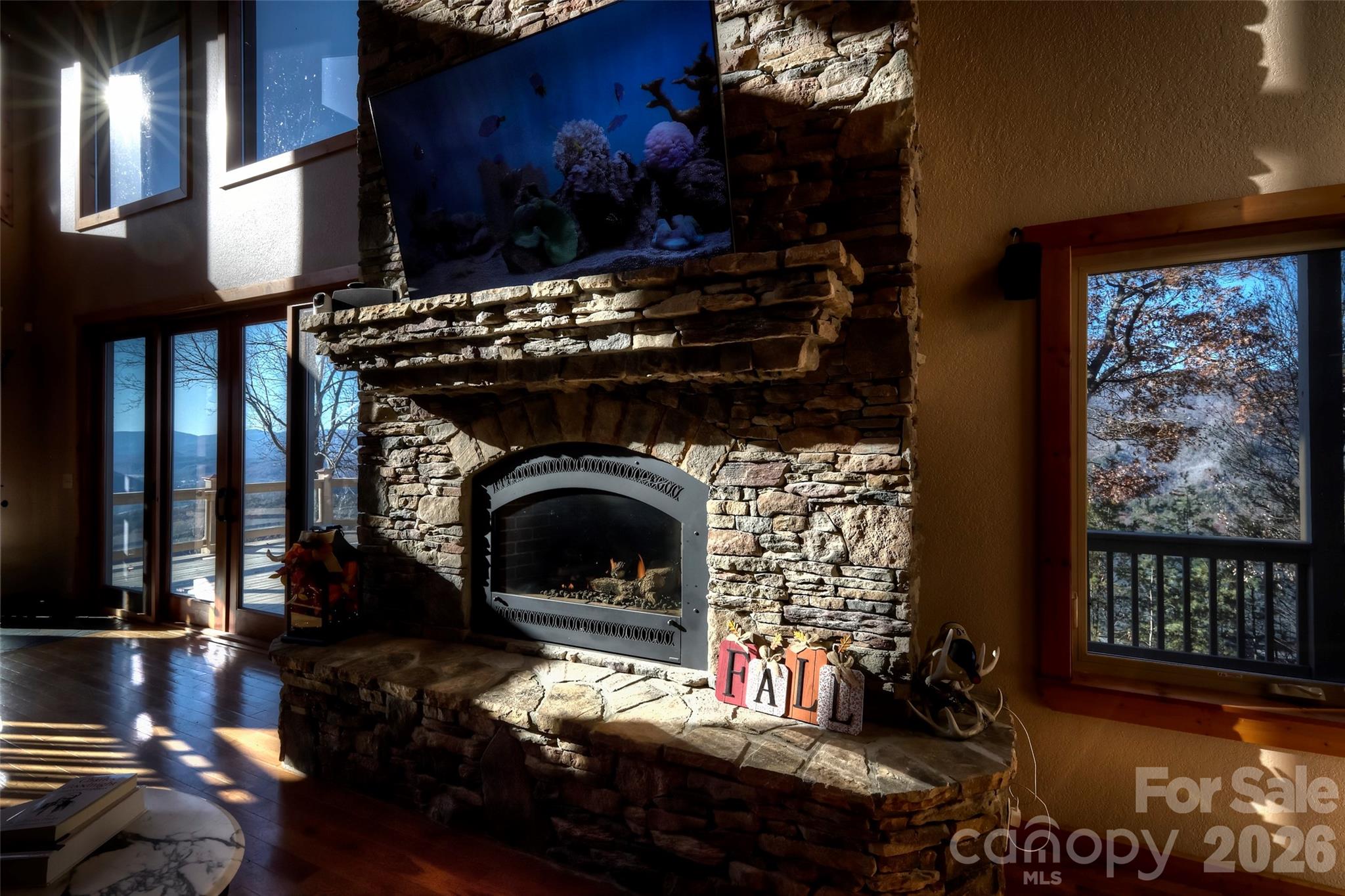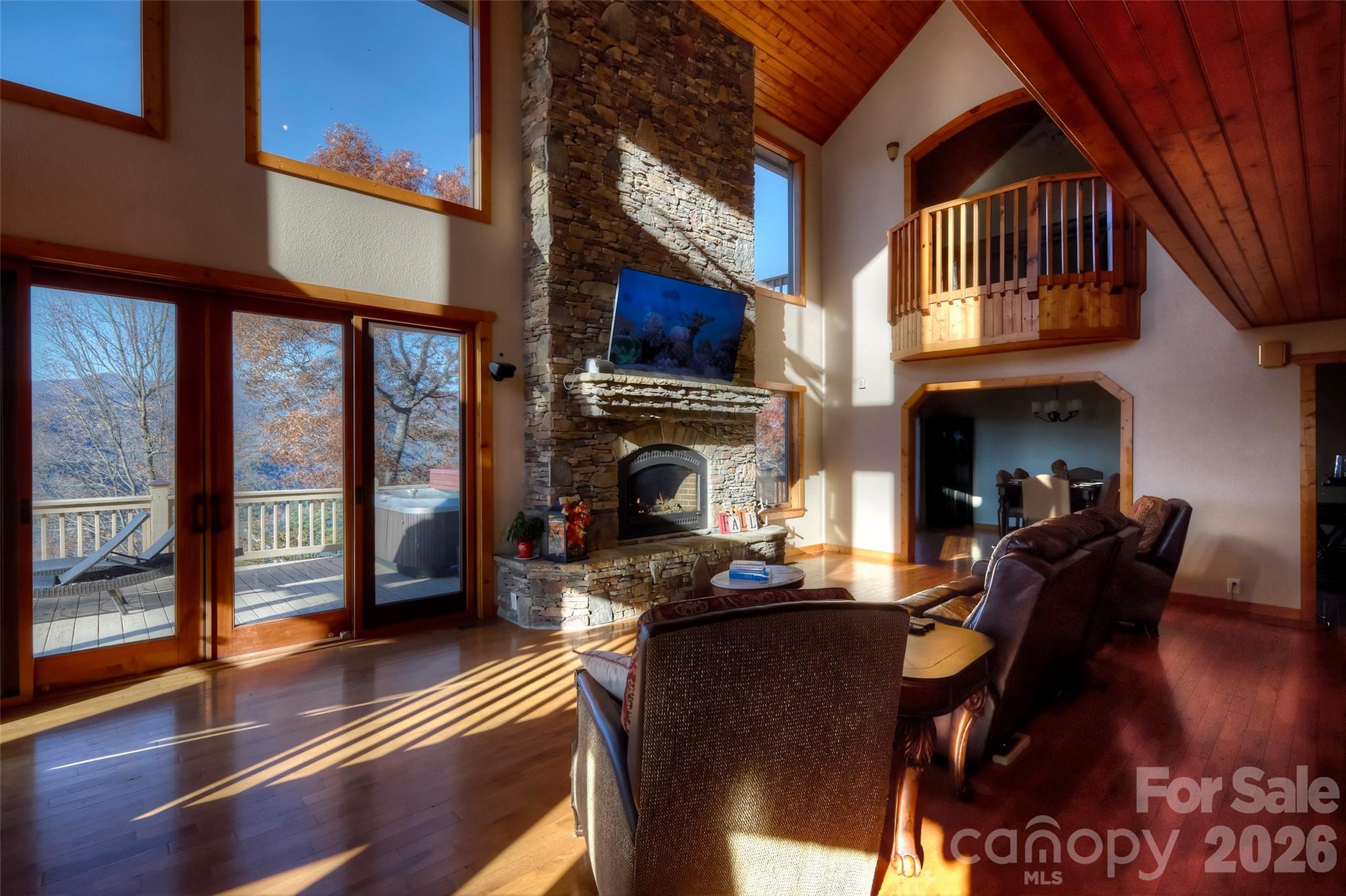 Welcome to Grand View Falls, where this custom-built residence captures breathtaking, long-range views stretching from the Snowbird Mountains into Tennessee. The two-story main living room sets the tone with soaring ceilings, a dramatic wall of windows, and an elegant fireplace that anchors the space with warmth and grandeur. The open, vaulted layout flows throughout the home, complemented by abundant storage and an executive master suite designed for comfort and space. On the lower level, an expansive additional great room with a stone fireplace offers an inviting setting for entertaining or relaxed evenings. A spacious two-car garage or workshop provides ample room for projects and gear. Recent upgrades—including a new roof and new kitchen appliances—bring peace of mind, while the hot tub, grill, and sauna add a touch of resort-style living. Outdoor living shines here as well, with generous deck and patio spaces that make the most of the warm season. The community offers trails, common areas, and pickleball courts, and the surrounding region is rich with opportunities for whitewater, hiking, fishing, and cycling. Listed for $42k below July 2025 appraised value.