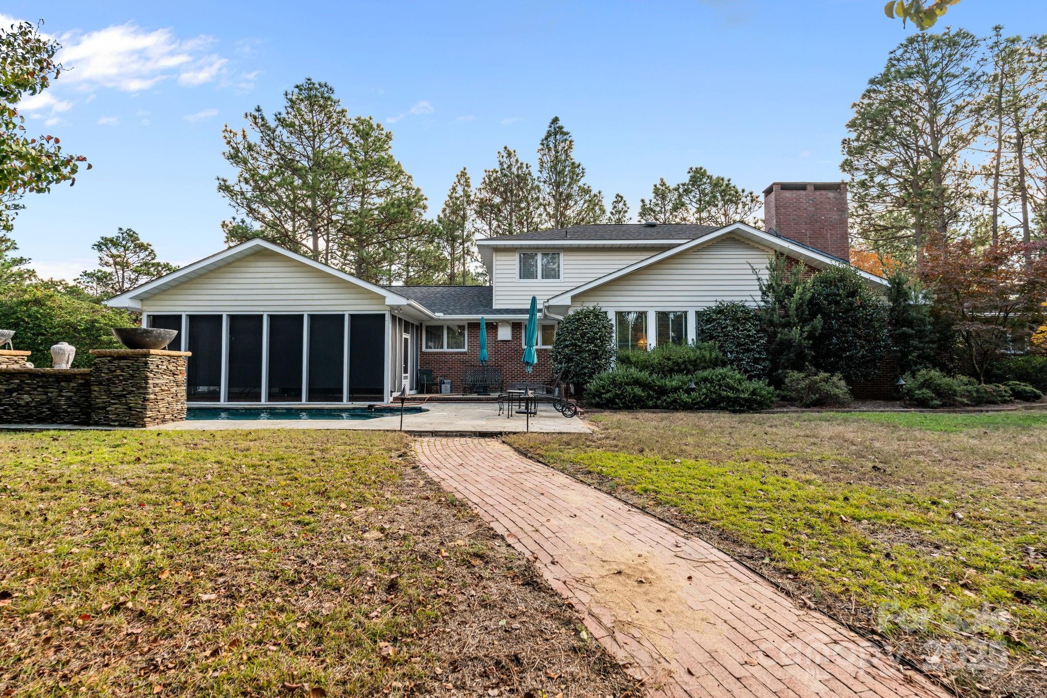 Executive Home on Nearly 2 Acres with Golf Course Frontage and Pool - and a Buildable Lot for Expansion! Nestled in the heart of Whispering Pines, this one-of-a-kind executive home spans three combined lots totaling 1.98 acres, offering the rare opportunity to create your own family compound. The additional third lot provides room to build another home or guest cottage—perfect for multigenerational living or future investment. The flat, beautifully landscaped grounds back directly up to the golf course, blending privacy and stunning views. The property features a heated in-ground salt water pool with waterfall offering a tranquil water feature, surrounded by mature trees. Inside, this custom home offers generous living spaces and endless potential. The massive butler's pantry—complete with its own island and extensive cabinetry—anchors a kitchen built for entertaining. Inside, the home delivers both function and warmth. The spacious kitchen features a large stainless-steel-topped island with an electric Jenair downdraft 5 burner cooktop, double KitchenAid ovens, and a 36'' griddle—ideal for cooking big breakfasts or hosting weekend gatherings. There's even room for a large table and chairs, making it the true heart of the home. Throughout the main level, you'll notice the attention to detail and elegant ogee archways that gracefully separate the main living spaces, giving the home a timeless sense of craftsmanship and flow. The primary suite is conveniently located on the main level, while two additional bedrooms and 2 full baths upstairs provide flexibility for family or guests. This home already delivers space, character, and a spectacular setting—Properties like this don't come around often in Whispering Pines—golf-front, pool, acreage, and room to grow.