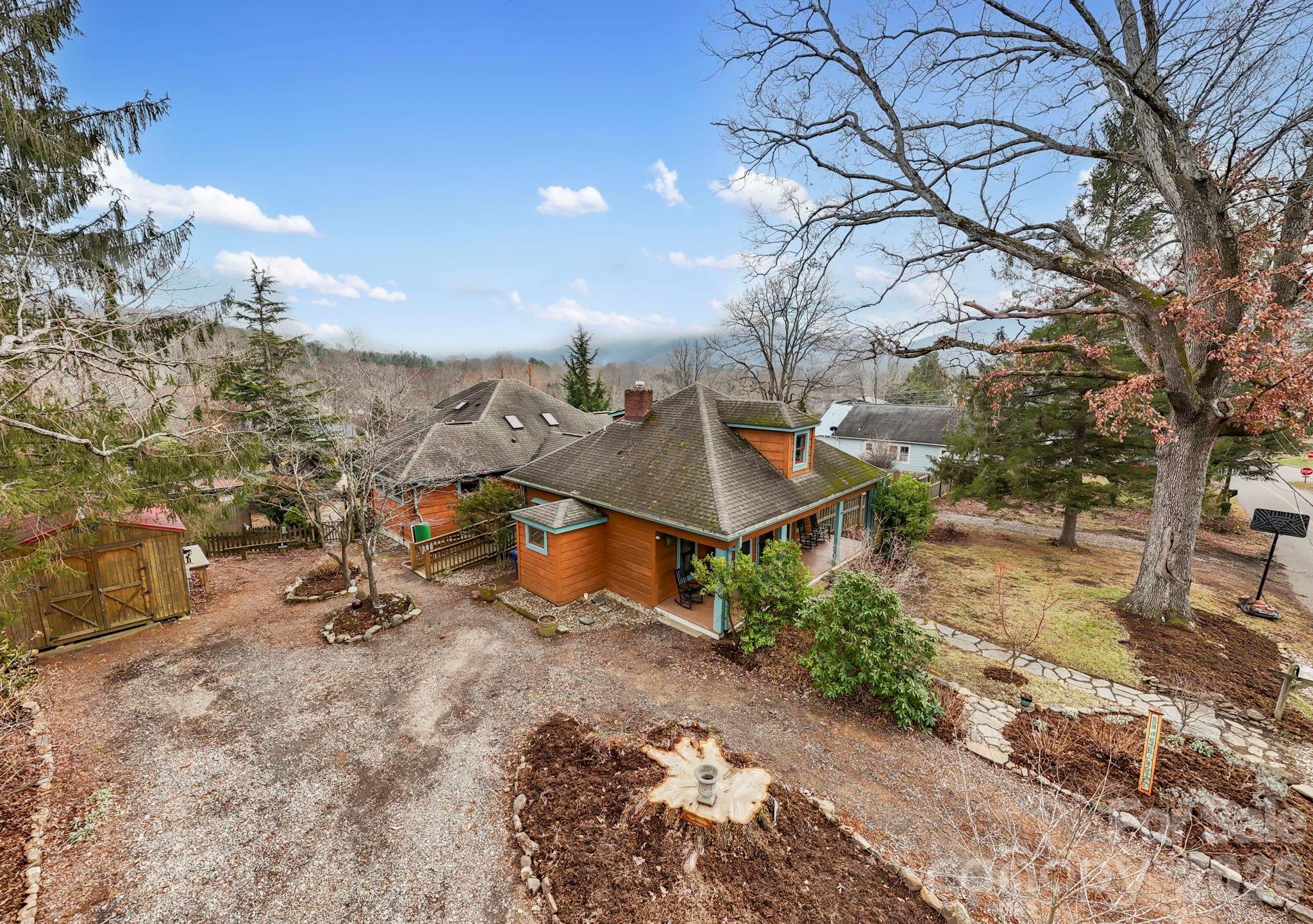 Welcome to a truly special property in the heart of Black Mountain priced below appraissal. Less than a mile from downtown and set on just under an acre, this rare offering brings together historic character, modern comfort, and the kind of mountain lifestyle people dream about. Whether you are seeking multi generational living, a unique investment opportunity, or a personal retreat, this home opens the door to endless possibilities. The original 1907 front home immediately welcomes you with warmth and charm. Hardwood floors, a Jotul gas stove with a stone hearth, and a comfortable layout create a sense of nostalgia and story. This portion of the home includes two bedrooms, two full baths, a full kitchen, dining room, living room, and its own separate laundry. It feels like a peaceful mountain cottage, lovingly preserved and thoughtfully updated. Step into the back home, built in 2005, and the energy shifts to bright, open, and airy. Hardwood floors, tongue and groove wood walls, and an inviting open living and kitchen area make this space ideal for gatherings. The kitchen features custom cabinets, tile surround, a farmhouse sink, and gas oven and stove. A pellet stove adds cozy ambiance. With three bedrooms and three baths, including a main level primary suite and a beautiful tiled foyer with custom stained glass, this portion of the home feels like a modern mountain retreat seamlessly connected to the past. Outside, the property transforms into your own private oasis. Mature landscaping, perennial gardens, and a large fenced yard create a peaceful, natural setting. Take a late night soak in the salt water hot tub, cool off with a plunge in the pool, breathe in the mountain air, and watch the colors shift across the sky. This is a place where families gather, friends reconnect, and unforgettable memories are made. Perfect for long term rental, vacation use, or extended/multigenerational family living, this home offers versatility without sacrificing warmth or character. Handicap accessible from the side entrance. Its location adds even more value, with downtown Black Mountain, Lake Tomahawk, and local hiking and biking trails just moments away. Black Mountain is known for its welcoming community spirit, walkable downtown, vibrant arts scene, and endless opportunities to enjoy the outdoors. From strolling around Lake Tomahawk to exploring local shops and galleries to discovering new favorite restaurants and breweries, the town offers a lifestyle rooted in connection, creativity, and mountain beauty. With its blend of historic charm, thoughtful renovations, outdoor amenities, and unbeatable location, 104 Enthoffer St offers not just a home but a place to belong. A place to breathe. A place to build a life filled with meaning and mountain moments.