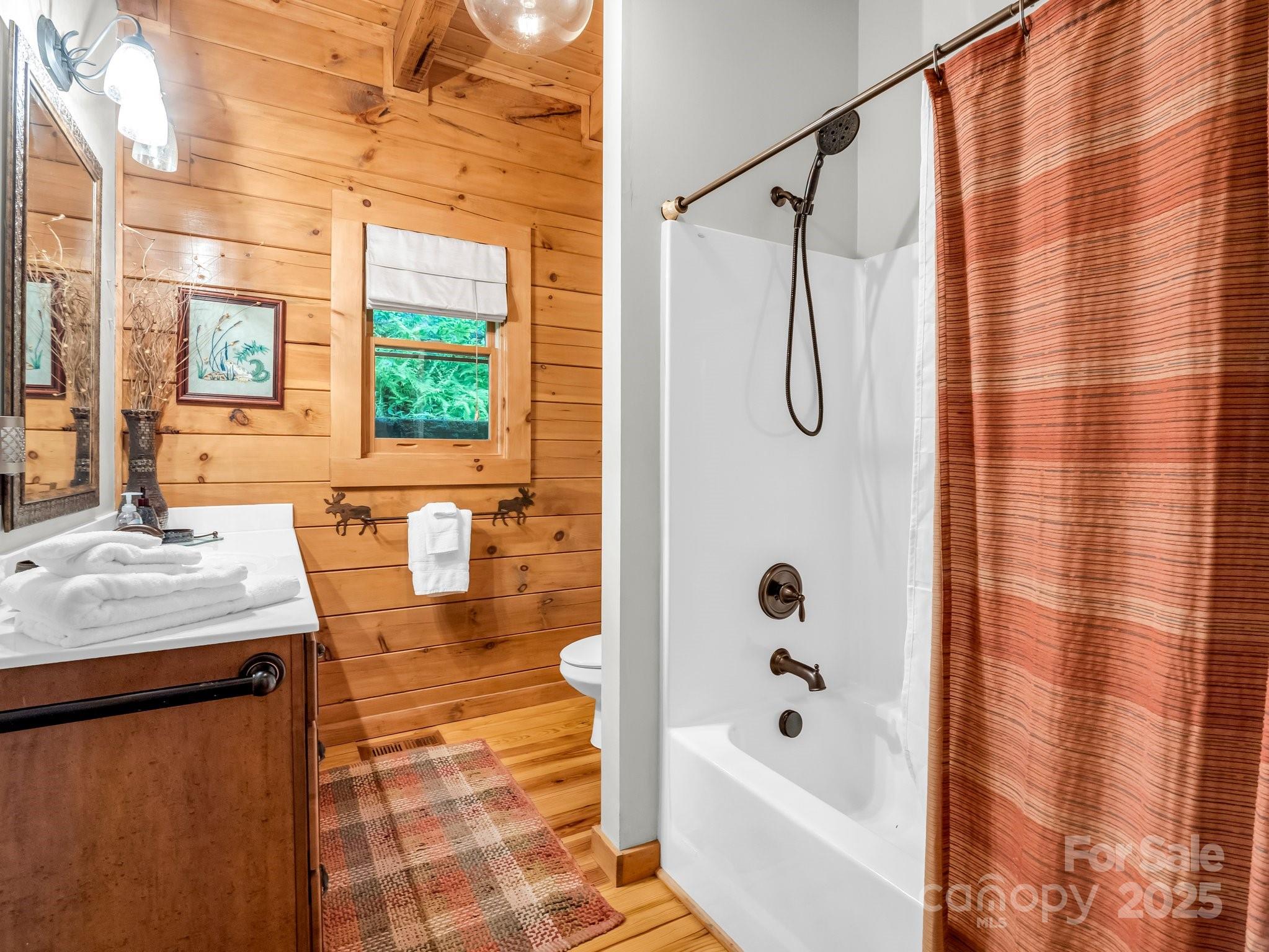 This home offers more than a sought-after location, beautiful design, and serene setting. The seller is offering owner financing with acceptable terms. This luxury log home is surrounded by the NC mountains and a rushing creek. Privacy and nature with this fabulous location as you gather around the firepit right beside Cedar Creek. Enjoy walks and picnics in the commons area. Open plan large enough to accommodate big family get-togethers. Plenty of space for families to come together and stay for holidays and celebrations. Beautiful logs inside with 2 rock fireplaces, two ideal features for a Carolina home in the mountains. Very large primary bedroom, with ensuite and sitting area. The finished basement has a living area with a fireplace, a gaming area, dining area, and half bath. Also includes 322 sq ft of unfinished daylight area that could be completed for additional heated sq footage. Groceries, golf courses, and restaurants are within 15 to 20 minutes. Rental history is available.