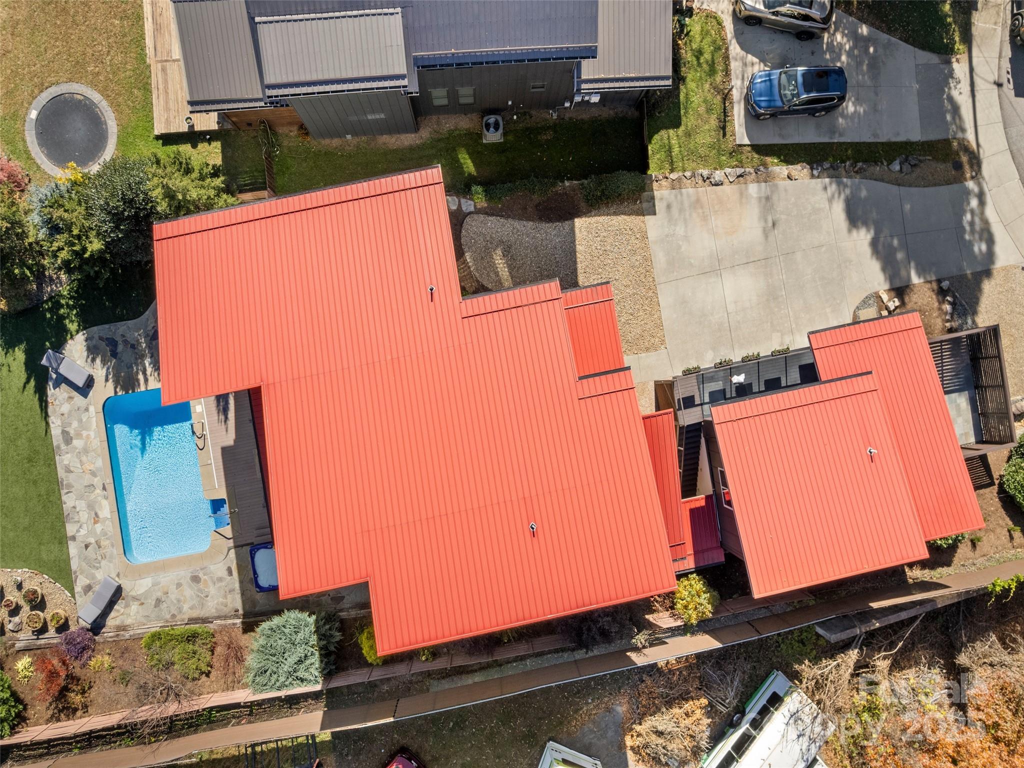 Modern architecture meets effortless indoor/outdoor living in this WECAN/River Arts District stunner! Panoramic Blue Ridge mountain views and sparkling downtown lights frame a sun-filled interior anchored by a floating steel staircase and soaring ceilings. An 18’ LaCantina door opens the living area to a private outdoor haven with heated pool, hot tub, bluestone patio, custom fireplace, and low-maintenance Global Syn-Turf yard. Upstairs, the primary suite offers an expansive walk-in shower, with two additional bedrooms plus a third floor suite featuring built-ins and a trundle bed. Additional spaces include a gym and art studio/flex space with a peaceful side courtyard. A separate guest suite/office with full bath provides added privacy (or potential to rent). A rare blend of modern design, thoughtful spaces, and a premier location just steps away from Downtown Asheville & RAD–this home is not to be missed!