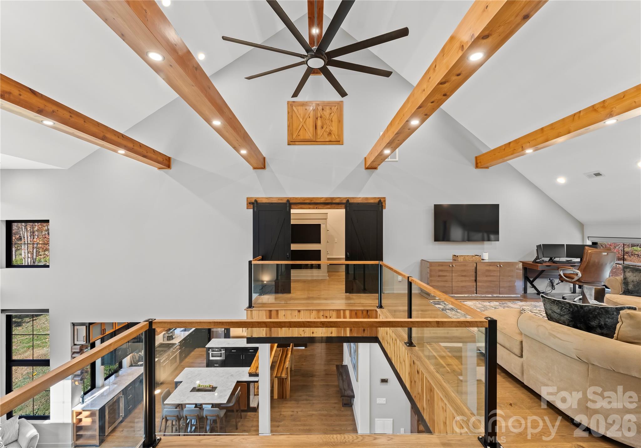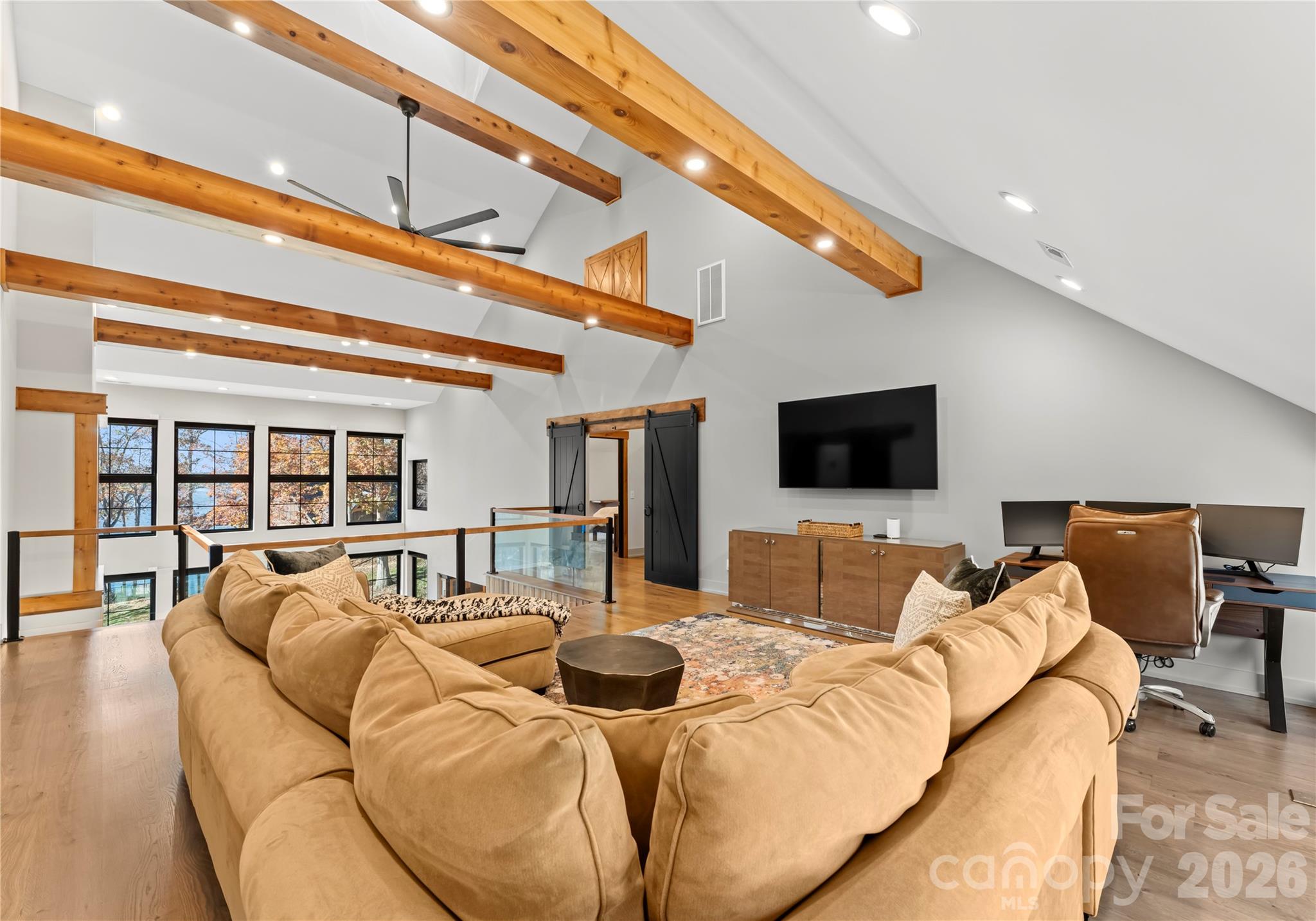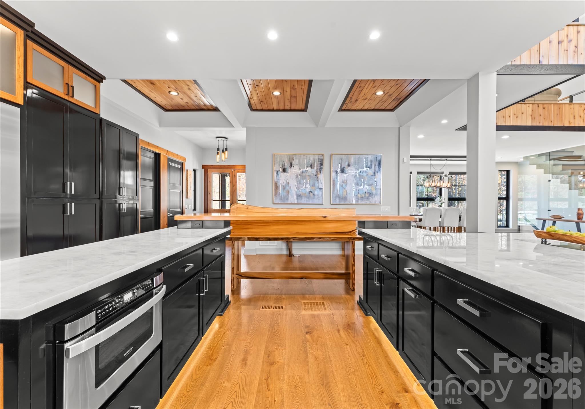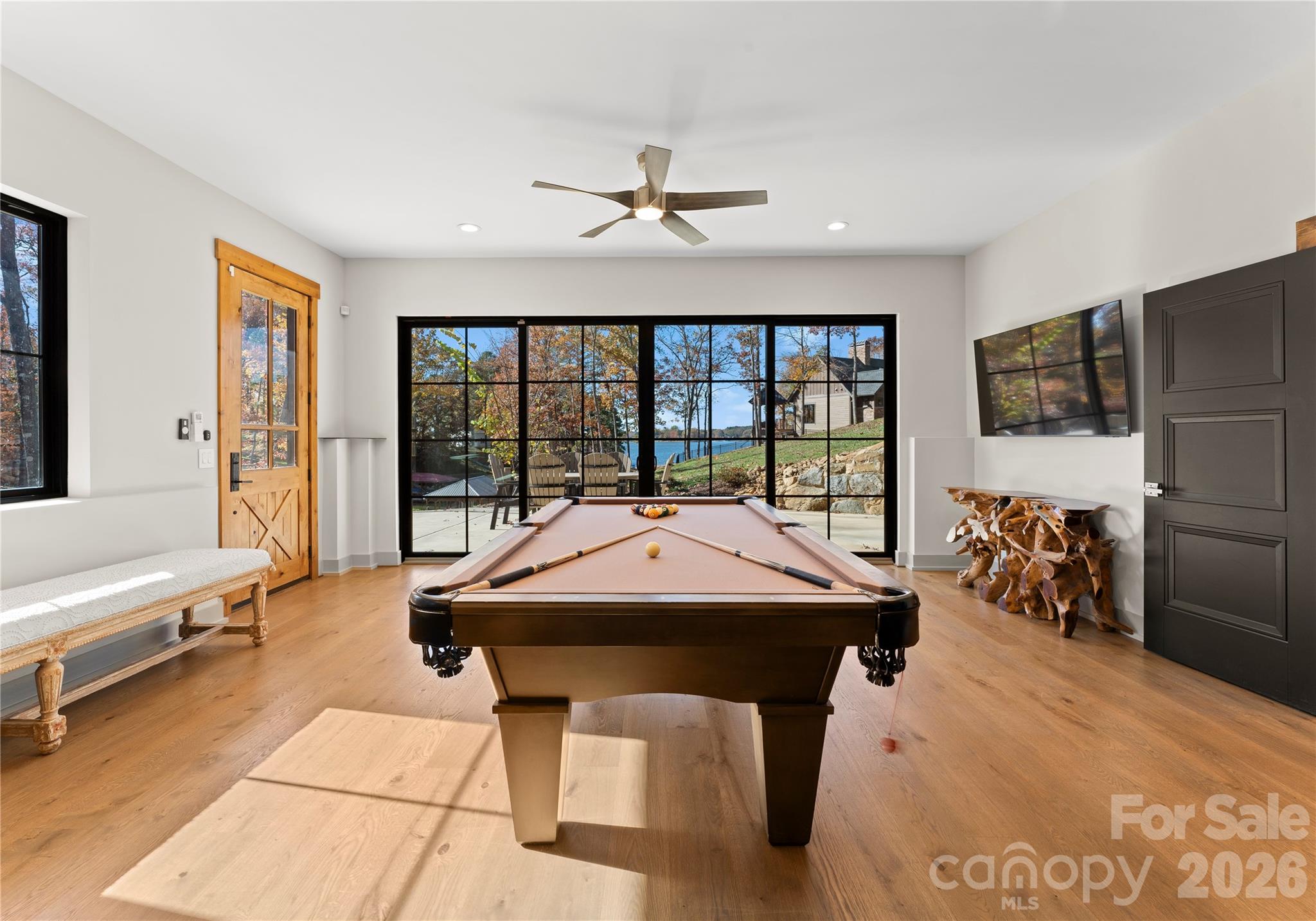 This exceptional waterfront residence is offered fully furnished, providing a seamless, move-in-ready opportunity for luxury lake living. Designed for both impressive entertaining and everyday comfort, the home features elevator access to all levels, expansive lake views from multiple floors, floor-to-ceiling glass, Andersen windows and doors, white oak flooring, refined architectural detailing throughout, and a whole-home water filtration system. The main living level showcases a dramatic great room with a custom fireplace, soaring ceilings with illuminated cupola, cedar-wrapped beams, and walls of glass framing panoramic Lake Norman views. The chef’s kitchen is thoughtfully designed with custom cabinetry, quartzite countertops, a live-edge breakfast bar, Thermador Wi-Fi–enabled appliances, pot filler, beverage refrigeration, integrated lighting, and filtered water throughout the home. The main-level owner’s suite offers a private lakeview retreat with fireplace, spa-inspired bath, and a striking walk-in shower, complemented by a beautifully designed custom walk-in closet. Upstairs, additional guest suites and living spaces provide flexibility for hosting and multigenerational living, including a well-appointed bathroom with heated towel bar. The finished walk-out basement is ideal for elevated entertaining, featuring a full kitchen with Café appliance suite, full bath, and expansive living area that opens directly to the patio and waterfront through oversized sliding doors. A rare amenity is the oversized, extra-deep garage accommodating 5+ vehicles and featuring a private golf simulator, offering a year-round recreational experience uncommon in waterfront homes. Outdoor living is equally refined with a dock featuring a 32-foot slip and lighting, professionally landscaped grounds, shoreline stabilization, in-ground irrigation, and lake-fed irrigation. Canoes convey, completing the effortless lake lifestyle. The home is currently listed on VRBO and other short-term rental platforms, offering a turn-key opportunity for buyers interested in pursuing this avenue. Buyer to verify all short-term rental regulations, permitting, and use requirements with the appropriate governing authorities. A rare opportunity to own a fully furnished luxury waterfront home on Lake Norman, where architectural excellence, recreation, and lifestyle converge.