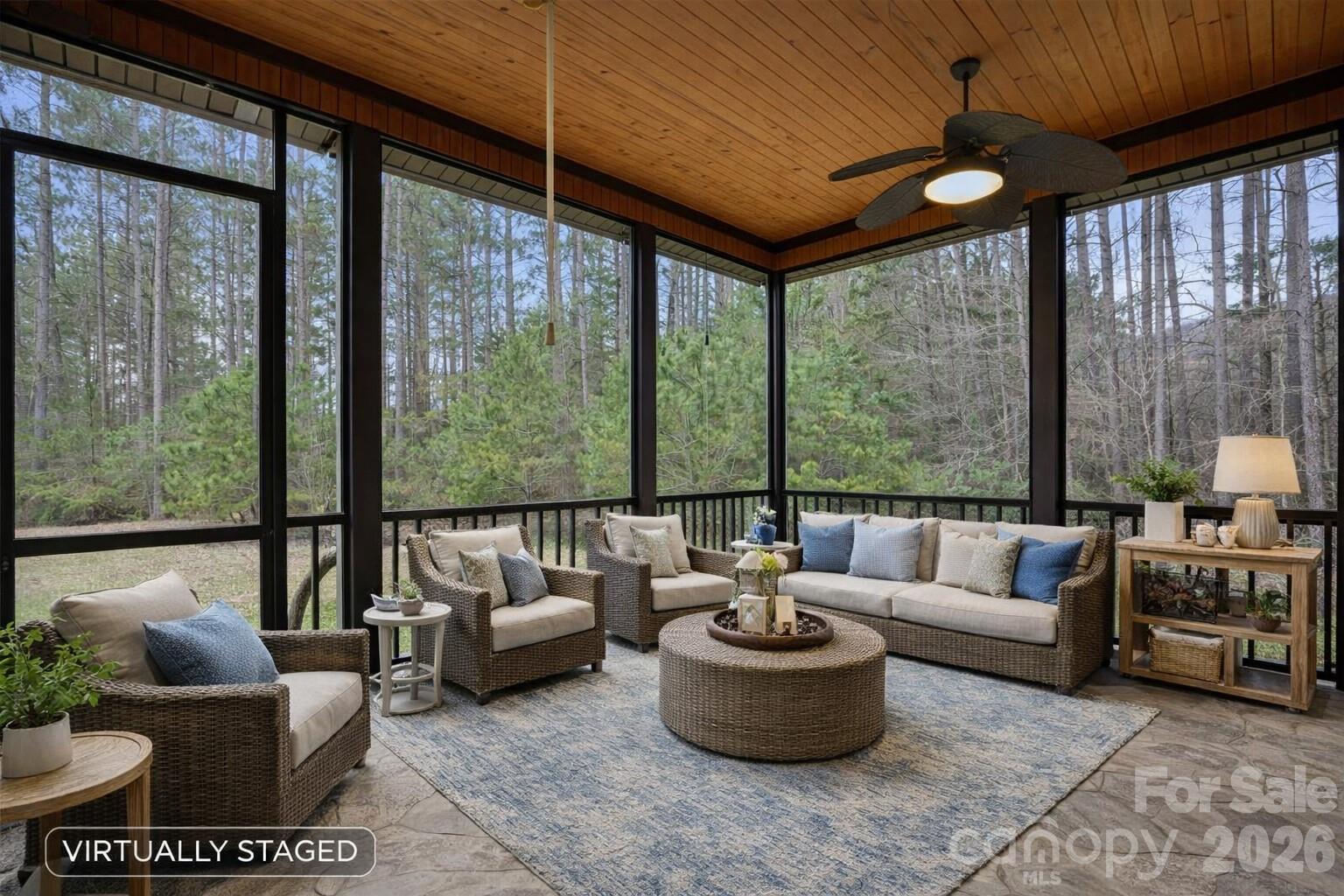Immaculate Custom Home on 1.45 Acres with Exceptional Craftsmanship Experience refined living in this impeccably maintained custom home, where thoughtful design and superior craftsmanship are evident at every turn. A striking double-door entry welcomes you into a grand two story foyer, setting the tone for the quality found throughout. The main level features a vaulted office and a formal dining room currently used as a second office both highlighted by rich wood detailing. The great room showcases a coffered ceiling and stunning stone fireplace and flows seamlessly into the chef’s kitchen. Designed to impress, the kitchen offers high-end appliances including a double oven, microwave/oven combo, trash compactor, and abundant cabinetry, with additional storage in the breakfast area. Step outside to a private, tranquil backyard and a spacious screened porch constructed with steel beams and stone flooring perfect for everyday enjoyment or entertaining guests. The main level owner’s suite is a true retreat, featuring dual vanities, a jetted tub, walk in shower, and two generous walk in closets. Upstairs, Bedroom 1 includes an ensuite bath and a flexible bonus space ideal for a spa room, nursery, or storage. Bedroom 2 offers a private office area and an impressive theater room, while Bedroom 3 also features its own ensuite bath. A dedicated exercise room completes the upper level. Additional highlights include: Encapsulated crawlspace with access beneath the porch, ideal for storm protection Four car garage with insulated doors and walls; two 25 foot deep bays, 220V outlet, and exterior access Whole house water filtration and softener system Beautiful 1.45-acre lot with custom fire pit, serene wooded views, and abundant wildlife This exceptional home offers a rare combination of luxury, space, and privacy in a truly special setting. A must see for buyers seeking quality, comfort, and meticulous care with no HOA fees!