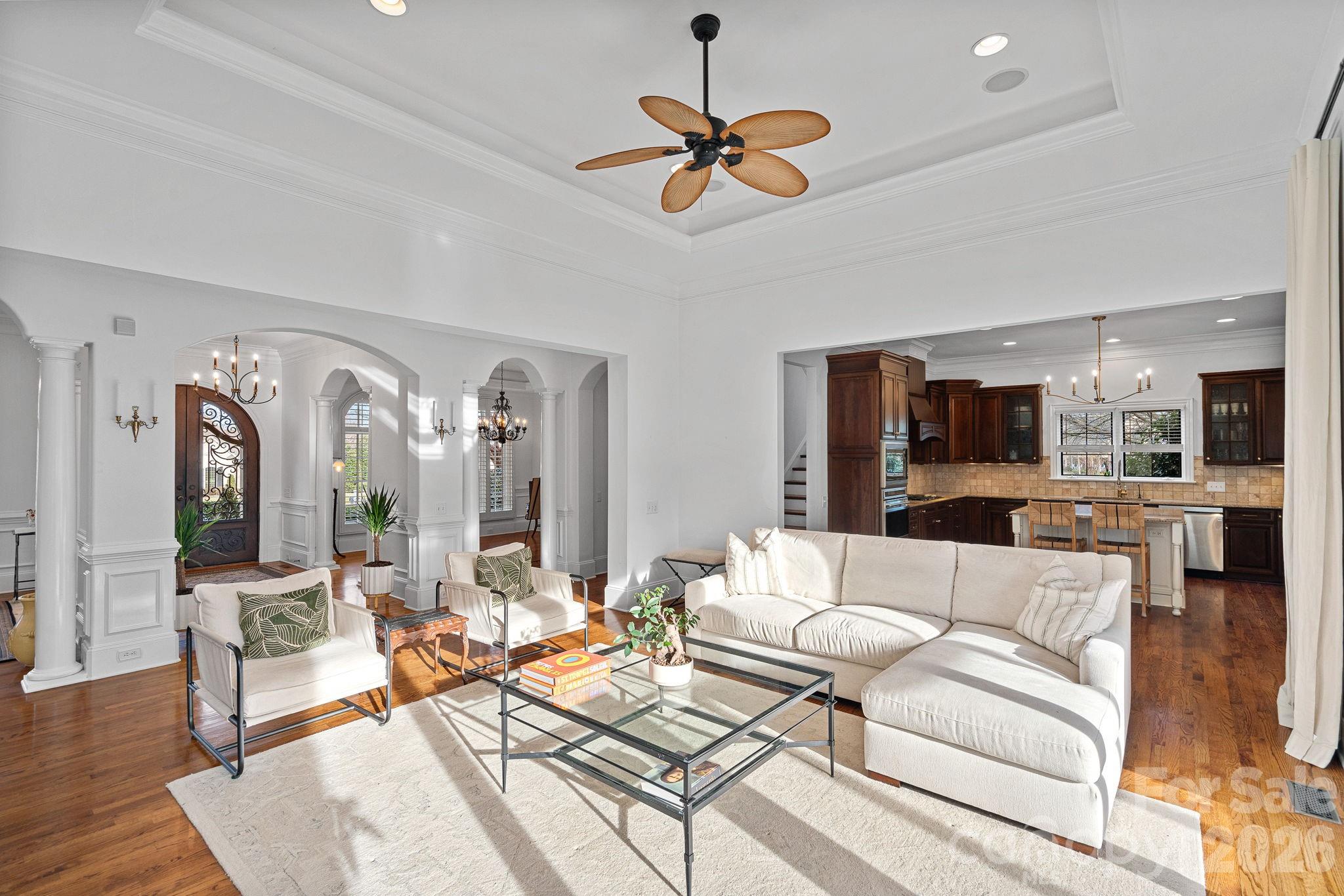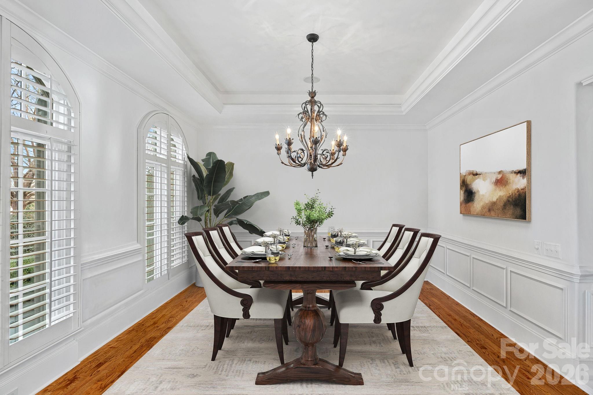 Welcome to 123 Cape Cod Way, a timeless all-brick custom residence ideally situated in the prestigious community of The Point. Set on a beautifully flat and meticulously manicured 1.48-acre homesite, this Simonini-built home offers exceptional privacy, quality craftsmanship, and enduring appeal. The four-bedroom, four-and-a-half-bath floor plan is defined by coffered and tray ceilings, refined architectural detailing, and expansive windows that flood the interiors with natural light. An open, airy layout provides effortless flow for both everyday living and entertaining. Outdoor living is seamlessly integrated with a screened rear patio overlooking the pool and fully fenced backyard, offering privacy, functionality, and space to enjoy the expansive lawn. A three-car garage with its own dedicated heating and cooling system adds versatility and comfort. Major updates include upper and lower HVAC systems replaced in 2022 and a new roof in 2022. Completing this exceptional offering is a dedicated boat slip (Pier Z #46), providing convenient access to Lake Norman and the coveted lake lifestyle.