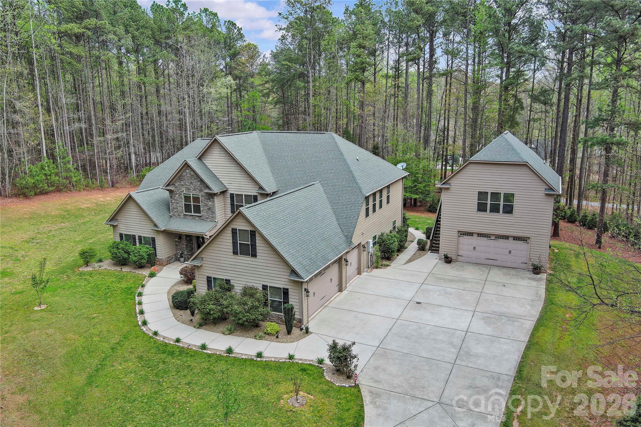 NOW AVAILABLE & ready for showings. Located in the sought-after gated lakeside community of Pebble Bay — complete with a community boat ramp — this exceptional property offers the rare feeling of a private retreat while remaining close to everyday conveniences. Set on 2.1 acres at the end of a long driveway, the home welcomes you with remarkable privacy, peaceful surroundings, and a quiet sense of escape. The home features 4 bedrooms, 4.5 baths, and versatile bonus spaces on each level — ideal for an office, hobbies, or media area. Total heated living area is approximately 4,576 sq ft and includes a beautiful 576 sq ft finished room with full bath above the detached garage (permit expired; info available). Five total garage spaces include an oversized attached 3-car garage PLUS a detached 2-car garage, offering flexibility for storage, hobbies, or car enthusiasts. Soaring two-story ceilings and a dramatic wall of windows with custom motorized shades fill the home with natural light, highlighting a fabulous living area designed for both everyday comfort and entertaining. The chef’s kitchen features double ovens, a gas cooktop, granite countertops, upgraded cabinetry, and a large island with seating for six, flowing seamlessly into the living room with a gas fireplace. A secondary staircase adds everyday convenience. Outdoor living truly defines the lifestyle here — from evenings in the hot tub beneath the stars to cozy gatherings around the paver fire pit or entertaining by the outdoor fireplace after a day on the lake. The main-level primary suite offers comfort and ease, while three ensuite bedrooms upstairs provide privacy for guests or family. Ample storage includes a spacious floored attic. Located in Denver, NC with convenient access to Highway 16, shopping, dining, and daily essentials nearby. Easily accessible to Mooresville, Hickory, and Huntersville, with a simple commute via Highway 16 to I-485 and Charlotte Douglas International Airport. The perfect place to call home.