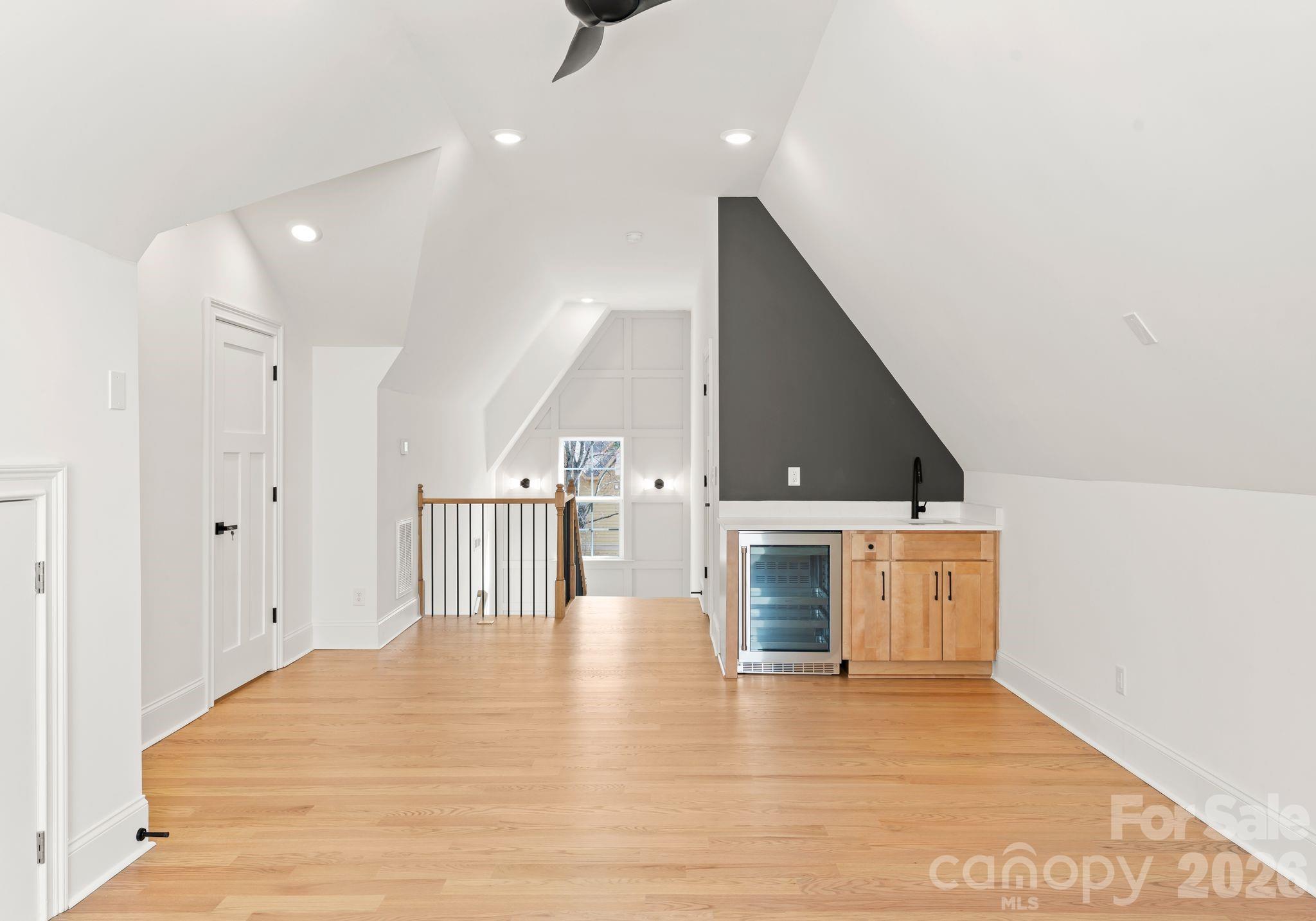 Bold architectural details and expansive living spaces define this exceptional new construction home in the heart of Cotswold, offering 5 bedrooms and 5 full baths across three thoughtfully designed levels. Located along a quiet street surrounded by other newly built residences, the home enjoys a premier location near Cotswold Village, SouthPark, Uptown, Providence Road, and Independence Boulevard, with convenient access to Charlotte’s top-rated public and private schools. A covered entry and modern glass front door welcome you into a light-filled interior featuring 10-foot ceilings on the main level, red oak hardwood flooring, elegant trim work, and designer lighting throughout. This residence showcases a distinctive color palette that blends warm neutrals with rich accents of color, complemented by striking gold hardware and curated finishes that add depth and personality. Exposed wood beams in the kitchen and living areas introduce architectural character and warmth, creating an elevated yet inviting atmosphere. The open-concept layout seamlessly connects the kitchen, dining, and living spaces, offering generous scale for both daily living and entertaining. The chef’s kitchen is anchored by an oversized island with seating, floor-to-ceiling soft-close cabinetry, a spacious walk-in pantry, and premium appliances. The adjacent dining area features a built-in buffet area with floating shelves and a beverage/wine fridge. The living room centers around a modern gas fireplace and opens through sliding doors to a fully fenced backyard. A spacious patio with an outdoor fireplace extends the living area outdoors, creating an ideal setting for gathering and year-round enjoyment. A main-level bedroom with an ensuite bath provides flexibility for guests or a private office. Upstairs, the primary suite overlooks the backyard and features a spa-inspired bath with dual vanities, soaking tub, oversized walk-in shower, and a large custom walk-in closet designed with extensive shelving and abundant hanging space for two. Three additional guest bedrooms, a bonus room to be used as a home office, kid’s playroom, or storage area, and a conveniently located laundry room complete the second level. The third level is dedicated to a spacious bonus retreat, complete with a built-in buffet area featuring a wet bar sink and wine and beverage fridge, perfect for entertaining, media, or recreation. Generous proportions, distinctive architectural details, high-quality finishes, and a peaceful Cotswold setting make this home an exceptional opportunity to own one of Charlotte’s finest new construction residences. The home is deeded in Craigmore Hills but is located in Cotswold.
