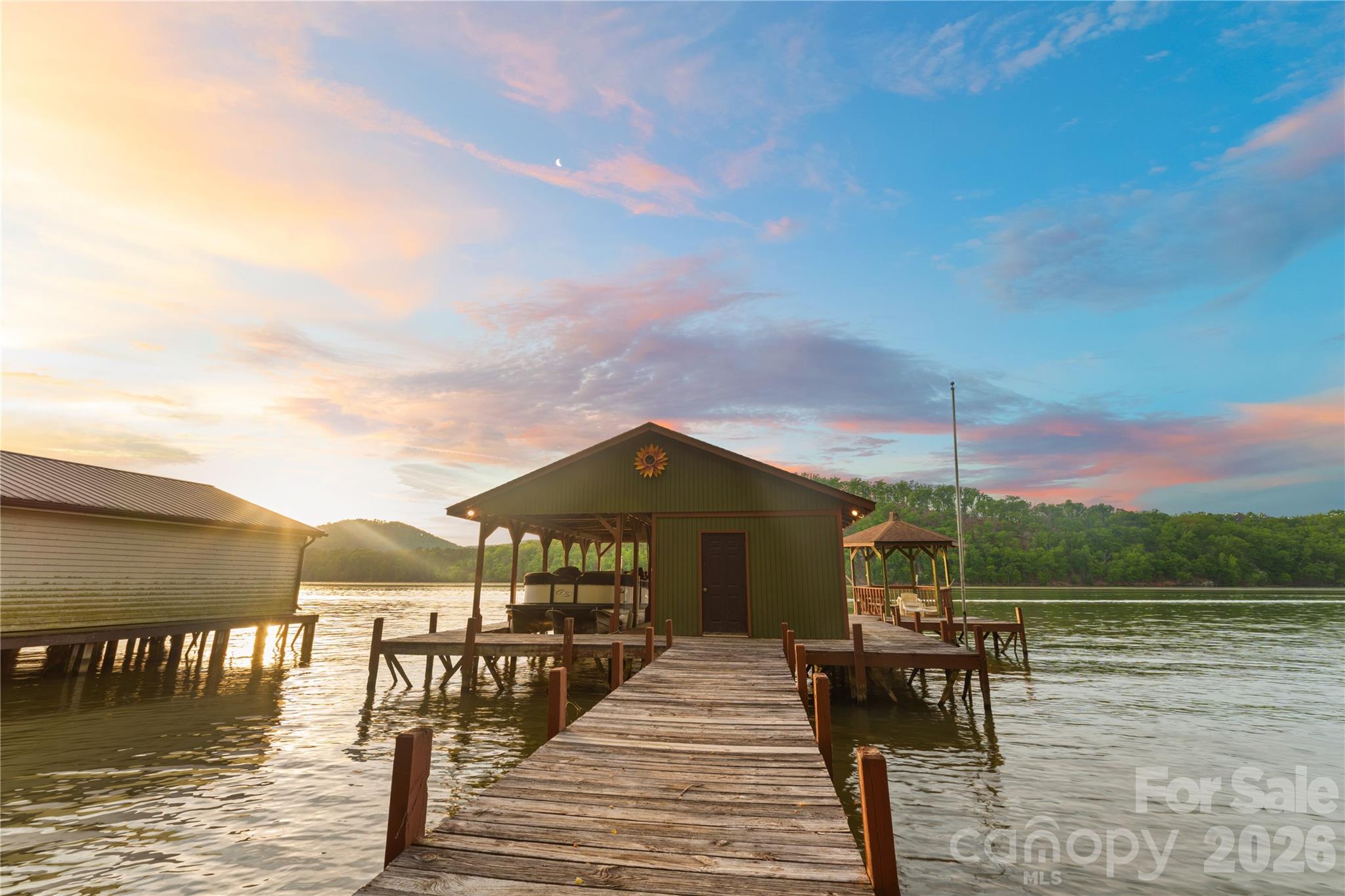 Lakefront living on the main channel of Lake Tillery with a direct view of Morrow Mountain State Park. This 4-bedroom, 3-bath home is located in the gated Carolina Forest community on Lake Tillery and offers wide water views and easy access to outdoor recreation. The main level features an open great room, kitchen, and dining area with cathedral ceiling and many windows that highlight the lake and mountain views. The layout is functional and comfortable for everyday living or hosting guests. Both main-level bedrooms include en suite bathrooms, providing convenience and privacy. Two additional bedrooms in the basement and a third full bath offer flexible space for family, visitors, or office use. Carolina Forest residents enjoy a range of amenities including a community boat ramp, outdoor pool with lake views, playground, tennis court, and basketball court. The home is conveniently located near Uwharrie National Forest and the towns of Troy, Mount Gilead, and Norwood, offering a balance of outdoor recreation and small-town charm. Don't miss this well-located Lake Tillery property with phenomenal views and a fantastic layout.
