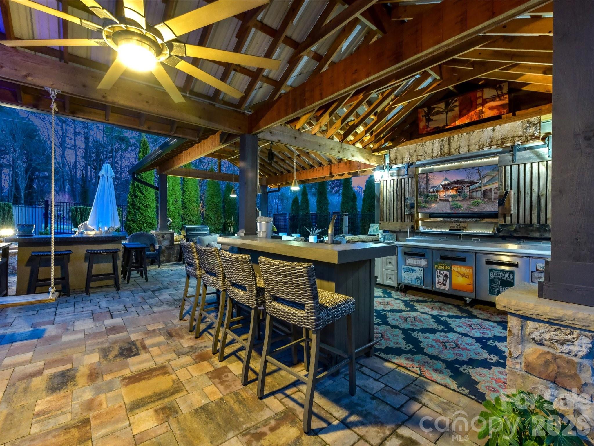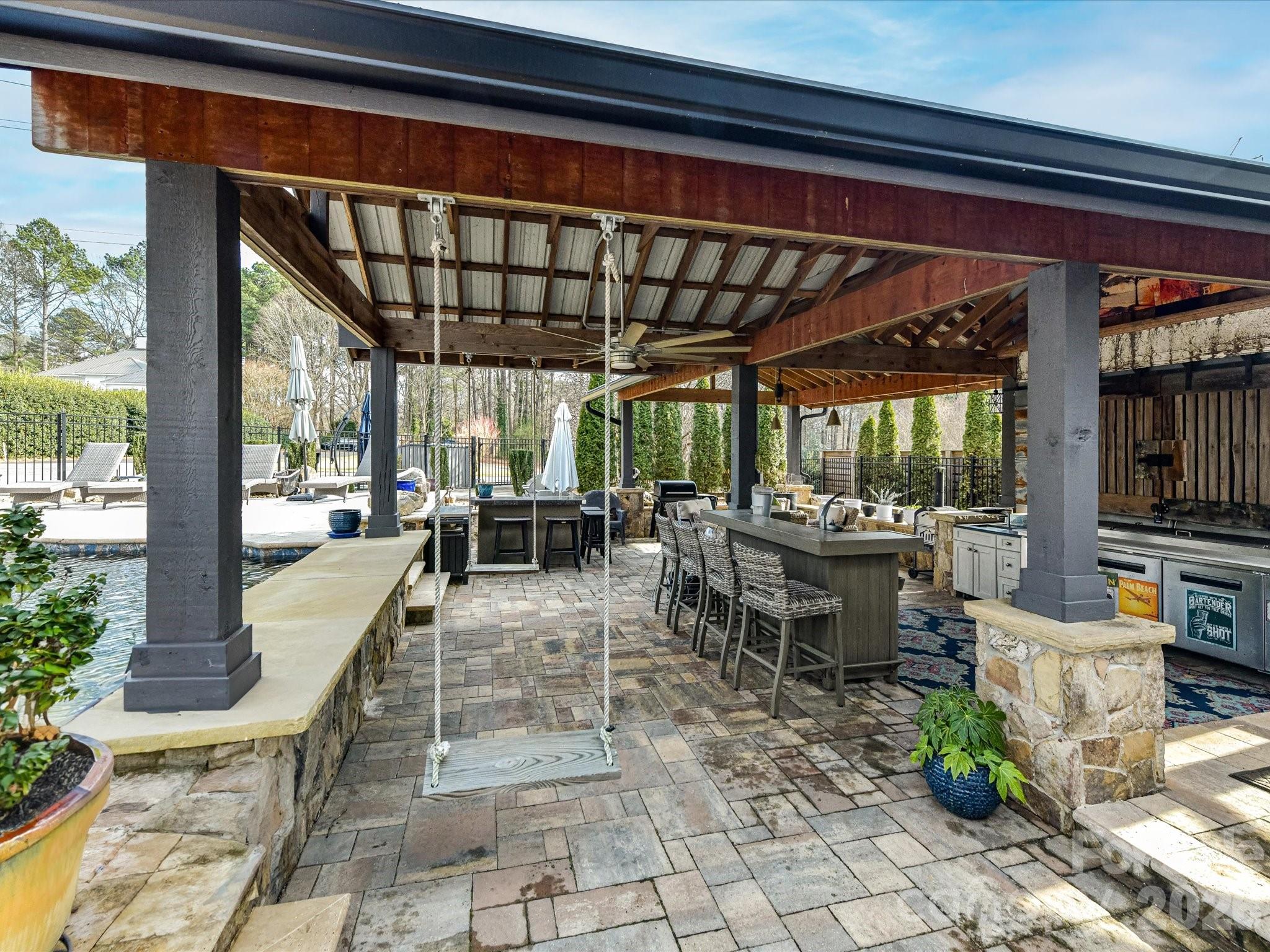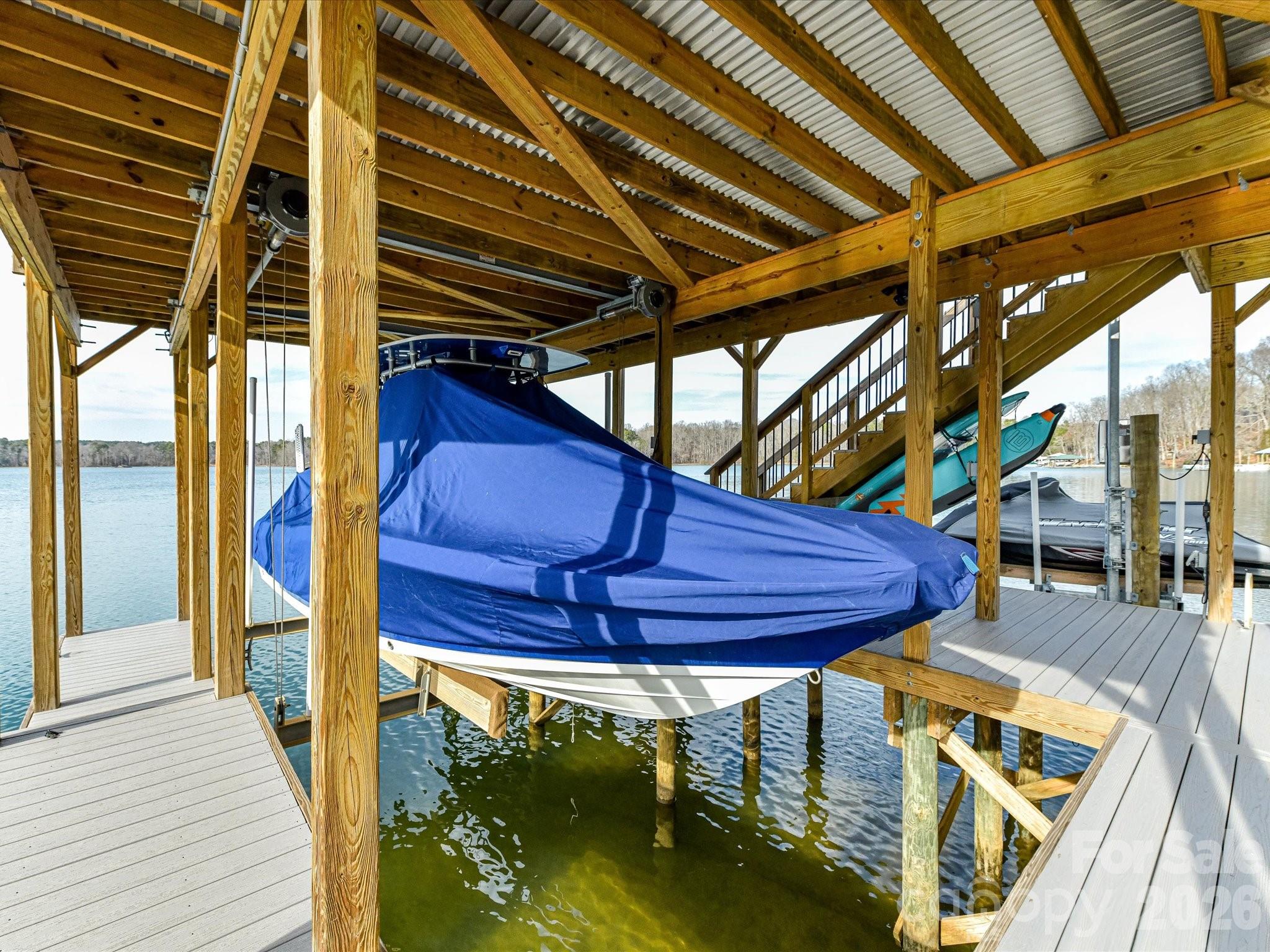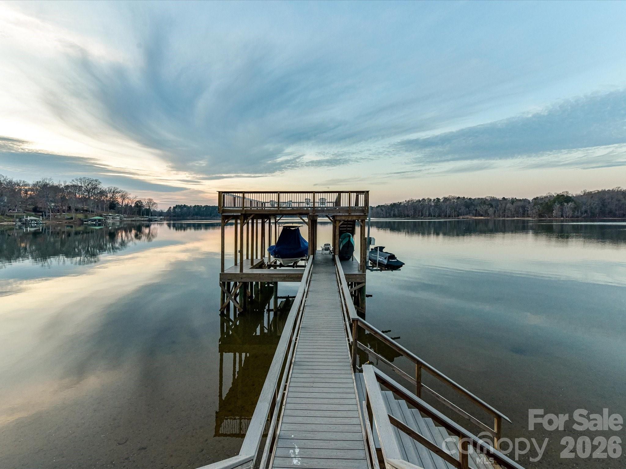 Extraordinary Waterfront Living on Mountain Island Lake. It's all about the Lake! An Outdoor Oasis & Entertainer’s Dream! Tucked discreetly away from the street, this one-of-a-kind luxury waterfront estate delivers what lake living is truly about—unparalleled panoramic views of Mountain Island Lake. With commanding sightlines across open water, the home faces the protected shoreline of Latta Nature Preserve’s 1,500 plus acres, ensuring lasting privacy and freedom from future congestion. Approximately 20 minutes from Uptown Charlotte, this property offers the ideal balance of resort-style escape and everyday convenience. Designed around a striking Fire and Water theme, the home was crafted for elevated entertaining indoors and out, with abundant parking as part of turnaround asphalt driveway and golf cart path and thoughtfully curated spaces throughout. Outdoor Oasis – Resort Living at Home - The property rivals a five-star resort, anchored by a stunning saltwater pool and hot tub with expansive walk-in steps and dramatic gas fire features. A swim-up bar with submerged bar stools invites relaxation, while covered bar and lounge areas provide dining, seating, and a large-screen television—perfect for game days or evenings by the water. Two outdoor kitchens elevate entertaining, including a restaurant-quality gas griddle and hood with dual warming drawers on the lakeside. A charming gazebo features two water elements—an elongated fountain and a rock-stone fountain—centered around a wood-burning fire pit. A glamping-style guest cabana with mini kitchen offers a unique poolside retreat, while an herb and specialty flower garden space adds fragrance and culinary inspiration. Poolside convenience includes direct access to an oversized bath with dual lavatories, dual showers, and hand-selected ornate grained granite. Waterfront Excellence – A Dock Like No Other - Newly constructed including new pilings, massive two-tier, double-decker dock built with Trex-style materials offers carefree lake enjoyment. The upper level features Gutter Deck waterproof decking, engineered to stay cooler with superior water-wicking properties—perfect for morning yoga, workouts, or sunset gatherings. The terraced lower level includes a boat lift with 10,000 lbs capacity for your luxury boat. A Rotomag jet ski lift rotates your jet ski to the perfect position, complete with its own access ladder. Extra-wide stairs for kayaks and paddleboards, and a golf-cart path connecting the home to the dock. A lakeside landing with porch swing provides a peaceful place to take in the views. Interior – Modern Renovation with Artistic Detail - Inside, stone accents, blonde wooden beams, and a warm modern aesthetic continue the Fire and Water theme. Artisan-bleached stonework in den adds refined texture, while the chef’s kitchen features top-tier appliances, luxurious leathered Quartzite counters, and a bay window framing lake views. Second laundry area on main level for pool convenience. Bedrooms & Flexible Living Spaces - The upstairs primary suite showcases breathtaking floor-to-ceiling windows with ensuite bath. A second upstairs oversize bedroom with a hall full bath with laundry area. A third bedroom, currently utilized as an oversized custom closet, easily converts back. Above the three-car garage, a fourth bedroom functions as a private apartment with sitting area and modern cabinetry and half bath. Additional Features: three-car garage, lake-fed irrigation, Sonance outdoor audio via Sonos app, and EEROS WiFi booster for seamless outdoor connectivity. This is not just a home—it is the premier offering on Mountain Island Lake, where luxury, privacy, and unforgettable entertaining converge. American Home Shield Warranty included. New roof 2025. Private HOA Community Boat Ramp access.