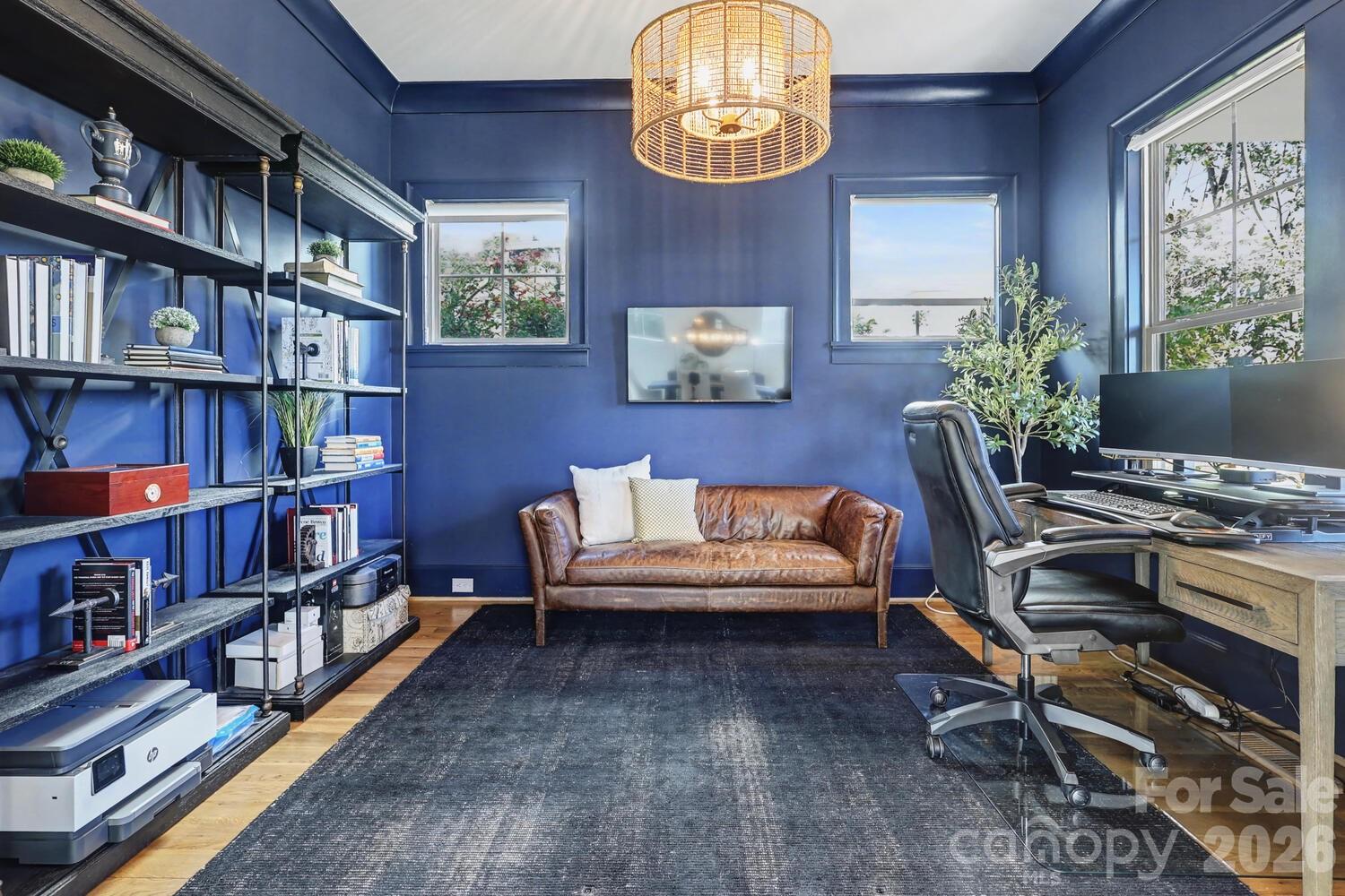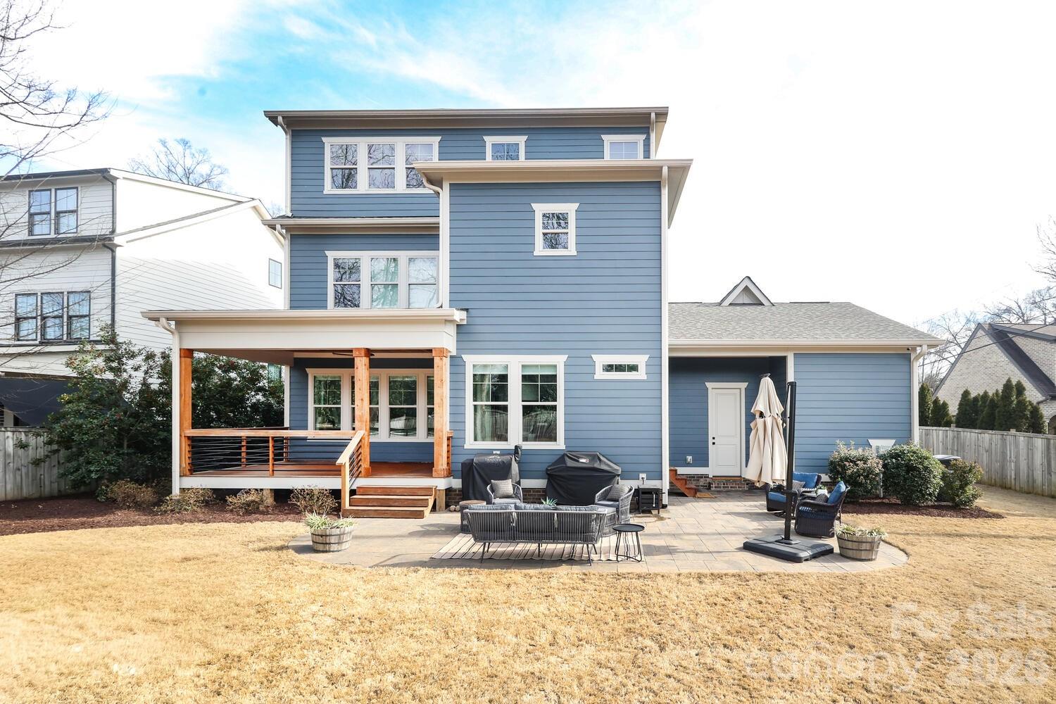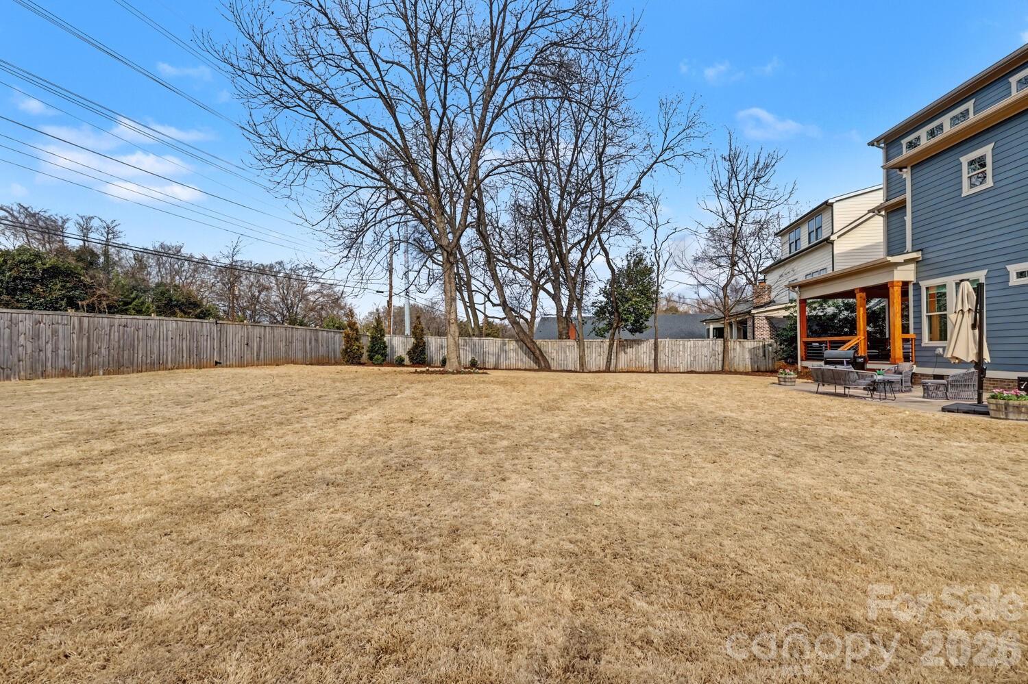 Perfectly situated in the heart of Charlotte, just minutes from Dilworth, South End, SouthPark, Uptown, and Freedom Park. Enjoy front porch living on a quiet street in the heart of Sedgefield, one of Charlotte’s most desirable neighborhoods. Built in 2022, this beautifully maintained home feels like new construction. Inside, a bright French door study and a formal dining room welcome you, flowing seamlessly into the open great room and a well-appointed kitchen with a butler pantry/workstation. Perfect for entertaining or everyday living. Hardwood floors extend throughout the entire home, and the spacious primary suite offers a luxurious retreat with a soaking tub, larger than life shower, and a large walk-in closet. The third floor features a 985 sq. ft. bonus room for recreation, work, or play. Step outside on to the back covered porch to an over-sized flat .46 acre fenced yard with irrigation in place, ready for outdoor living, gardening, or gathering with friends and family. Enjoy the peekaboo city view on the back porch. With the generous space behind the fence, there's a potential to install a pickleball court or outdoor amenities. This home also features an EV charger in the garage and a long extra-wide driveway.