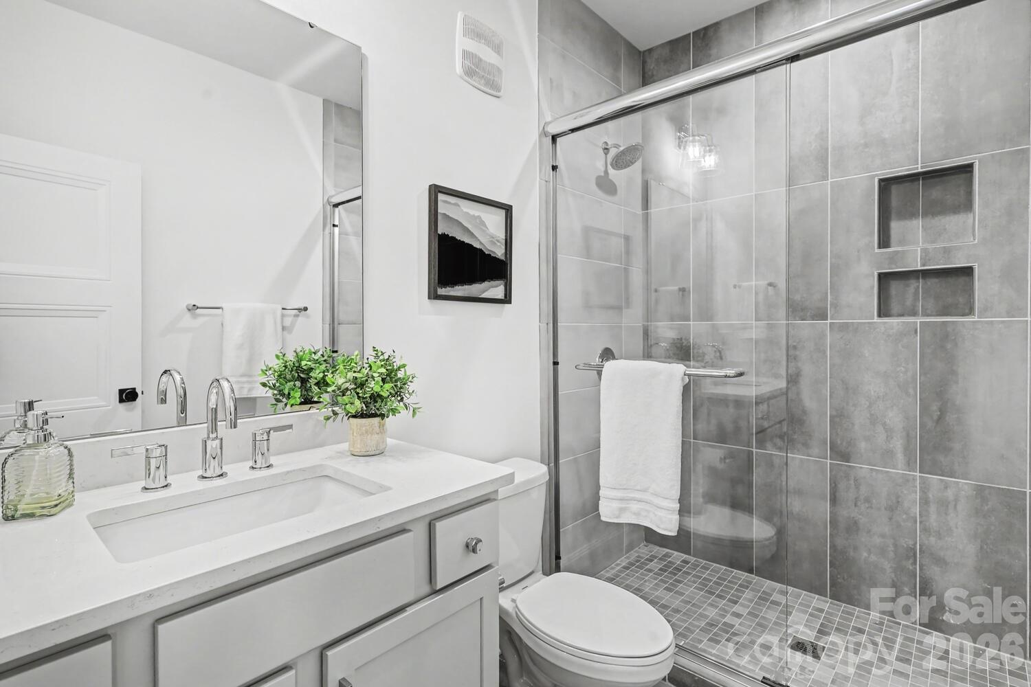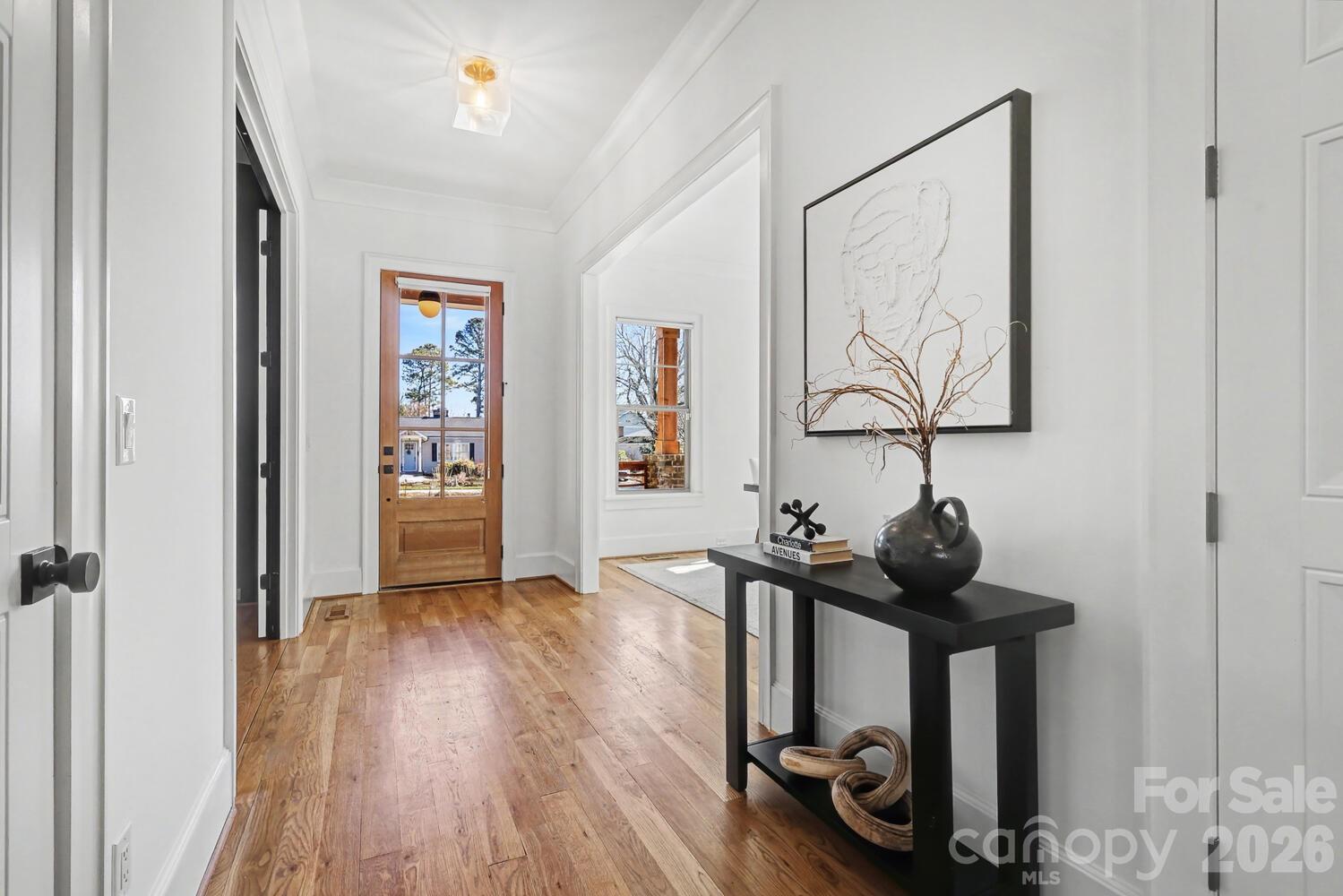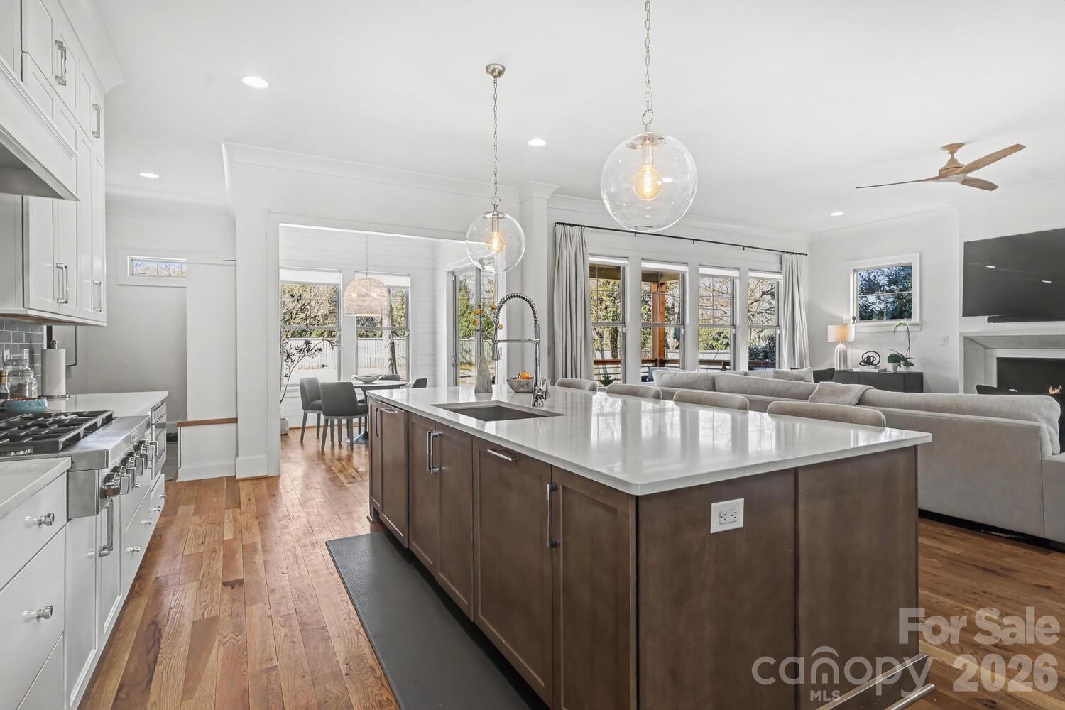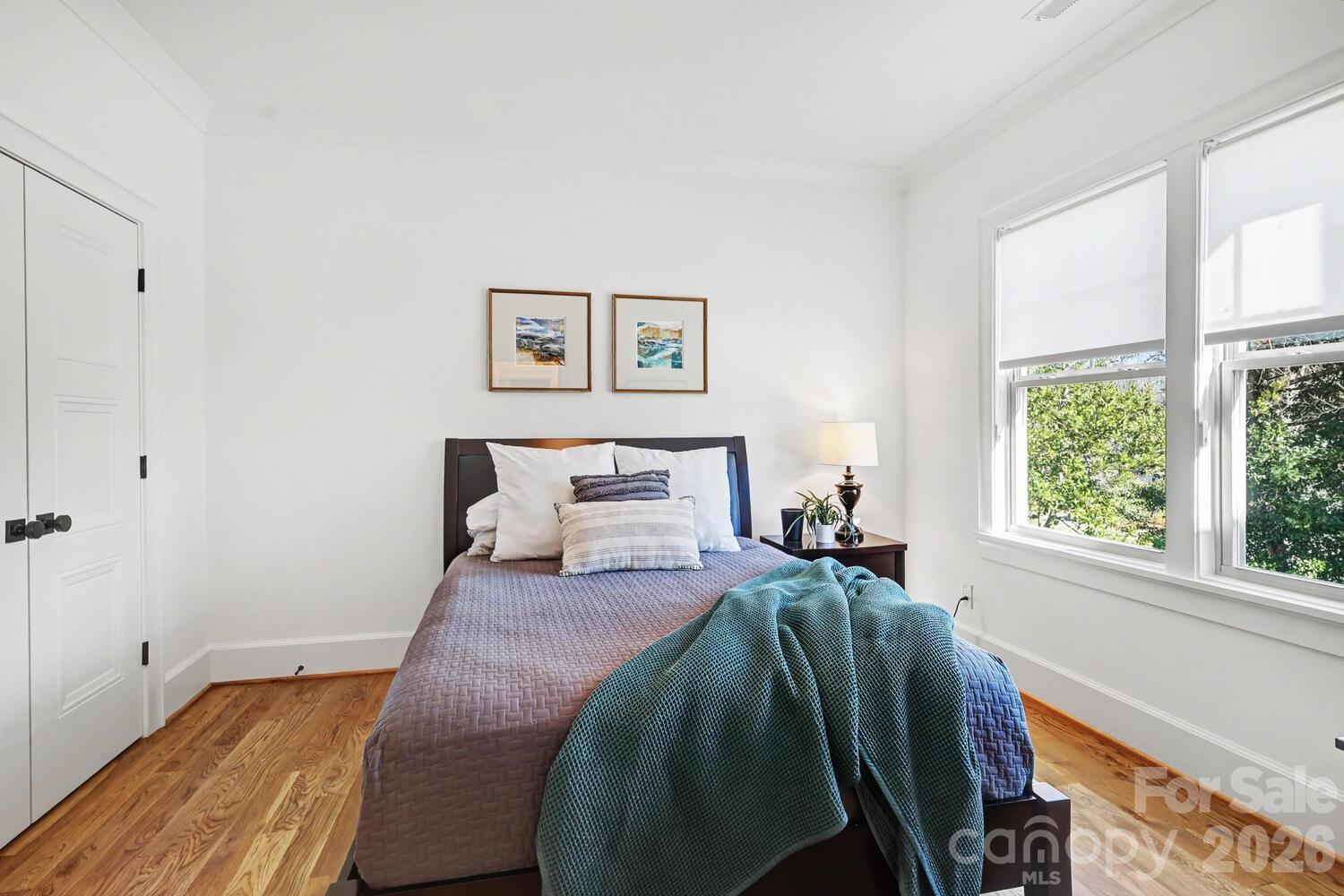 Perfectly situated in the heart of Charlotte, just minutes from Dilworth, South End, SouthPark, Uptown, and Freedom Park. Enjoy front porch living on a quiet street in the heart of Sedgefield, one of Charlotte’s most desirable neighborhoods. Built in 2022, this beautifully maintained home feels like new construction. Inside, a bright French door study and a formal dining room welcome you, flowing seamlessly into the open great room and a well-appointed kitchen with a butler pantry/workstation. Perfect for entertaining or everyday living. Hardwood floors extend throughout the entire home, and the spacious primary suite offers a luxurious retreat with a soaking tub, larger than life shower, and a large walk-in closet. The third floor features a 985 sq. ft. bonus room for recreation, work, or play. Step outside on to the back covered porch to an over-sized flat .46 acre fenced yard with irrigation in place, ready for outdoor living, gardening, or gathering with friends and family. Enjoy the peekaboo city view on the back porch. With the generous space behind the fence, there's a potential to install a pickleball court or outdoor amenities. This home also features an EV charger in the garage and a long extra-wide driveway.