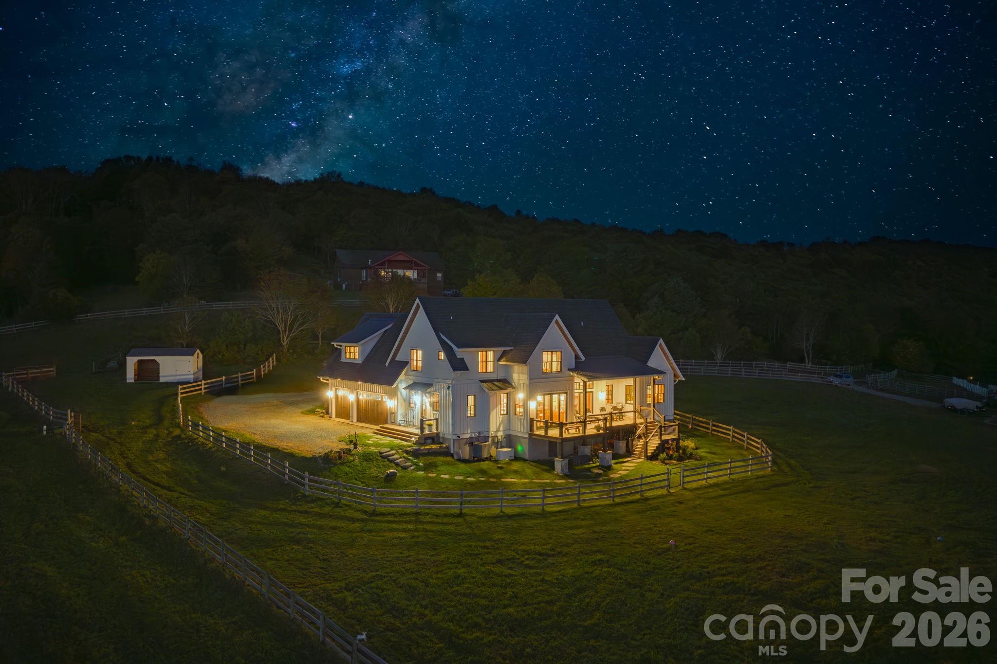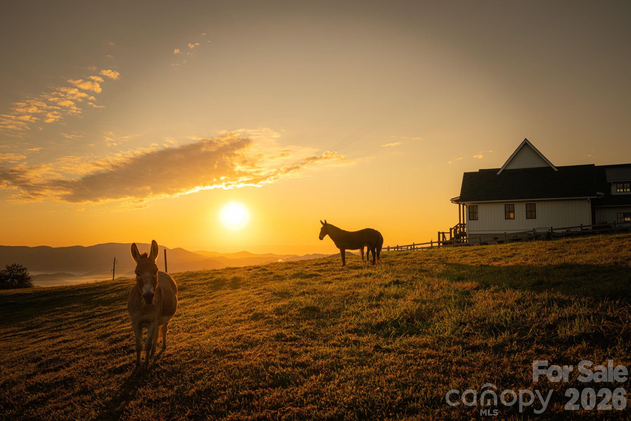 Sorrel Sky Farm lives up to its name. Set at approximately 4,350 feet in elevation, this exceptional equestrian estate captures panoramic views across three states, North Carolina, Virginia, and Tennessee, with long-range vistas stretching toward Grandfather Mountain and Mount Rogers. The setting offers both privacy and accessibility, just 10 minutes to Banner Elk, 15 minutes to Sugar Mountain, 20 minutes to Beech Mountain, 25 minutes to Boone, and 35 minutes to Blowing Rock. Serious equestrians or hobby farmers will recognize the rarity of a high-elevation farm that provides natural cooling, functional infrastructure, and sweeping mountain vistas, ideal for seasonal escapes or full-time living. With privacy, open pasture, and generous living space, Sorrel Sky Farm also lends itself beautifully to a legacy estate or private family retreat. The custom-designed modern farmhouse was thoughtfully positioned to maximize the views, with nearly every room overlooking mountains and rolling board-fenced pastures. Reclaimed hemlock floors and solid hemlock interior doors create warmth and authenticity throughout the main living areas. Mahogany and glass double entry doors, along with expansive sliding glass doors, open the great room and dining area to the covered porch, inviting fresh mountain breezes and seamless indoor-outdoor living. The kitchen anchors the home with a substantial quartz island accented by barn tin detailing, exposed wood beams, and carefully curated finishes. The main-level primary suite features two spacious walk-in closets with custom wood shelving. Upstairs, a generous bonus/family room offers flexible space for recreation, media, or additional gathering areas. Designed for comfort and efficiency, the home includes a whole-house generator, water filtration system, encapsulated crawl space, and Icynene insulation. Equestrian facilities are equally impressive. The 60' x 48' hardboard-sided barn with metal roof includes seven stalls, a concrete center aisle, insulated tack and feed rooms, hot and cold wash area, 12' x 24' equipment storage, and four stalls opening to a 12' x 48' lean-to. A separate 12' x 20' run-in shed with storage complements two interconnecting three-board fenced pastures across 10 acres, with ample trailer parking. Sorrel Sky Farm offers a rare combination of elevation, views, usable pastureland, and proximity to the High Country’s premier destinations, an exceptional opportunity to experience the Blue Ridge Mountains at their finest.