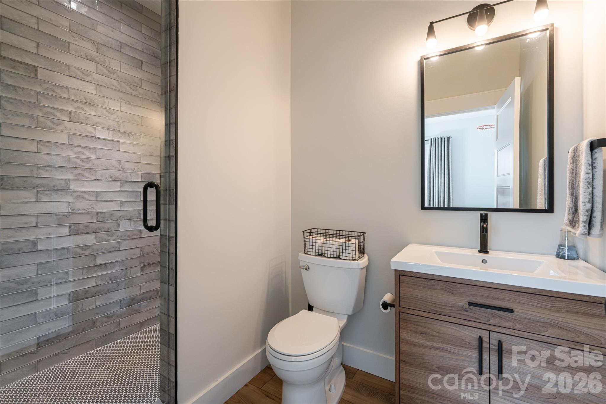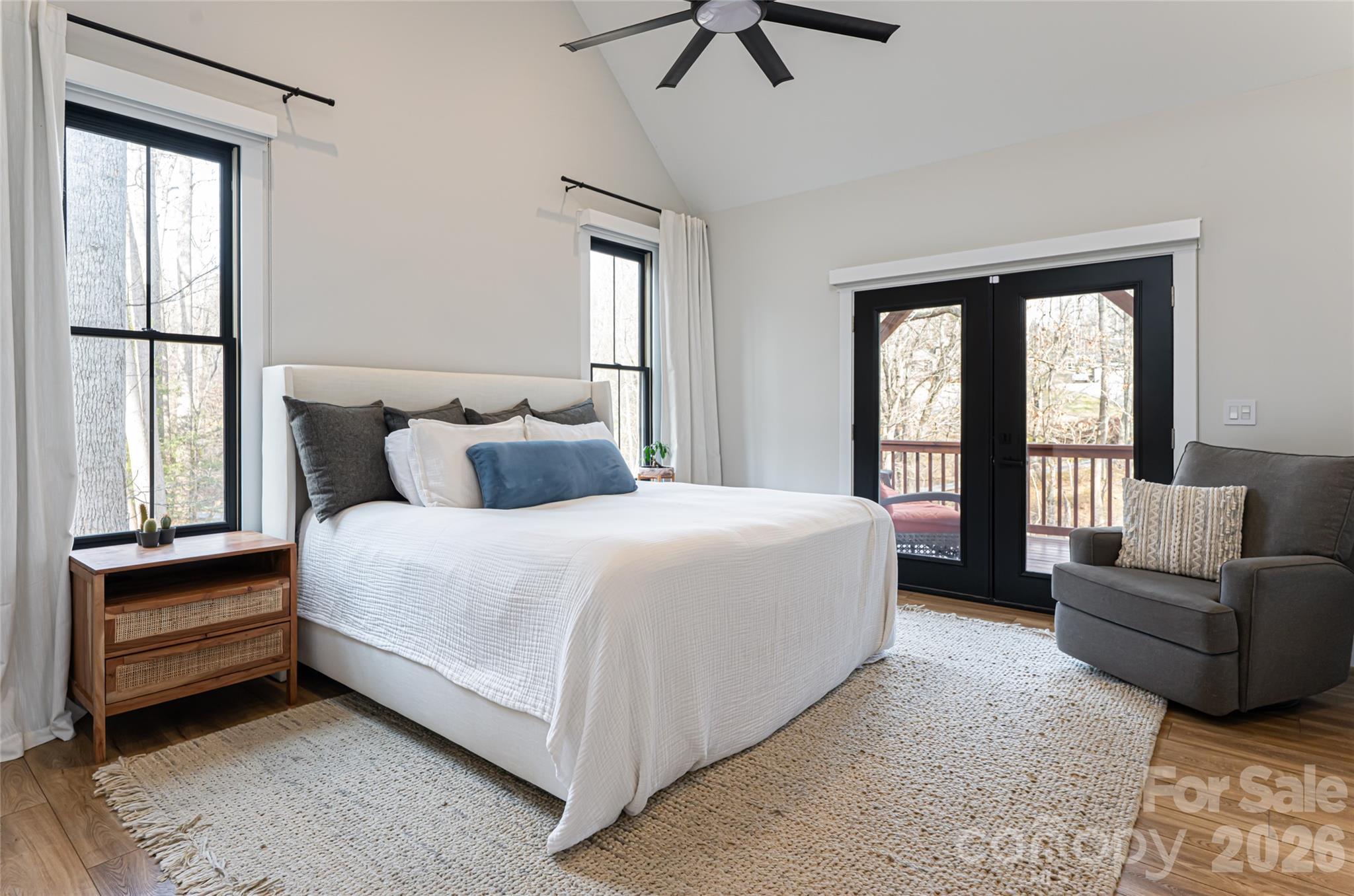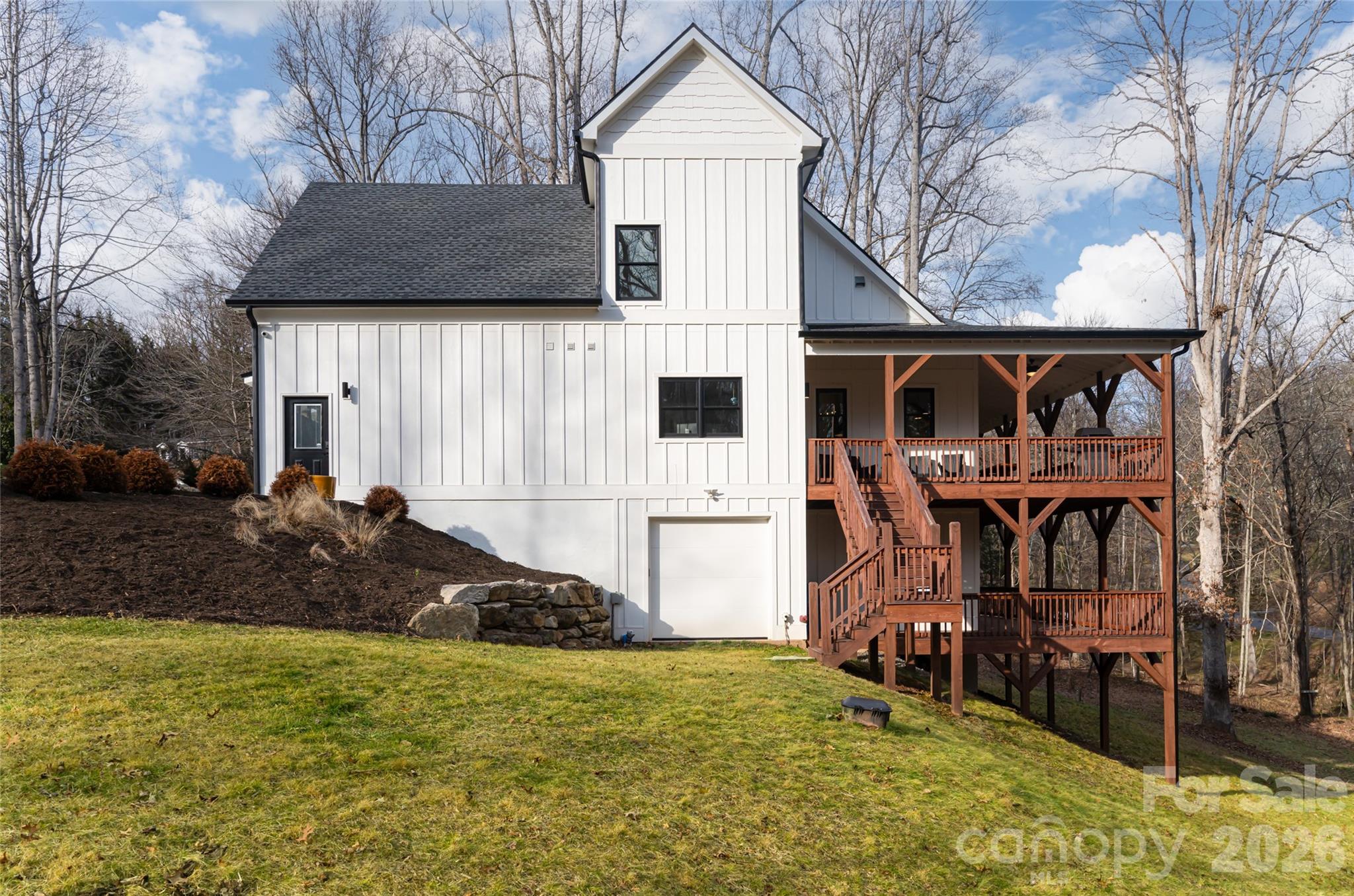 Just 15 minutes from Asheville, 13 Cambridge Drive offers a rare combination of quality construction, comfortable luxury and space, set near the end of a quiet cul-de-sac in an established neighborhood known for its larger homesites, privacy between neighbors and freedom of no HOA. Designed as a forever home with a refined, organic modern aesthetic, this home blends clean architectural lines with warm, natural materials to create a space that feels elevated and inviting. With over 3,400 square feet, the interior features vaulted ceilings, architectural beam details, a striking stone fireplace, and an open-concept layout designed for everyday living and effortless entertaining. The gourmet kitchen is equally functional and beautifully appointed, featuring a large center island, quartz countertops, solid wood cabinetry, GE Elite appliances, a walk-in pantry, artisan tilework and serene backyard views. This home offers a main-level primary suite with private deck access, a spa-style tiled shower, a double vanity, and oversized custom closet along with additional bedroom suites, a dedicated home office with its exterior entrance, and multiple laundry areas (on each level) to provide exceptional flexibility for guests, remote work or multi-generational living. The fully finished lower level expands the home’s versatility with a media room, kitchenette, full bath, and bonus space ideal for a fifth bedroom, fitness studio or recreation area, along with walkout access to a covered deck. Outdoor living is a standout with two levels of covered porches, mature landscaping, natural boulders and a gentle stream, while the extended lot reaching the road behind creates rare usable space for recreational vehicle parking, future outbuildings or gardens. Thoughtfully built with energy-efficient features including spray-foam insulation, dual-fuel HVAC, tankless water heater, aluminum-clad windows, EV charging outlet and hardwired security cameras, this home delivers lasting value, privacy and ability to make it your own, all within easy access to Interstate 40, Interstate 26, the Blue Ridge Parkway and Asheville’s amenities.