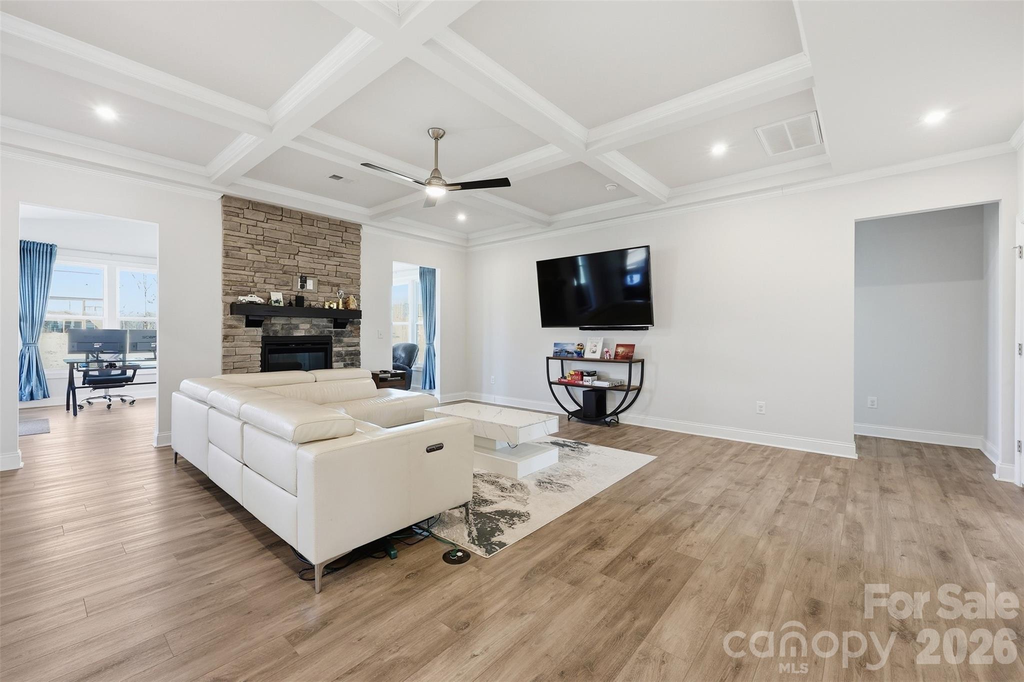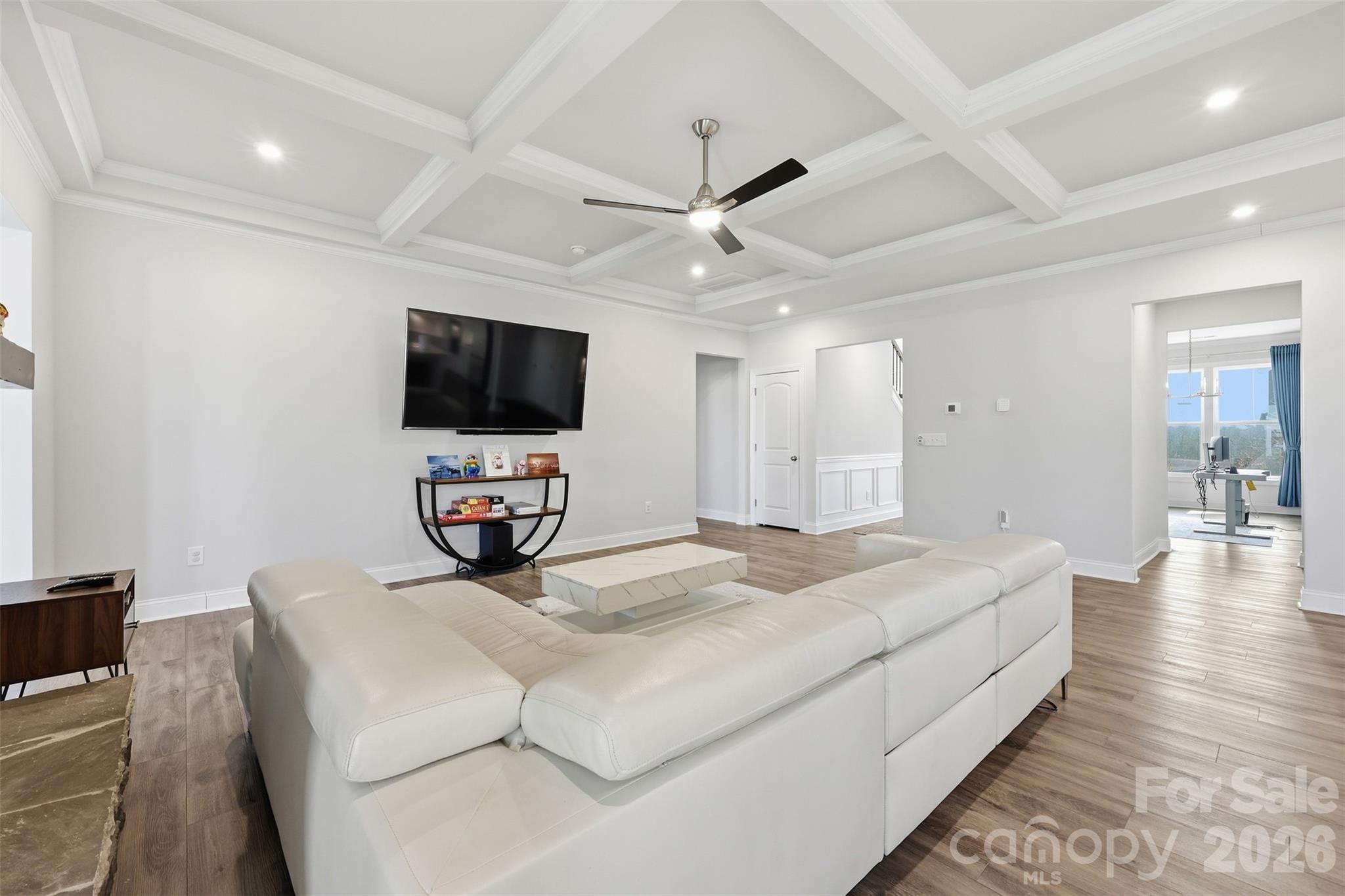 Step into luxury through a grand two-story foyer in this like-new 5-bed, 4.5-bath home on a spacious lot. it feels like top-of-the-line finishes throughout. The gourmet kitchen features stainless steel appliances, quartz countertops. The open family room boasts a raised-hearth fireplace and beautiful coffered ceilings , while an oversized office with double doors offers privacy. Oversized sunroom makes the home more beautiful. A large bonus room provides extra versatility. The upstairs primary suite includes a private sitting room, and a second primary or guest suite is conveniently located on the main level. Located in a sought-after Indian Trail/Mint Hill neighborhood, this home is the perfect blend of elegance, comfort, and modern design. Amazing yard backing to private wooded area. Easy access to interstate 485, shopping dining and entertainment.