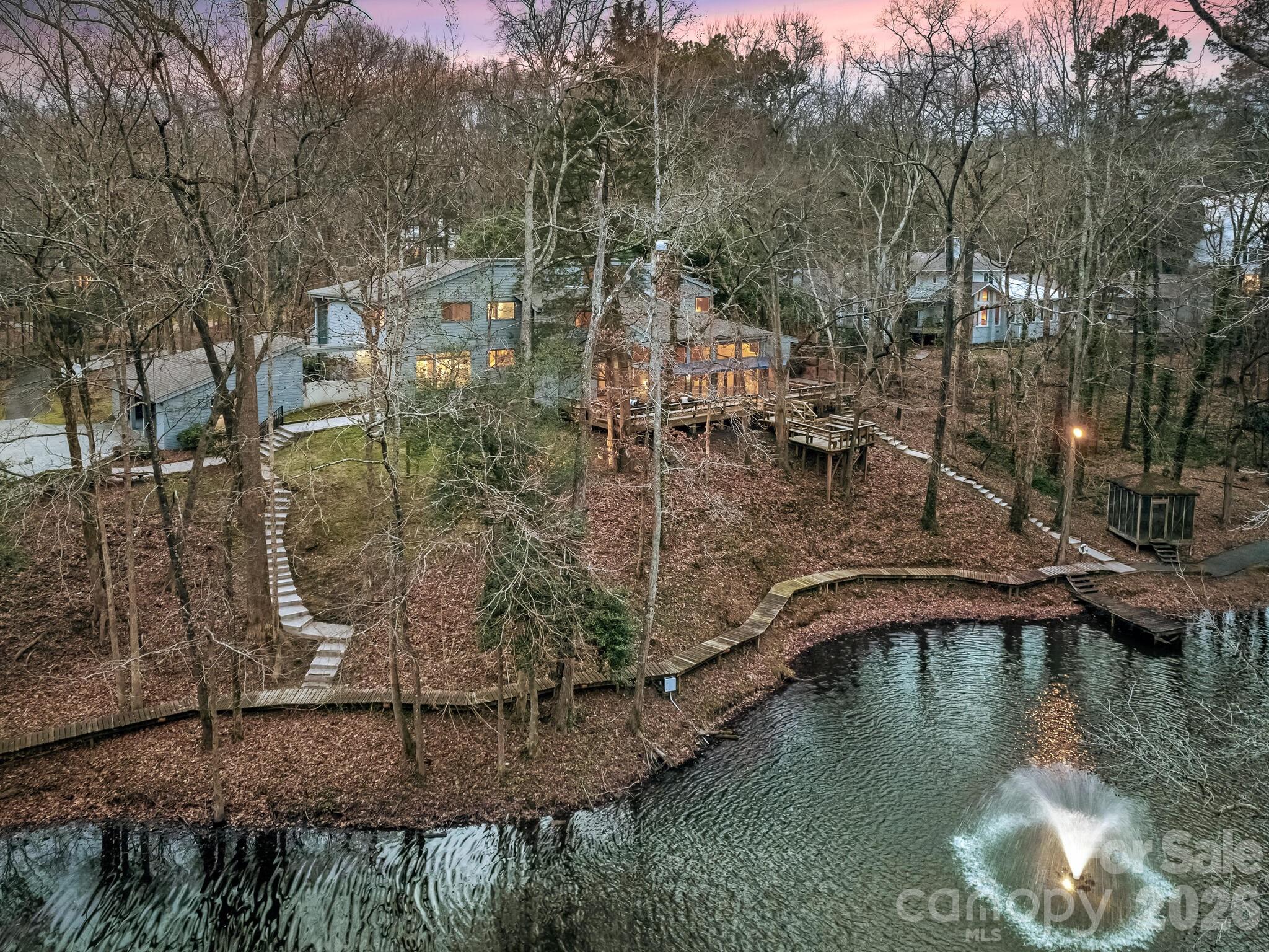 A true gem! Fabulous, one-of-a-kind home on 4+ acres with a private pond in desirable Pellyn Wood. Filled with natural light, this lovely home has an inviting floorplan - perfect for entertaining and casual family living. Features include gracious living areas, high ceilings, floor to ceiling windows and primary suite on the main level. The kitchen offers an abundance of white cabinetry, island, breakfast bar and double ovens. It opens to a breakfast area and wine cellar with lounge/tasting room. The living room and conversation pit boast a stone fireplace and beautiful views. Large laundry room with sink off kitchen. The upper level offers 4 secondary bedrooms, loft, bonus room, solarium and large walk-in attic storage. The wonderful outdoor living options - screened porch, patios, and wrap around deck along with the private, wooded lot, pond with fountain and walking trail - create a serene setting! 3 car carport with great storage. Refined yet relaxed living - a must see!
