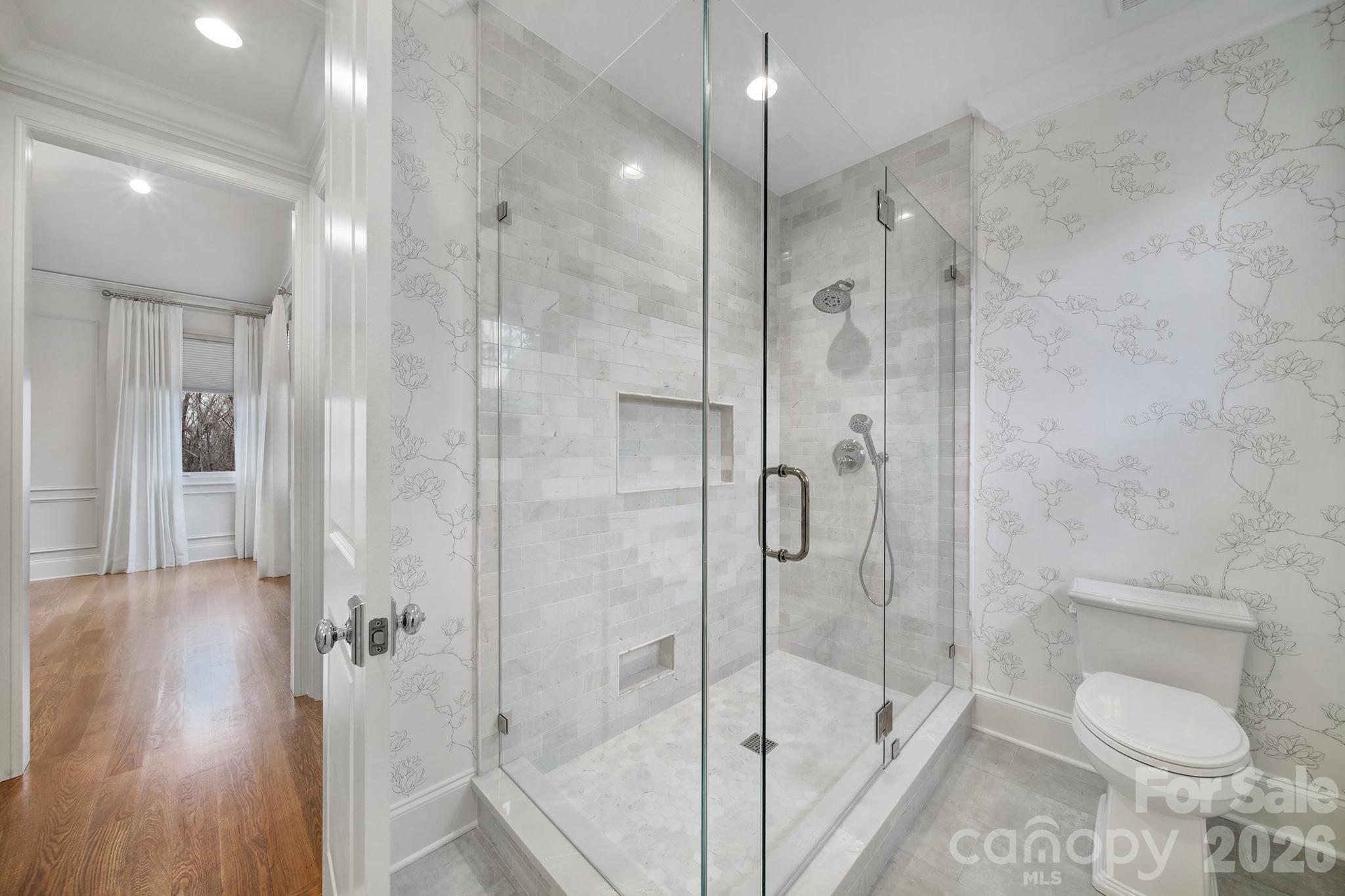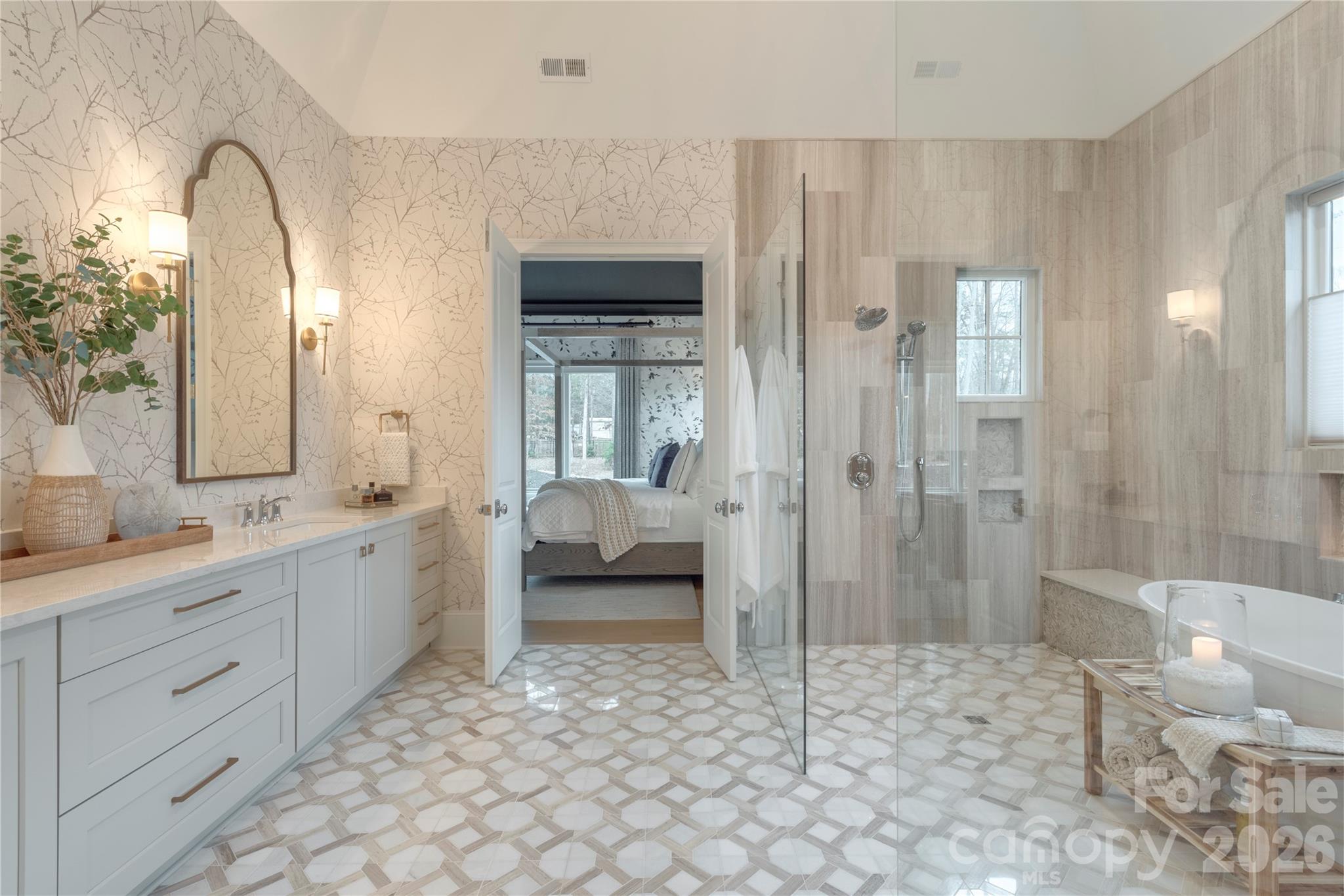 You know the house on the street that makes you slow down and look twice? This is that house. 612 Wisteria Vines Trail is brand new construction by OZ Custom Homes in Fort Mill's Wisteria Meadows community. 4,173 heated square feet with a main-level owner's suite, a second bedroom downstairs, a dedicated office, and a two-story foyer that hits different when the afternoon light comes through. The kitchen flows into the dining room and family room the way it should — open, easy, built for the way you actually live. White oak hardwood floors run throughout. A gas fireplace grounds the living space. Premium cabinetry, designer countertops, and a tankless water heater with recirculating pump because lukewarm isn't luxury. The finishes tell the story — solid core 8-foot doors on every level, 7-inch crown molding, custom tile work, and shower doors that feel like they belong in a boutique hotel. Lighting allowance alone is $25K. This isn't builder grade anything. Upstairs gives you another 1,173 square feet of breathing room. And below? A 3,000 square foot unfinished basement that's basically a dare. Home theater. Gym. Wine room. Go crazy. Outside, it's James Hardie board and batten with brick accents, standing seam metal details, and an arched entry that stops people mid-scroll. Covered porches front and back. Three-car garage because you've earned every bay. One acre lot provides more than enough space for a future pool and outdoor oasis. Now here's where it gets really good. Wisteria Meadows is minutes from Lake Wylie and right around the corner from The Grove at Tega Cay — the $250 million mixed-use development bringing walkable dining, shopping, and lifestyle to the area. Fort Mill schools. Tega Cay water and sewer. You're not just buying a home, you're buying into what's next.