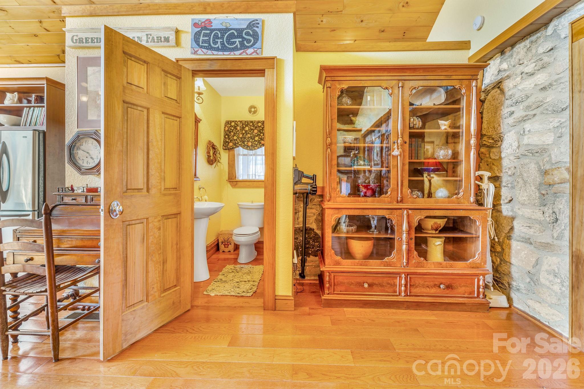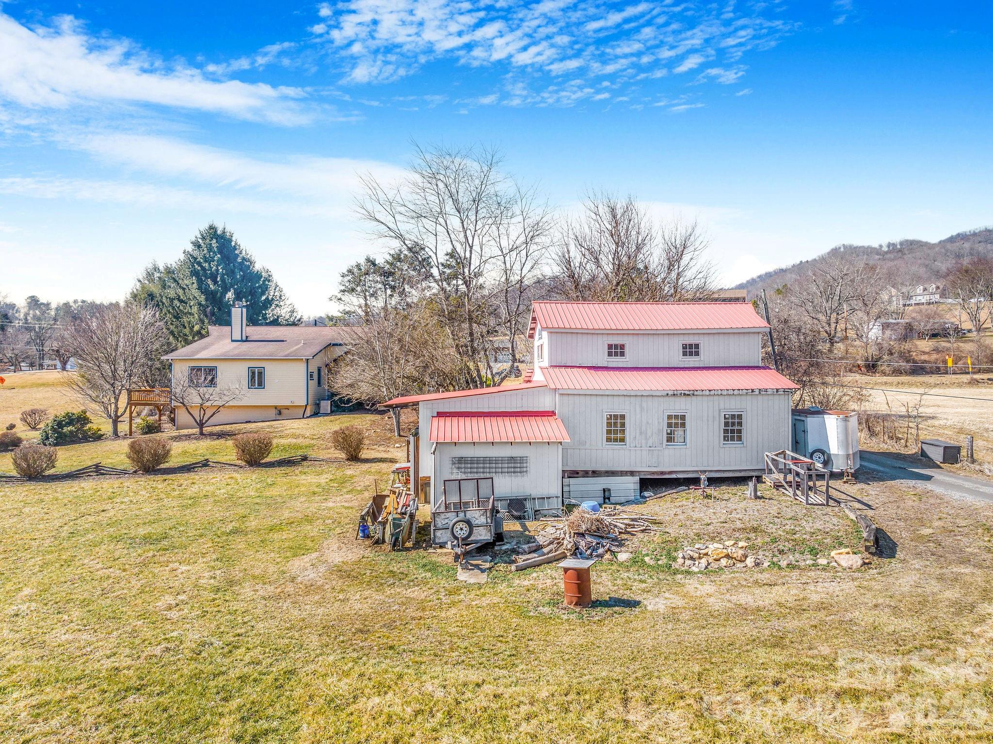 Set on approximately 4.5 private acres in Canton, this thoughtfully expanded 1947 stone cottage offers both convenience and retreat — just minutes to I-40 for easy access to Asheville and Waynesville, yet tucked away in a peaceful natural setting. Between 2006-2007, the current owners carefully preserved the character of the original 2BR/1BA home while adding over 2,200 square feet of living space, resulting in a spacious 4-bedroom home with office and 3.5 baths (additional 1 bed + 1 bath accounted for in listing is the garage apartment). Original flooring and trim remain in beautiful condition, blending seamlessly with custom finishes throughout. The main living area features vaulted ceilings, abundant natural light, open dining space, and a striking double-sided wood-burning fireplace shared with the primary suite. The generously sized primary bedroom opens to the expansive front deck, positioned to capture light while maintaining privacy. The lower level offers a second living area, bedroom, and full bath — ideal for guests, multigenerational living, or flexible use. Beyond the main residence, the property includes a detached two-car garage with a one-bedroom apartment (tenant in place; lease details available) providing income potential. A two-story barn with tractor storage and workshop space sits alongside pasture areas suitable for a variety of uses. This unique property offers space, flexibility, and opportunity — a rare combination of privacy, character, and functionality for those seeking more than a traditional neighborhood setting. The seller would like to address flood plain concerns with the following statement: Portions of the 4.5-acre parcel are located within a designated flood plain, primarily affecting the pasture areas. 18 years ago, the residence and improvements were not within the mapped flood zone. Following updated FEMA mapping after major storm events in Haywood County, a small portion of the home’s lower level and garage apartment is now indicated to be within the 500-year flood zone, but not the 100-year flood zone (approximately a few inches at the lowest point). The sellers have enjoyed this property for over 18 years. A nearby culvert has also been replaced with a viaduct, improving water flow beneath I-40. Buyers are encouraged to review all available information and verify to their satisfaction.