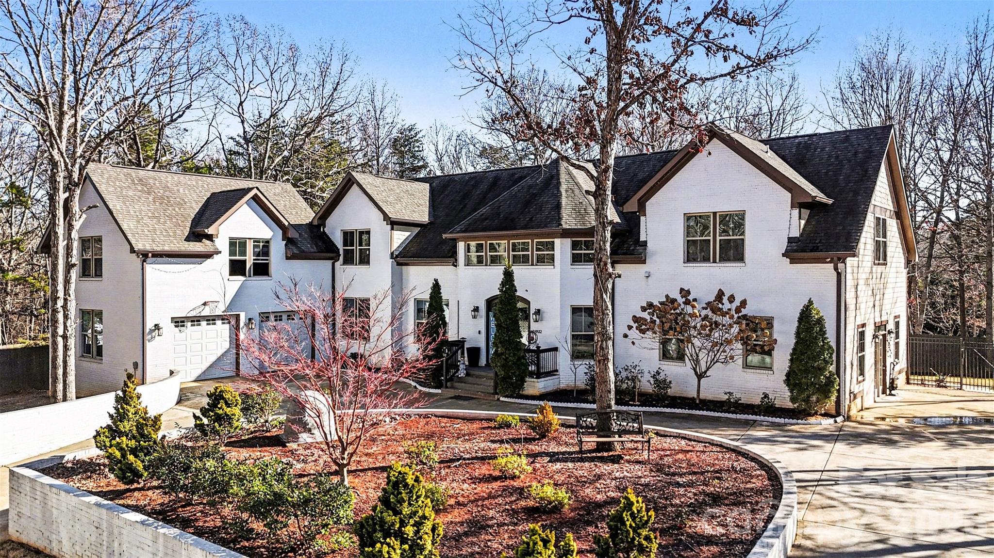 This exceptional custom home in Arlington Forest blends timeless architecture with modern luxury across more than 4,300 square feet of beautifully finished living space. Privately set on nearly half an acre, the property is surrounded by mature trees and wooded views, creating a serene retreat just minutes from the conveniences of Charlotte. From the moment you arrive, the stately exterior, circular driveway, and attached two-car garage set the tone for the elegance found inside. A grand foyer welcomes you with sweeping architectural details, extensive millwork, tray ceilings, and gleaming wood floors that flow throughout the main living areas. The two-story layout offers five spacious bedrooms and four full baths, including a luxurious primary suite designed for comfort and indulgence. The chef’s kitchen is both stunning and functional, featuring a large center island, custom built-in cabinetry and walk-in pantry. Designer lighting and premium finishes elevate the space, while seamless flow into the dining and living areas makes it ideal for both intimate gatherings and large-scale entertaining.This home also offers a private bedroom and full bath on the main level—perfect for guests, multigenerational living, or a dedicated secondary suite The primary suite is a true sanctuary, highlighted by an expansive walk-in closet and spa-inspired bath complete with a garden tub, dual vanities, and a beautifully tiled walk-in shower. Secondary bedrooms are generously sized, and additional flexible spaces—including an office and bonus areas—provide versatility for work, fitness, or recreation. Storage is abundant throughout the home with extensive closet space, and a crawl space foundation offering additional utility. The upper-level laundry room adds convenience, while thoughtful built-in features enhance organization and everyday living. There is an large unfinished space above the garage perfect for additional storage or adding additional square footage to the home. Outdoor living is equally impressive. A covered deck overlooks the private, fenced backyard, offering a peaceful setting for relaxing or entertaining amid mature landscaping and wooded surroundings. With a paved, publicly maintained road and no HOA, the property offers both privacy and freedom. This is a rare opportunity to own a refined, move-in-ready luxury residence that combines elegant design, extensive upgrades, exceptional storage, and a tranquil setting—while remaining close to shopping, dining, and major thoroughfares.