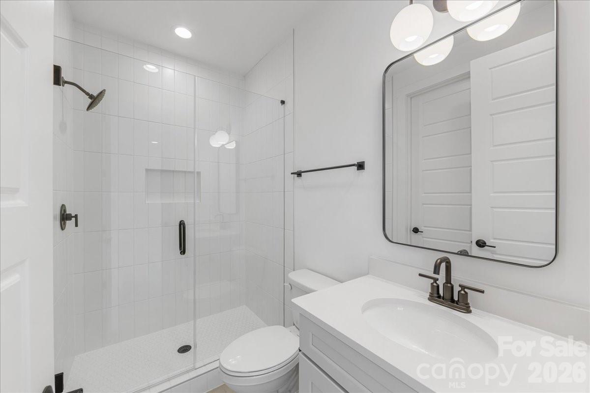Stunning new construction in the highly sought-after Oakhurst neighborhood. This home offers a thoughtfully designed open floor plan with elevated, high-end finishes throughout. Wide-plank hardwoods flow seamlessly through the main living areas, creating a warm and inviting atmosphere perfect for both everyday living and entertaining. The chef’s kitchen is the heart of the home, featuring custom cabinetry, quartz countertops, a large center island with waterfall edge,designer lighting, tile backsplash, stainless appliances, and a walk-in pantry for ample storage. The open-concept layout connects the kitchen to the spacious living area, highlighted by a beautiful stone fireplace with wood mantle and abundant natural light. The dual sided fireplace creates a cozy den sunroom for additional living space on the main level. Flex room with built in desk and storage is great for crafts, studying or home office. A convenient drop zone keeps daily life organized, while the upstairs laundry room adds ease and functionality. The primary suite is located upstairs and serves as a true retreat with separate area perfect for workout space or a sitting area. The luxurious en suite bath features a large walk-in shower, soaking tub, dual vanities, and a private water closet. Secondary bedrooms are generously sized withg reat natural light and ample closet space. Blending modern design with timeless details, this Oakhurst home delivers comfort, style, and exceptional craftsmanship in one of Charlotte’s most desirable neighborhoods.