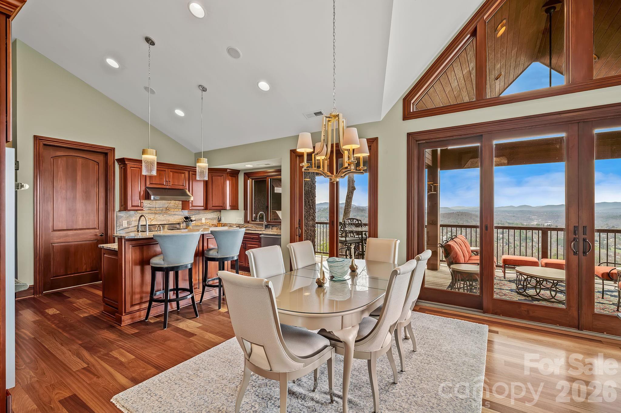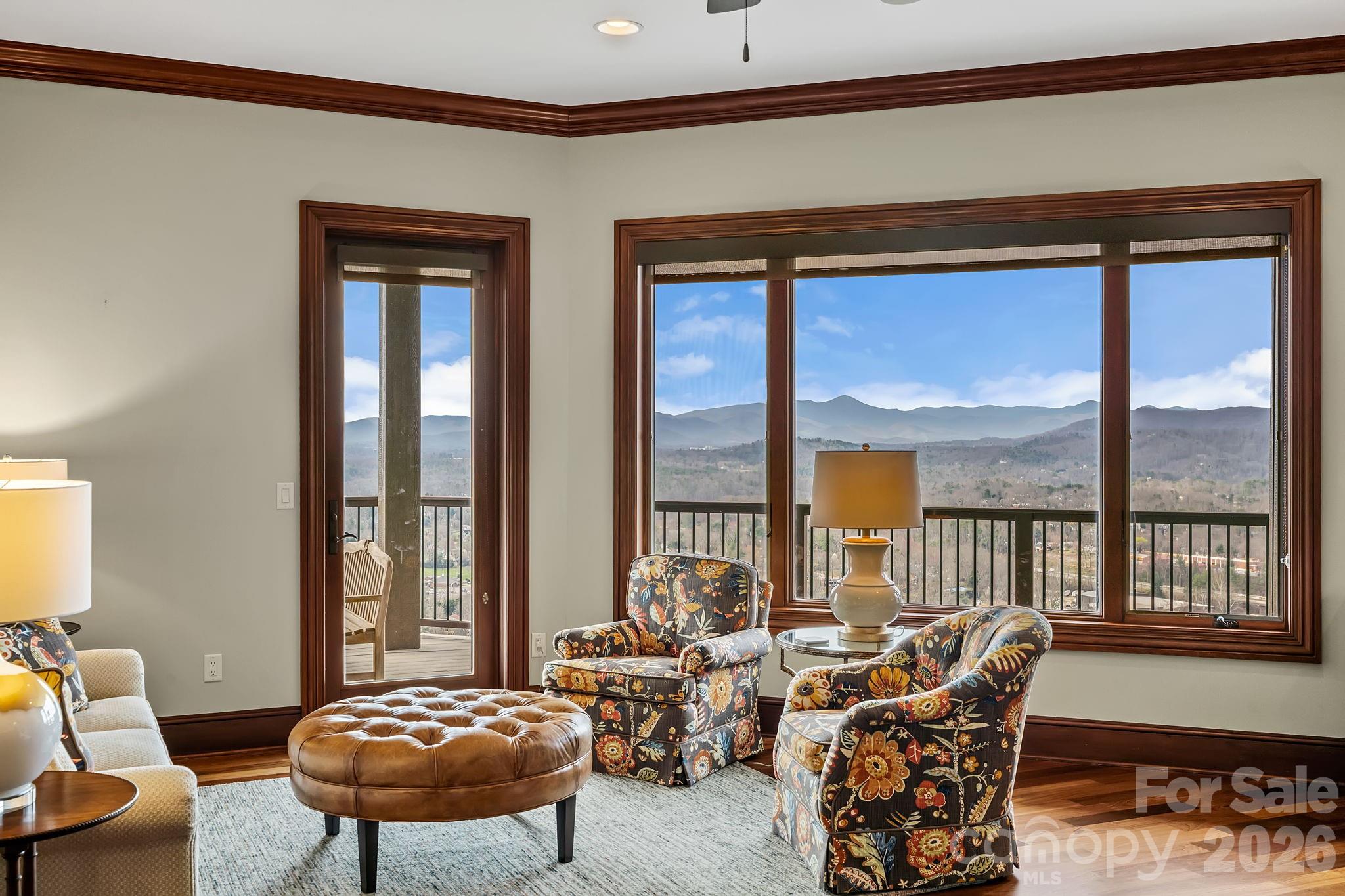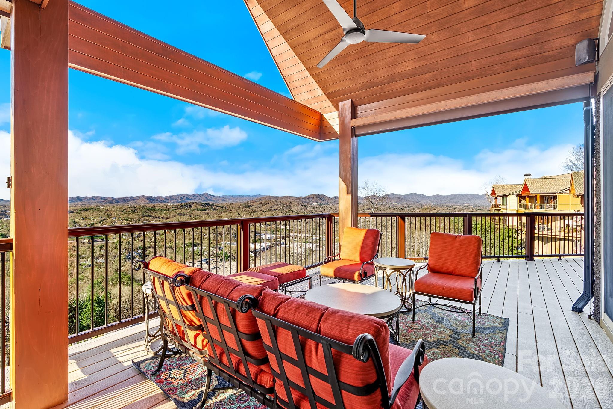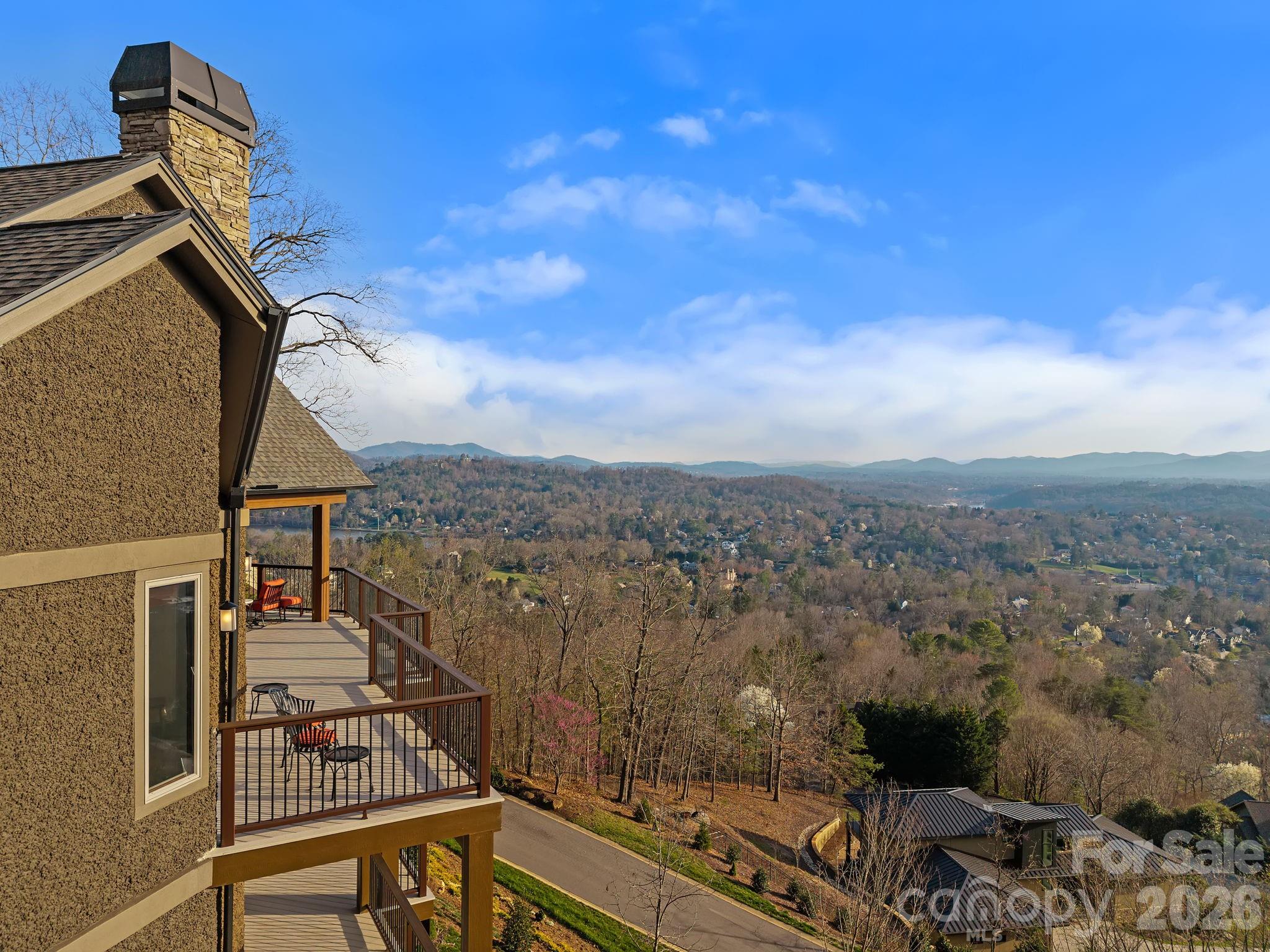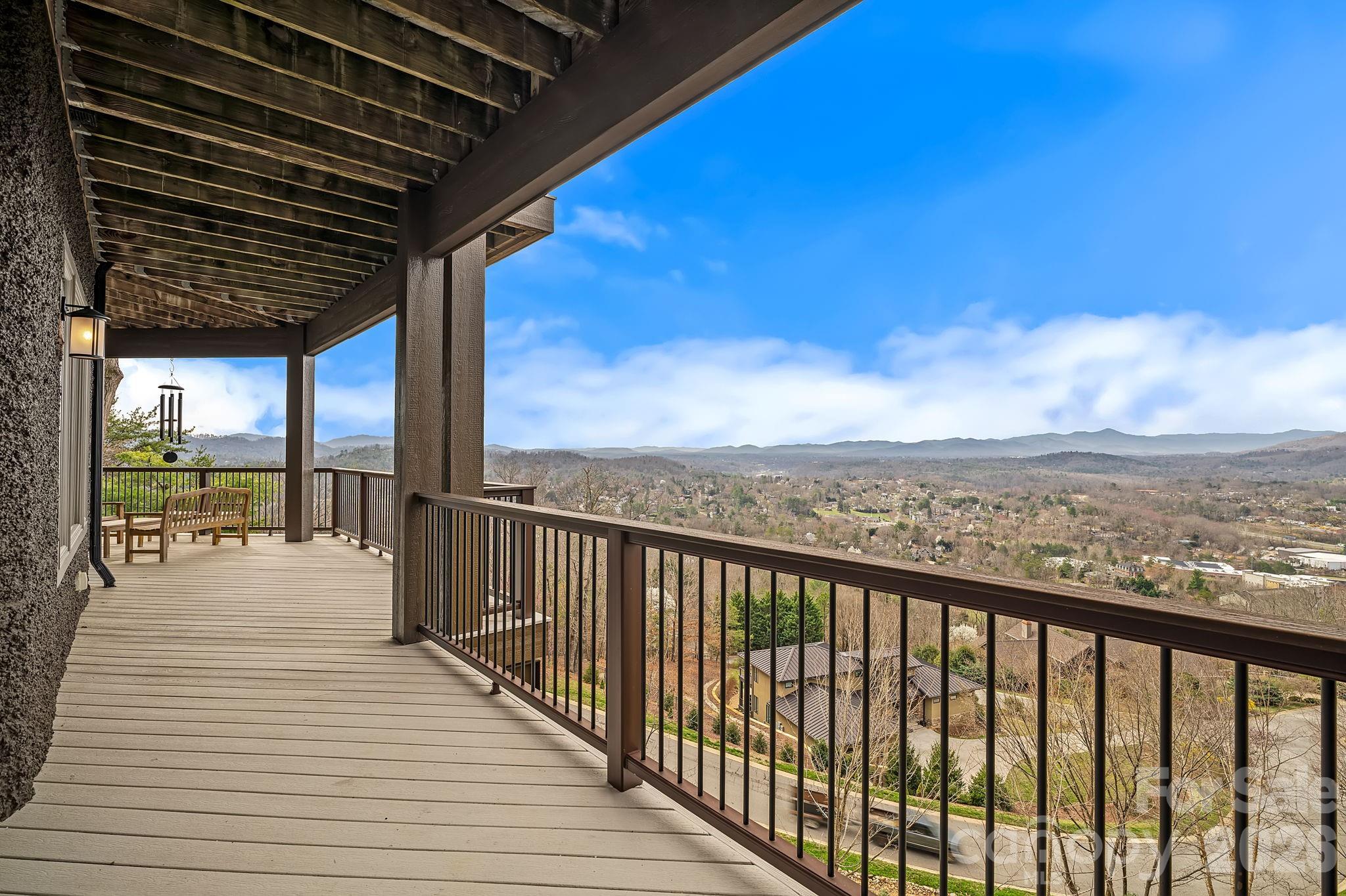 Breathtaking, unobstructed long-range mountain views define this luxury mountain retreat, where layered ridgelines stretch endlessly across the horizon from one of the most compelling vantage points in North Asheville’s coveted Reynolds Mountain community. From this elevated perch, the home also overlooks Grove Park, Beaver Lake, and the French Broad River, offering a perspective of Asheville that few properties can match. Inside, the experience continues with expansive windows that frame the mountains like living art, commanding your attention from the moment you step through the door. These magical views can be enjoyed from nearly every room throughout both levels. All primary living spaces are thoughtfully arranged on the main level, including the kitchen, great room, and primary suite. Brazilian cherry floors, soaring ceilings, a dramatic floor-to-ceiling stone fireplace, and a Viking-appointed kitchen bring warmth and refinement to the home’s 3,900+ square feet. The lower level provides exceptional flexibility for guests or recreation, with a second primary suite, an additional bedroom with a spa-like steam shower, and a private media room. Expansive wraparound Trex decks on both levels extend the home’s living spaces outdoors, with seamless access from the bedrooms and main gathering areas, perfect for enjoying the views and enchanting mountain sunsets. Additional highlights include a desirable Pebbledash exterior, a new architectural roof, updated lighting inside and out, and an elevator shaft discreetly integrated into the pantry for future accessibility, all set at the end of a quiet cul-de-sac. Just minutes from downtown Asheville’s renowned restaurants, galleries, and cultural attractions, and close to the Country Club of Asheville, the Blue Ridge Parkway, and abundant nearby hiking and biking trails.