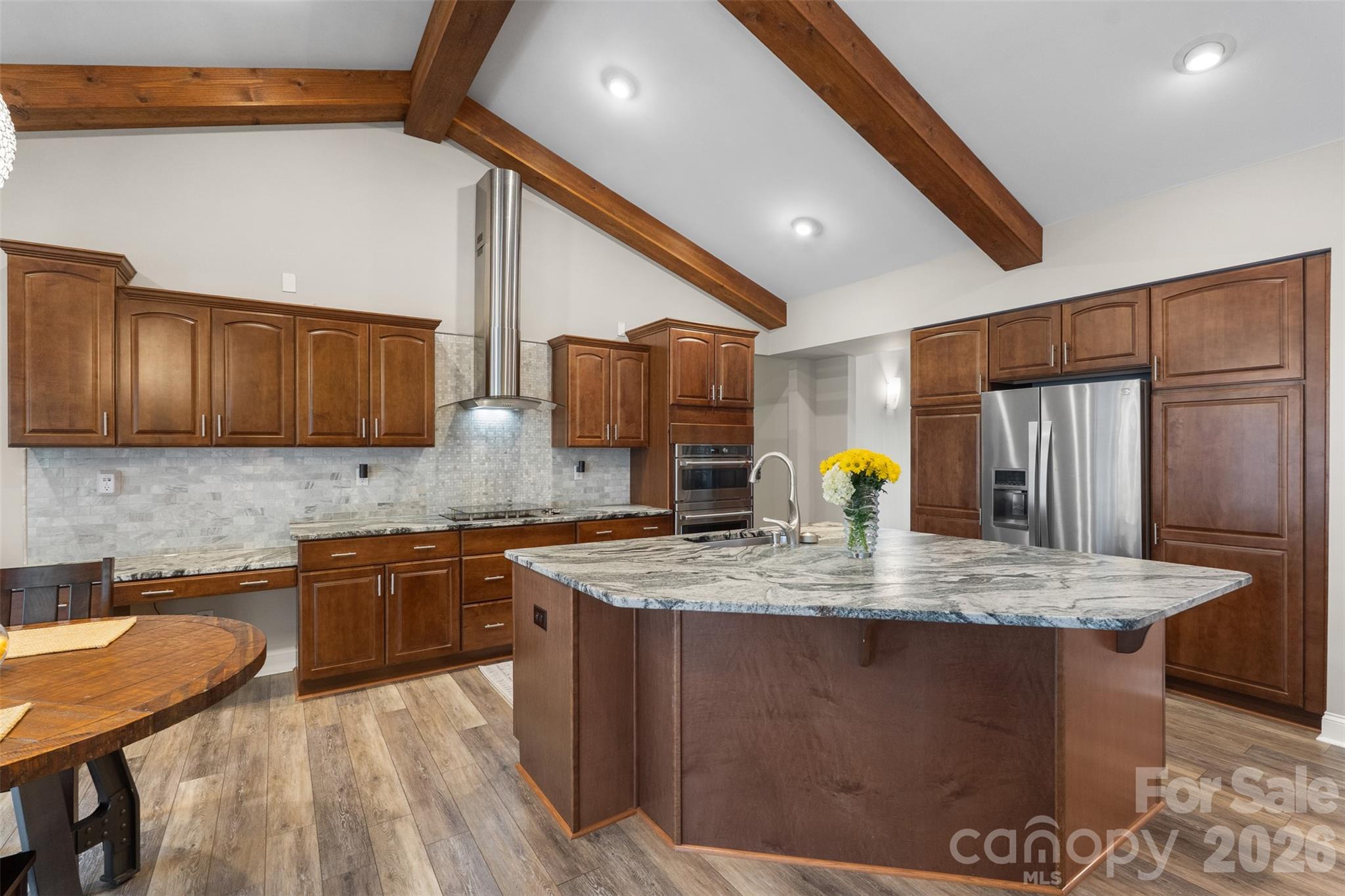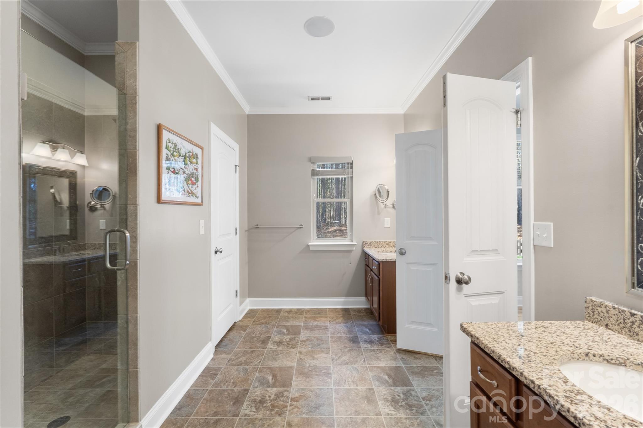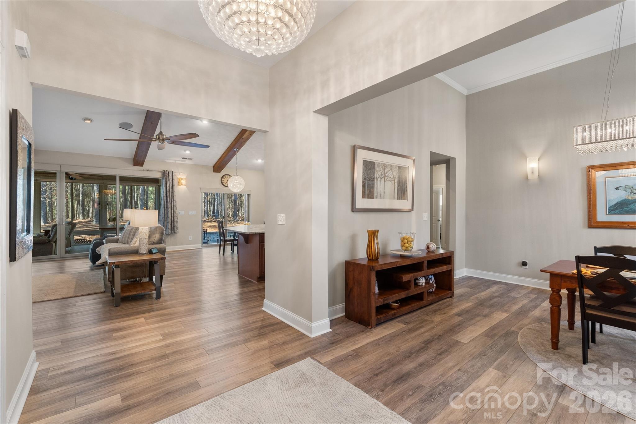 Welcome home. With over 3,000 square feet, this beautifully designed home offers the space, privacy, and custom details you’ve been looking for. The entire home has been freshly painted, giving it a bright, updated feel from the moment you step inside. The main level features three spacious bedrooms and three full bathrooms, all thoughtfully laid out for easy everyday living. Upstairs, a large bonus room with a closet gives you flexible space for a guest suite, home office, playroom, or media room. Inside, you’ll find custom touches that make this home stand out. Exposed wood beams add warmth and character. Leathered marble countertops bring both durability and style to the kitchen, which is equipped with brand-new appliances (2025). A wood accent wall creates a striking focal point, and the oversized heated sunroom is perfect for relaxing year-round, whether you're enjoying your morning coffee or winding down in the evening. For added peace of mind and efficiency, the home also features a new HVAC system (2025). Situated on an extra-large, private lot in one of the most sought-after communities in Troutman, this property offers the best of both worlds. It feels peaceful and tucked away, yet you're just a short drive from shopping, dining, and conveniences in Mooresville. The backyard is a true retreat, surrounded by mature trees that provide privacy in every season. The only regular visitors you’re likely to see are deer passing through. Even the garage has been elevated with durable polyurea-coated floors, offering a sleek appearance and long-lasting performance. This home blends style, comfort, thoughtful upgrades, and privacy in a way that simply feels right the moment you walk in. Come see it for yourself and fall in love.