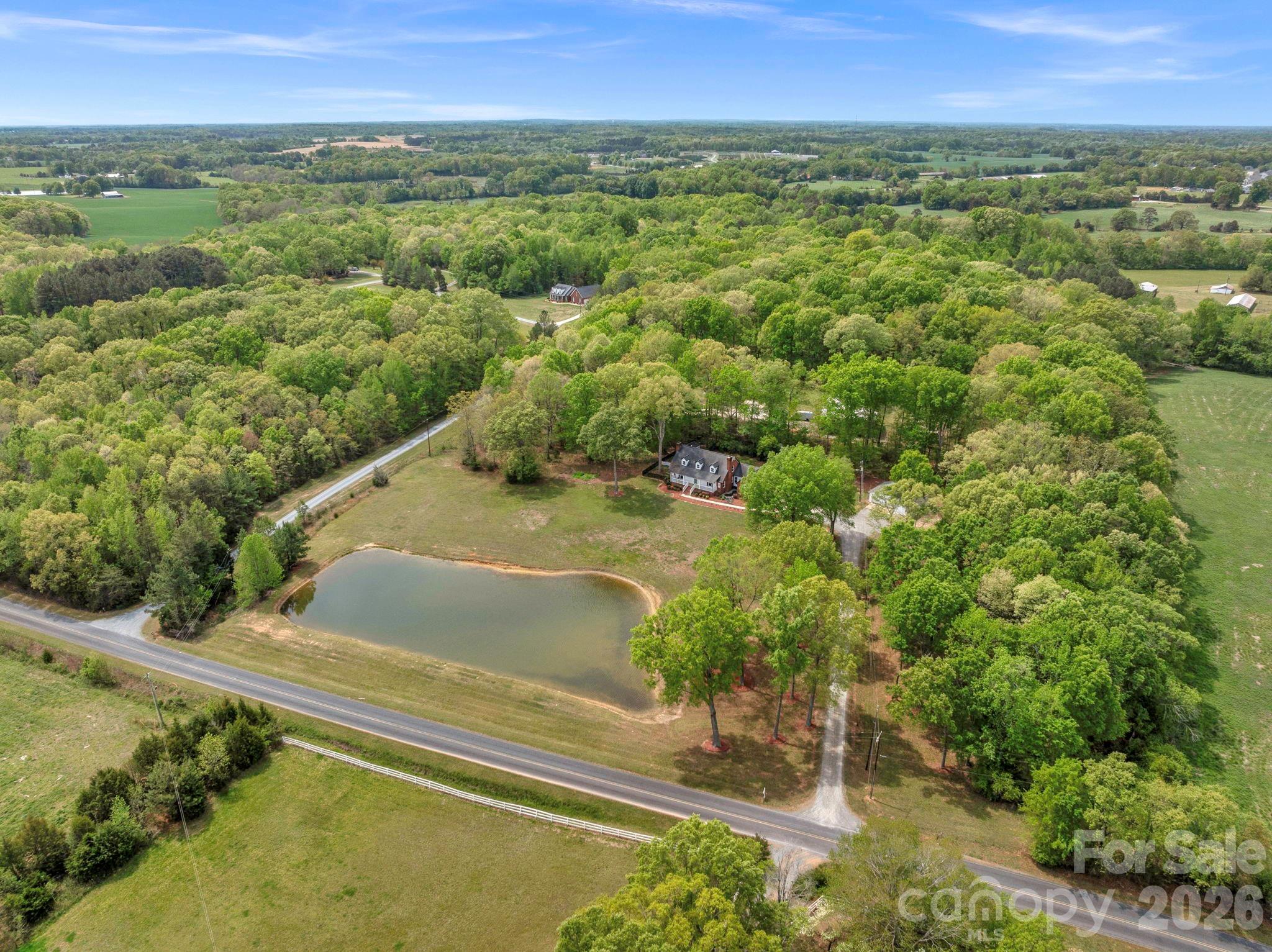 Discover the ideal country setting with this 4 bedroom, 2.5 bath home on 6 private acres featuring a pond, in-ground saltwater pool, and no HOA. Fresh interior paint, new flooring, and new carpet create a move-in ready feel throughout. The layout highlights a highly desirable primary suite on the main level, offering comfort and convenience, while all additional bedrooms are tucked upstairs for separation and privacy. Enjoy flexible living with both an attached two-car garage and a detached two-car garage workshop, perfect for storage, hobbies, or space for recreational vehicles and outdoor equipment. Designed for buyers seeking land, privacy, and room to spread out, this property delivers the lifestyle many are searching for. Spend evenings overlooking the water, entertain around the pool, or take advantage of the open acreage for outdoor activities and toys. With a peaceful rural atmosphere and convenient access to surrounding areas, this home offers the perfect balance of space, function, and relaxed country living. Schedule your showing today.