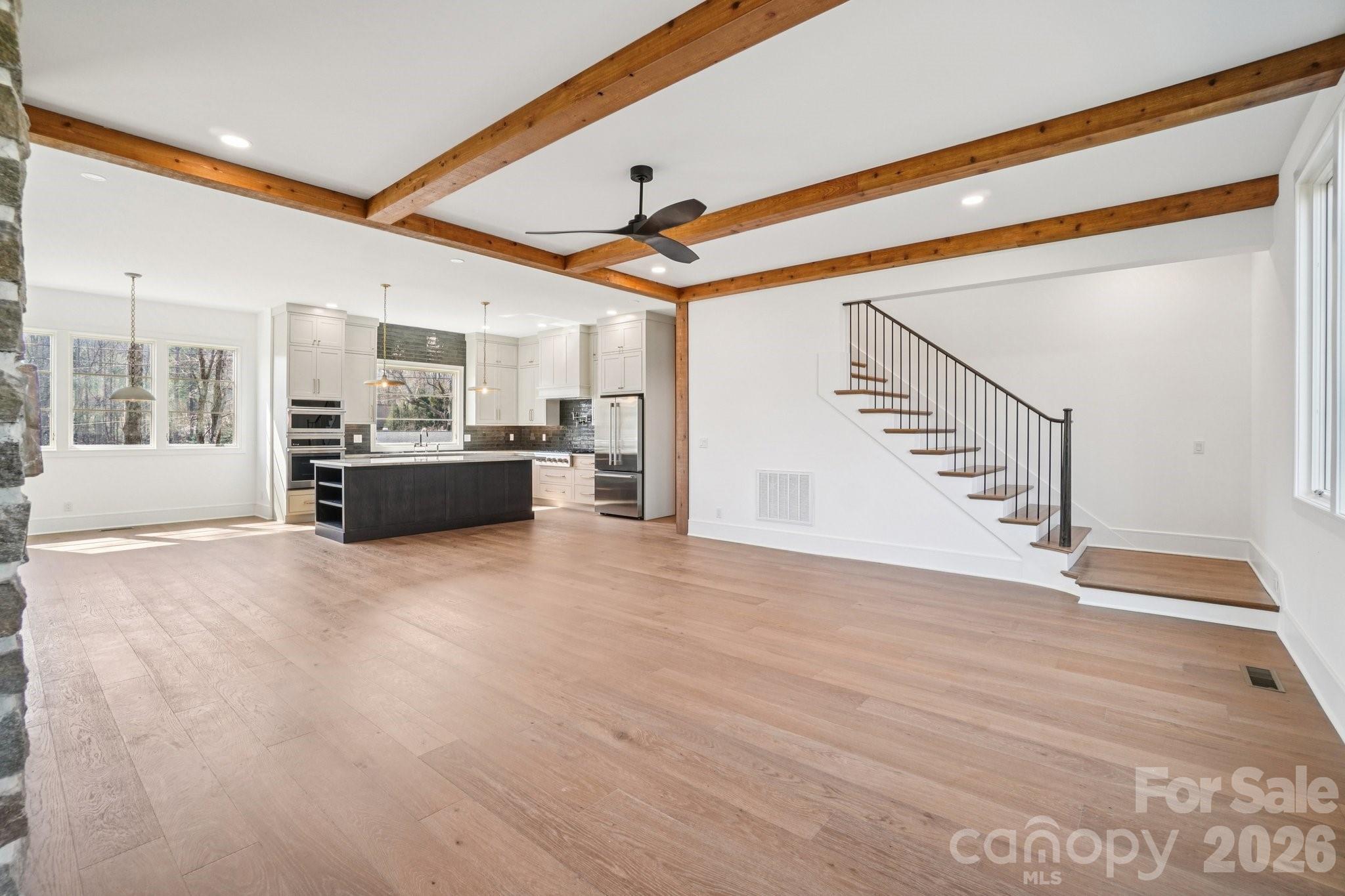 Introducing a remarkable custom residence thoughtfully designed and engineered to stand the test of time. Located less than one mile from the charm and vibrancy of Main Street Brevard, this newly constructed architectural home blends timeless craftsmanship, designer-curated interiors, and rare steel-frame construction into a property destined to be enjoyed for generations. Unlike conventional wood-framed homes, this residence is built using structural steel framing, providing exceptional strength, durability, and long-term stability. Steel construction offers superior resistance to warping, settling, moisture, pests, and fire while maintaining precise structural integrity over time. The result is a home that feels solid, quiet, and enduring—an investment in both luxury and longevity rarely found in residential construction. From the moment you arrive, the home makes a striking architectural impression. The exterior combines natural stone, modern mountain design elements, and warm textures that create a presence both sophisticated and inviting. Inside, the main living area opens to an expansive great room defined by soaring ceilings, exposed architectural beams, and a dramatic stone fireplace that anchors the space. Natural light fills the home through large windows that frame views of the surrounding landscape while creating a warm and welcoming atmosphere throughout the living spaces. Wide-plank hardwood floors, custom millwork, and carefully selected designer lighting contribute to an interior that feels both refined and comfortable. The chef’s kitchen is a true centerpiece of the home, thoughtfully designed for both everyday living and entertaining. Anchored by a generous center island, the space features premium cabinetry, elegant countertops, and high-end appliances. The open layout flows seamlessly between the kitchen, dining area, and great room, creating an ideal setting for gatherings both large and small. The main-level primary suite provides a private retreat designed with relaxation in mind. The spa-inspired bathroom features elegant finishes, a soaking tub, walk-in shower, and a spacious walk-in closet, creating a luxurious and peaceful sanctuary within the home. Additional bedrooms and flexible living spaces offer comfort and versatility for family members, guests, or home office needs. Outdoor living is equally impressive. A beautifully designed covered terrace with its own fireplace extends the living space outdoors, creating the perfect setting for year-round enjoyment. Whether entertaining guests or enjoying a quiet evening under the stars, the outdoor spaces feel like a natural extension of the home’s interior. One of the home’s most desirable features is its exceptional location. Situated less than a mile from downtown Brevard, owners enjoy easy access to the town’s beloved restaurants, art galleries, music venues, boutique shopping, and year-round festivals while still enjoying the privacy and comfort of a beautifully designed residential setting. With approximately 3,020 square feet of thoughtfully designed living space, this exceptional home offers the rare combination of architectural distinction, advanced structural construction, curated luxury finishes, and an unbeatable location. Opportunities to own a steel-framed custom home of this caliber in the heart of Brevard are extraordinarily rare. This is more than a home. It is a legacy residence built to endure for generations.