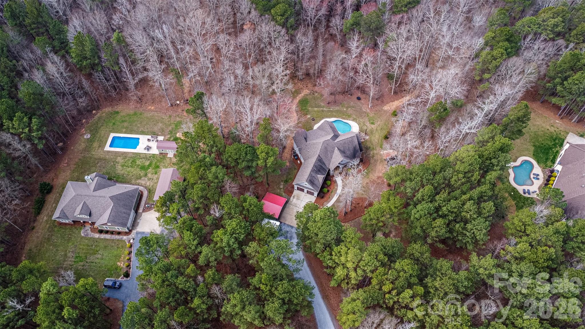 Nestled on 6.68 private, wooded acres in the desirable Olde York Farms community, this custom-built estate offers the perfect blend of refined living and peaceful countryside charm. Built in 2017, this thoughtfully designed home features over 4,200 square feet of living space, including a fully finished walk-out basement ideal for multi-generational living or guest accommodations. The main level showcases an open and inviting layout with a spacious living room centered around a gas fireplace, a well-appointed kitchen with a large island, gas range, and breakfast bar, and a dining area perfect for gathering. The primary suite is located on the main level and offers a true retreat with a spa-like bathroom featuring a soaking tub, separate shower, dual vanities, and generous closet space. Two additional bedrooms, a dedicated office, and a convenient drop zone complete the main floor. Upstairs, a versatile bonus room provides the perfect flex space for a media room, playroom, or home gym. The finished basement expands the home’s functionality with an additional bedroom, full bathroom, second living area, flex space, and kitchenette—ideal for extended stays or entertaining. Outdoor living is just as impressive, with a covered front porch, screened back porch, expansive deck, and patio overlooking the private, wooded surroundings. Enjoy evenings around the fire pit or relax by the in-ground pool, creating your own secluded retreat. Additional features include a two-car side-load garage, tankless water heater, well and septic, and no HOA restrictions—offering both comfort and freedom. This is a rare opportunity to own a private estate with modern amenities, just a short drive from the conveniences of York and surrounding areas.