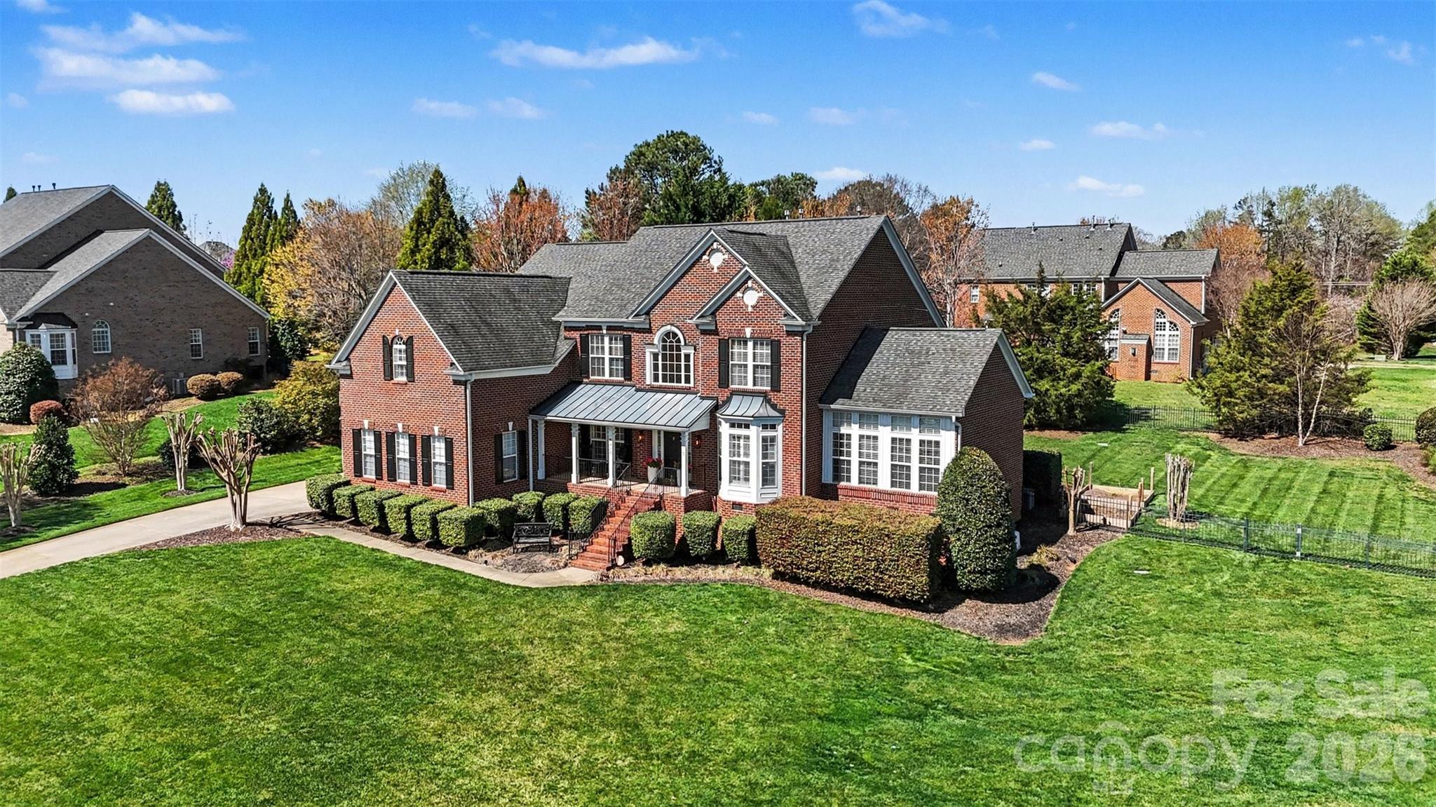 This is more than a home—it’s a thoughtfully curated retreat, where elegance and ease come together in perfect harmony. Tucked within one of Mint Hill’s most desirable enclaves, this former model home showcases timeless full-brick construction and a setting that feels both elevated and serene, with tranquil pond views best enjoyed from the inviting front porch. From the moment you arrive, the welcoming rocking chair front porch and manicured landscape set a gracious tone—an invitation to slow down and savor. It’s the perfect perch for morning coffee as the water gently reflects the day’s first light, or for unwinding in the evening with a glass of wine as the neighborhood settles into quiet calm. Inside, a soaring two-story foyer greets you with an abundance of natural light and refined architectural detail, creating a sense of openness that carries throughout the home. Designed for both gathering and quiet moments, the main level offers a seamless blend of formal and relaxed spaces. The living room, tucked behind elegant double doors, leads into a private home theater—perfect for cozy evenings and memorable movie nights. Nearby, the formal dining room, grounded by rich wood floors, provides a warm and inviting backdrop for celebrations both large and small. At the heart of the home, the kitchen is as beautiful as it is functional. Granite countertops, stainless steel appliances, generous cabinetry, and an expansive island invite connection—whether preparing a meal or simply enjoying conversation. The adjoining breakfast area opens to the deck, offering a peaceful outdoor setting for dining, entertaining, or simply enjoying the fresh air. The two-story great room is a true focal point, anchored by a fireplace and framed by a dramatic wall of windows that draws in sunlight and showcases the natural surroundings. It’s a space that feels both grand and welcoming. Upstairs, the primary suite offers a peaceful escape, with ample space to relax and recharge. The spa-inspired bath and expansive dual closets add both comfort and practicality, creating a retreat that feels indulgent yet effortless. With its rare combination of thoughtful design, scenic beauty, and a sought-after Mint Hill location—along with the added benefit of a low HOA—this home offers a lifestyle defined by quiet luxury and lasting value. For those seeking something truly special, this is a place that feels like home from the very first moment.