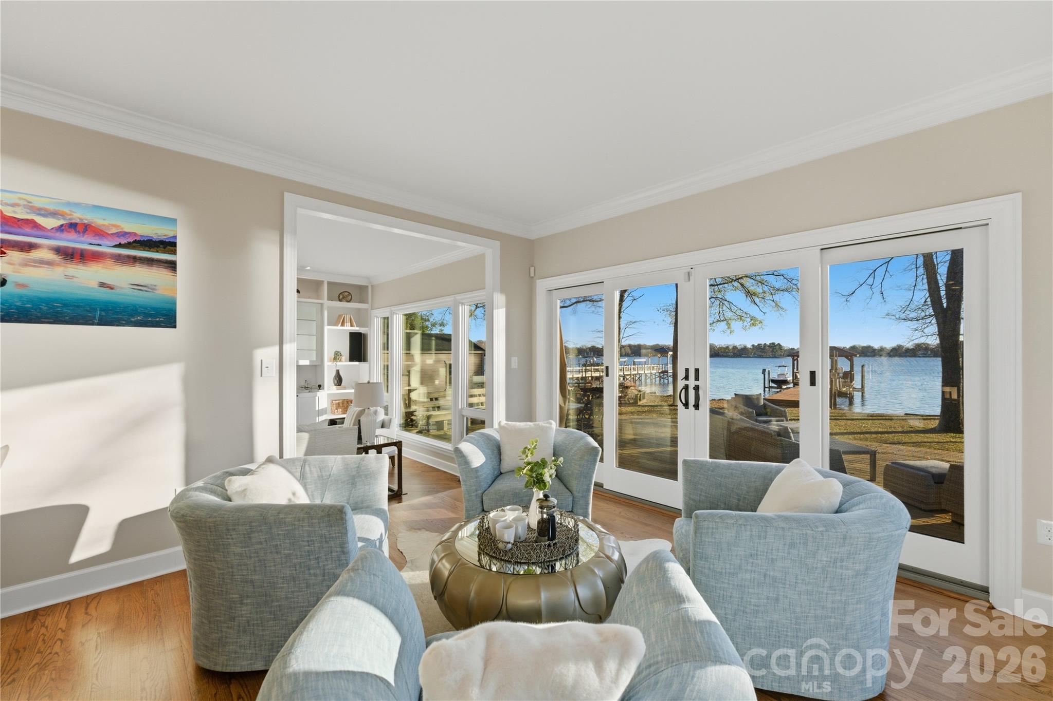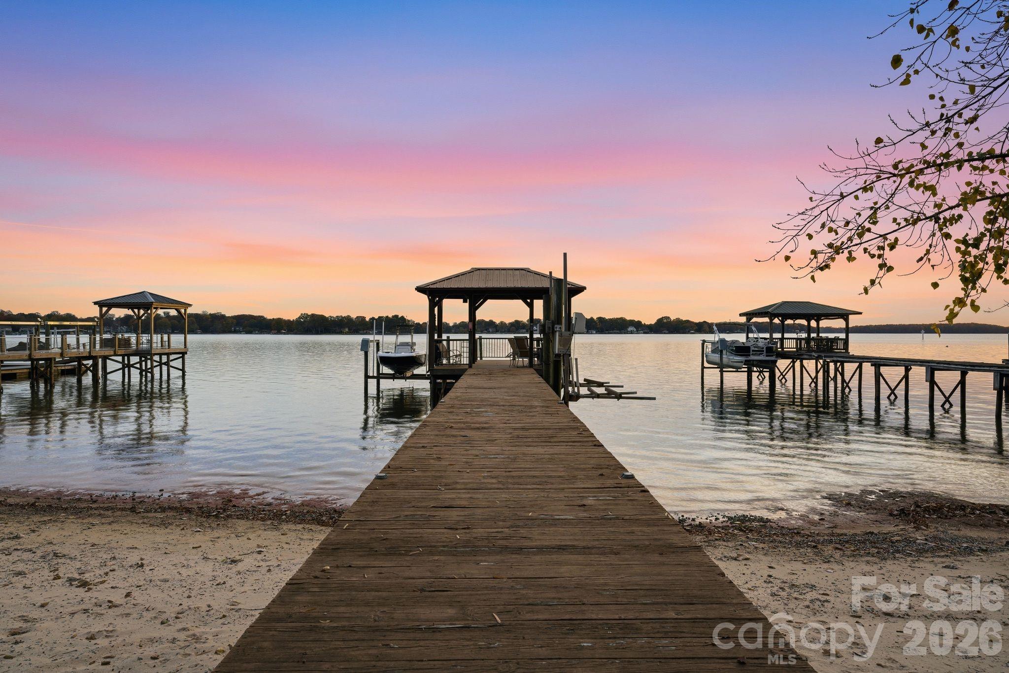 Don't miss this rare opportunity to own stunning Main Channel Sunset Views on Lake Norman under $3M - a property like this doesn't come around often. Perfectly positioned in a private setting, this home captures expansive water views from nearly every room while being conveniently located near popular waterfront and off-water restaurants, marinas and shopping. Designed for effortless lake living, the kitchen shines with granite countertops, custom cabinetry, icemaker and beverage fridge - ideal for entertaining after a day on the water. Hardwood floors run throughout most of the main level, and storage is abundant with thoughtfully designed custom cabinetry. The Main-Level Primary Suite offers a true spa-like retreat featuring dual sinks, a Jacuzzi tub, large sauna and oversized dual-head shower. A convenient shower off the laundry room makes post-lake cleanup quick and easy. Upstairs expands the living space with a large loft, oversized bonus room, three additional bedrooms and two full bathrooms - perfect for family, guests or flexible living. Step outside to enjoy everything lake life offers: a sandy beach, boat lift, dual jet ski lifts, covered sitting area and breathtaking sunset views. Situated on a generous .75 acre lot, the exterior also features an oversized deck, fire pit area, paver walkway, storage shed, and sweeping water views that make this property truly unforgettable. A pool rendering by Pelican Pools is available. Additional highlights include a three-car garage with epoxy flooring, a second half bath, and an enclosed breezeway. This is an amazing home to enjoy spectacular sunsets, main channel views, and true lakefront living.
