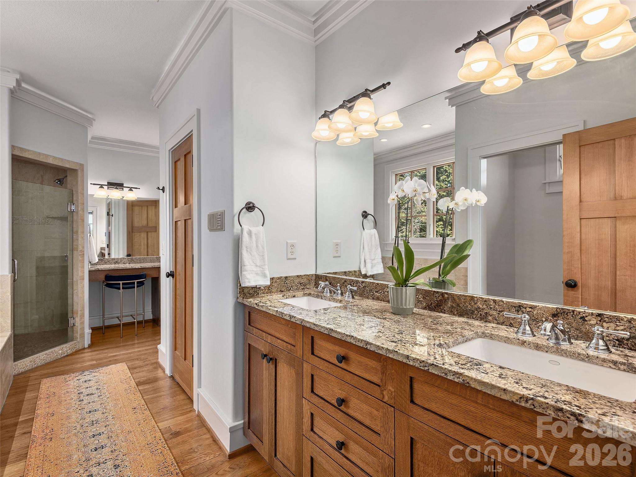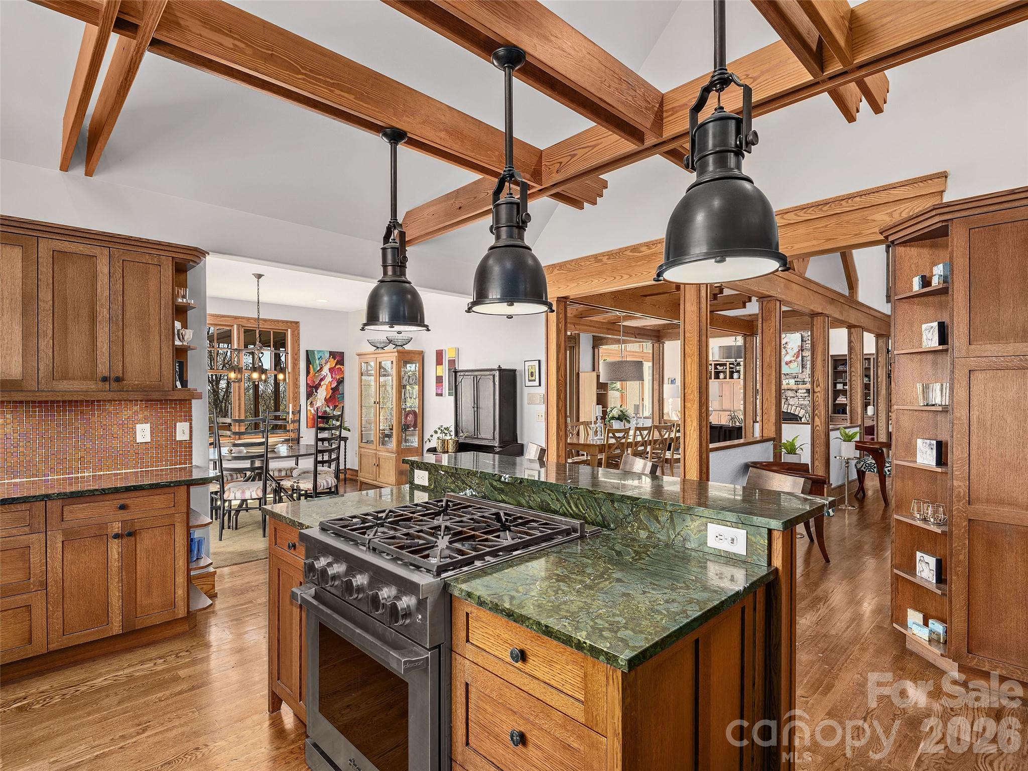 Rising above Biltmore Park at the end of its most coveted street, this is the home you don't forget. Sweeping long-range views set the stage, but step inside and the story only gets better. Slate stone entry flows into soaring trellised beamed ceilings and walls of glass that flood every room with light and landscape, while locally milled hardwood floors, custom interior doors, and precision trim speak to a level of craft rarely found at any price point. The gourmet kitchen delivers with white oak cabinetry, elegant granite, and stainless steel appliances - and a new composite deck and screened porch invite you to slow down and take it all in. Solar-powered radiant floor heating keeps things effortless year-round, and upstairs, the primary suite with private covered balcony is exactly the sanctuary a home like this deserves. The daylight basement expands the possibilities with a full kitchen, generous family room, additional bedrooms, and a steam shower bath - while wood-burning fireplaces, a rare three-car garage, and an exquisite pool & outdoor kitchen make this Asheville mountain living at its absolute finest.