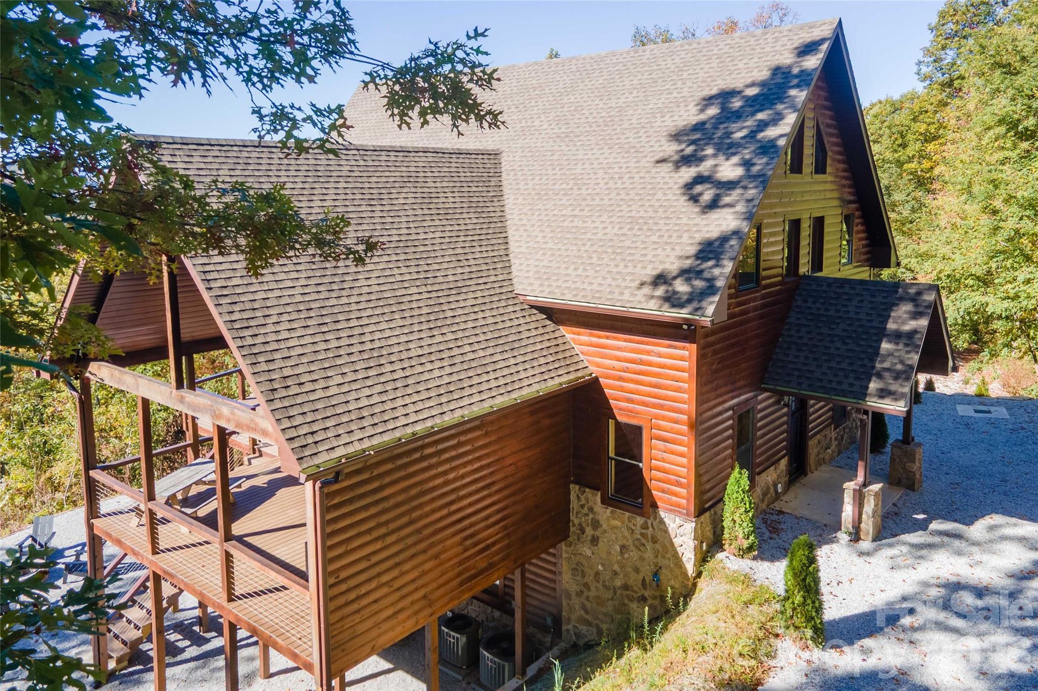 Luxury Custom Log Home with Panoramic Views in Gated Community. This stunning custom-built log home offers over 4,000 square feet of living space with 3 bedrooms and 3.5 bathrooms, perfectly blending rustic charm with modern luxury. The open floor plan features vaulted ceilings and floor-to-ceiling Jeld-Wen windows and doors, showcasing breathtaking mountain views. The main level includes a spacious primary suite with ensuite bath, while the home also boasts a Scandia Sauna, a well-appointed kitchen with granite countertops, and elegant glass showers. Enjoy versatile spaces such as a large recreation room downstairs and an open loft area, ideal for relaxation or entertaining. Additional highlights include a whole-home Generac generator, electric fireplace, Trek decking, Coretec flooring, and premium finishes throughout. The property is equipped with Trane heat pumps, a Honeywell home system, and offers ample parking, a cozy firepit, and the security of a gated community. With so many extras this home is a rare find for those seeking mountain elegance and comfort. Can be used as a short-term rental. Located in Alarka Highlands Community, just 13.5 miles from downtown Bryson City.