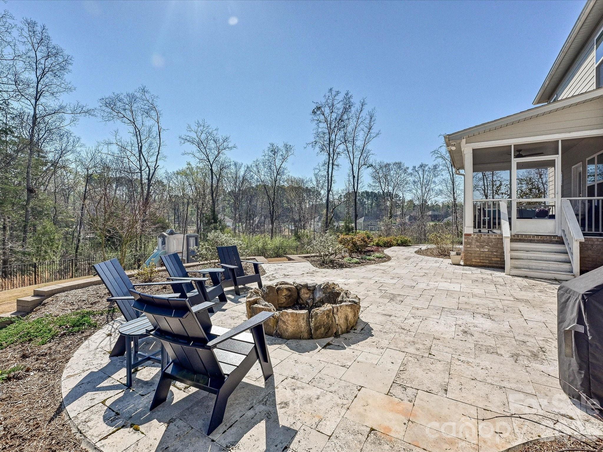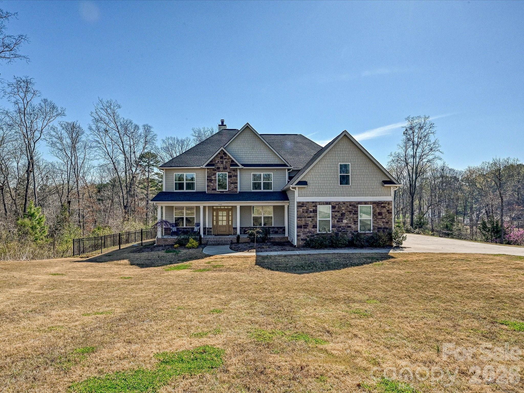 Stunning lakefront retreat offering 5 bedrooms and 4 full baths, set on an expansive 3.36-acre homesite with a 3-car garage, and thoughtfully upgraded with an extensive list of premium enhancements. This home seamlessly blends luxury, comfort, and energy efficiency—perfectly positioned to capture serene water views and elevated everyday living. Step inside to a bright, open-concept floor plan featuring upgraded LVP flooring extended through the primary suite and hallway, designer lighting, and a striking marble fireplace that anchors the main living space. The chef’s kitchen is enhanced with upgraded countertops and flows effortlessly into both indoor and outdoor entertaining areas. The spacious primary suite offers a spa-like experience with upgraded tile, a rain head shower, and a generous walk-in closet. Additional interior improvements include solid core doors and enhanced insulation throughout interior walls, garage ceiling, and attic—providing both soundproofing and energy efficiency. Outdoor living is equally impressive with a travertine patio, screened-in porch, professionally designed front landscaping and hardscaping, plus a custom backyard wall and fencing—creating a private, resort-style setting ideal for entertaining or relaxing lakeside. Additional features include solar panels for energy efficiency, a leaf guard system for low-maintenance living, custom blinds and designer wallpaper, upgraded electrical, and included washer and dryer. Ideally located just minutes from Daniel Stowe Botanical Garden, a new Publix currently under construction, and the popular lakefront dining destination Drift, this home offers both privacy and convenience with easy access to local attractions and everyday essentials. This meticulously maintained home presents a rare opportunity to own a move-in-ready lakefront property with high-end finishes, thoughtful upgrades, and exceptional outdoor spaces. Enjoy the perfect balance of luxury living and natural beauty—all within close proximity to everything you need.