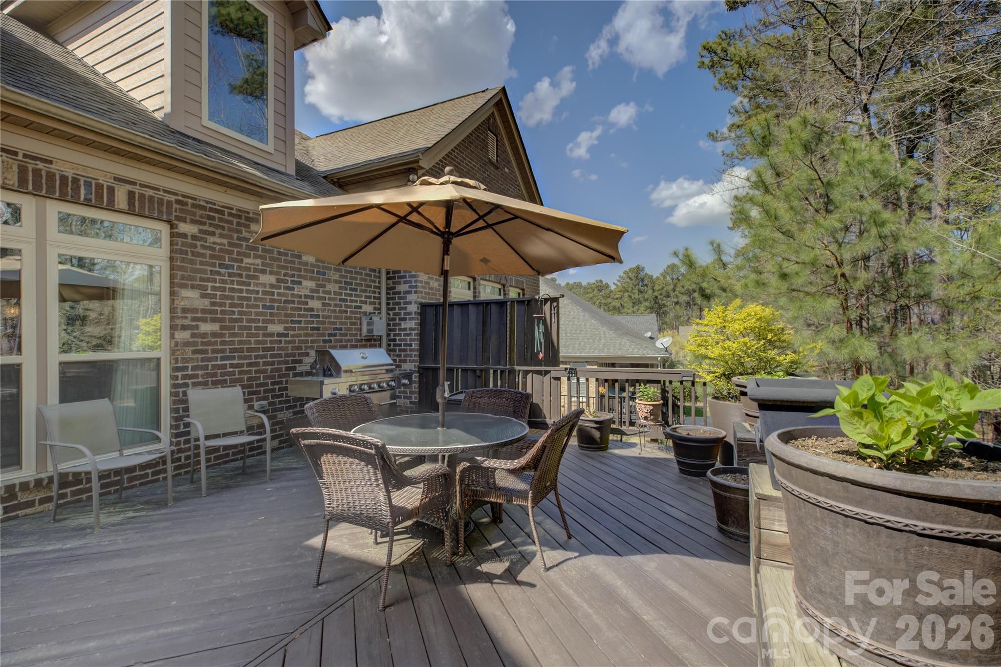Tucked away on a quiet cul-de-sac in the gated Bear Creek enclave of the amenity-rich Palisades community, this exceptional two-story brick-and-stone residence offers timeless curb appeal and a highly functional floor plan designed for both entertaining and everyday living. A welcoming foyer is flanked by a private study/living room and an elegant formal dining room accented by classic wainscoting and a tray ceiling. The home flows seamlessly into the gourmet kitchen—complete with abundant cabinetry, granite countertops, a gas cooktop, and a wall oven—while a convenient pass-through butler’s pantry enhances hosting and storage. The breakfast bar opens to a sunlit great room centered around a striking stone fireplace, creating an inviting gathering space. Step outside to a generous deck overlooking a private wooded backdrop—ideal for morning coffee, outdoor dining, or relaxing in a serene setting. The main-level primary suite is a true retreat, featuring plantation shutters, a double tray ceiling, dual vanities, a soaking tub, and a glass-enclosed shower. A well-appointed laundry room with extensive cabinetry adds everyday convenience. Upstairs, secondary bedrooms are thoughtfully arranged for flexibility: bedrooms 2 and 3 share a Jack-and-Jill bath, while an additional bath connects to bedroom 3 and the bonus room/bedroom 4 configuration—perfect for guests, recreation, hobbies, or work-from-home needs. The oversized bonus room provides excellent versatility and can easily serve as a media space, playroom, or a secondary living area. Residents enjoy access to impressive community amenities, including a clubhouse, outdoor pool, fitness center, playground, pickleball and basketball courts, and walking trails, with optional golf and social memberships available through the award-winning Palisades Country Club.