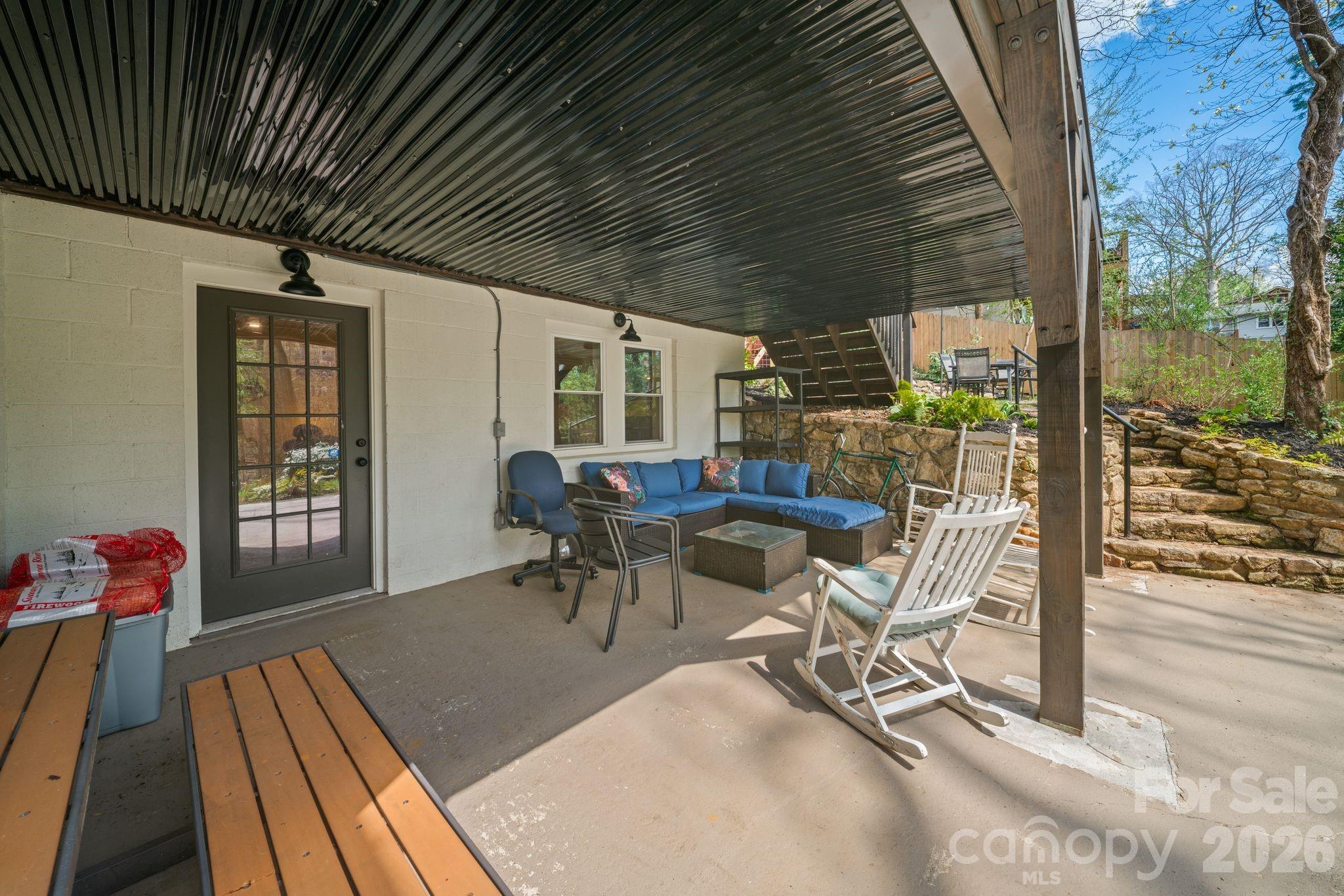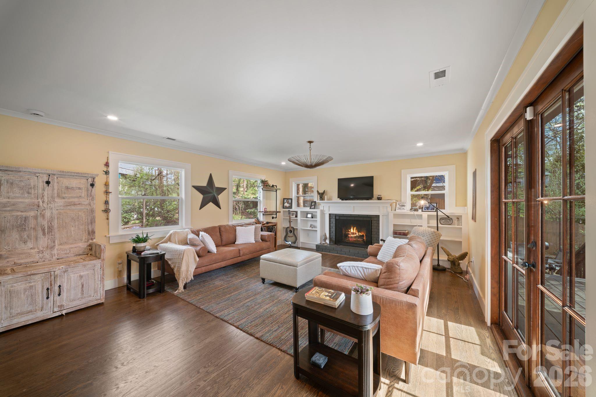 Step into your own private retreat in the heart of West Asheville, just minutes from the lively shops and restaurants of Haywood Road and the River Arts District. This beautifully renovated 1920s bungalow blends classic charm with modern updates throughout. The home features a brand-new kitchen and updated bathrooms designed with both style and functionality in mind. Original details like built-in bookcases, decorative molding, and restored fireplaces in the living room and library add warmth and character. French doors from the living and dining areas open onto a spacious deck surrounded by mature trees and a lush garden—perfect for outdoor dining or relaxing under café lights. The lower level offers a flexible layout with 2 bedrooms, bathroom, one of them with gorgeous double barn doors allows for different uses—ideal for guests or potential rental use. A detached truly adorable studio provides additional space for a home office, creative studio, or private getaway. Sitting on a completely fenced in double lot, the yard is a pet and entertainment paradise! for humans, dogs and even the chickens with the super cool automated coop. A rare opportunity to own a thoughtfully updated home in one of Asheville’s most desirable neighborhoods and listed BELOW tax value!! Ask me for the extensive list of improvements and book your showing NOW!
