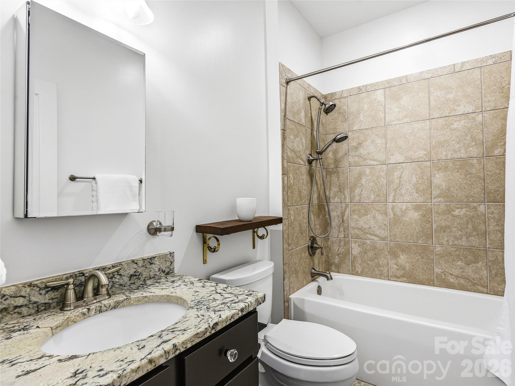 Tucked at the end of a quiet cul-de-sac in sought-after Biltmore Lake, this beautifully maintained 2014 home offers the perfect blend of privacy, comfort, and effortless living. Set on a private lot with a fenced backyard and dedicated garden area, the property invites both relaxation and connection to the outdoors. The main level is designed for ease, featuring a spacious primary suite with two walk-in closets and a well-appointed bath with a walk-in shower and a classic clawfoot tub. Two additional bedrooms on the main floor provide flexibility for guests, an office, or a fitness space. An open-concept floor plan creates a natural flow between the living, dining, and kitchen areas, anchored by a well-appointed kitchen with granite countertops, a farmhouse sink, and stainless GE Café appliances. A light-filled sunroom with a vaulted ceiling extends the living space and opens to a deck overlooking the private backyard—perfect for morning coffee or evening gatherings. Upstairs, a private guest suite offers comfortable separation for visitors. The lower level adds exceptional functionality with a workshop, half bath, and thoughtful upgrades, including a radon mitigation system, whole-house water filtration, and a high, dry crawl space ideal for storage. Step outside to the lower deck and unwind in the hot tub, surrounded by a peaceful, private setting. Enjoy the unmatched lifestyle of Biltmore Lake, with access to the lake, miles of walking trails, tennis and pickleball courts, and a vibrant, amenity-rich community just minutes from Asheville.