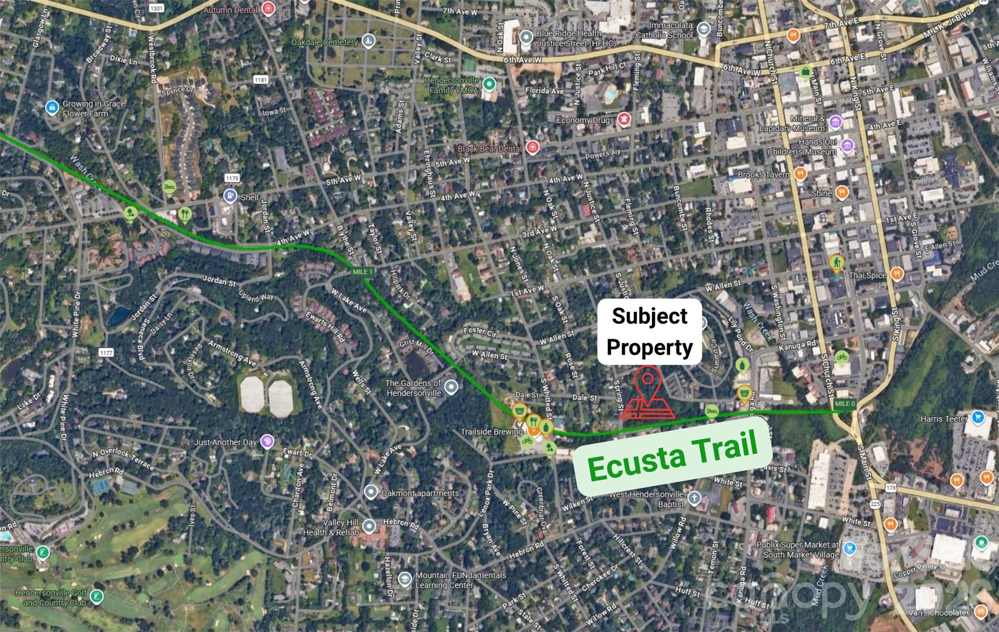 Rare opportunity to acquire over 3 acres directly along the Ecusta Trail in Hendersonville. This property offers approximately 325+ feet of trail frontage and is positioned within walking distance to downtown, grocery stores, breweries, and local shopping. The property features a natural creek and a highly usable layout with strong development potential. Zoned R-6 (High Density Residential), the site allows for up to 6 units per acre. City water and sewer is available!
