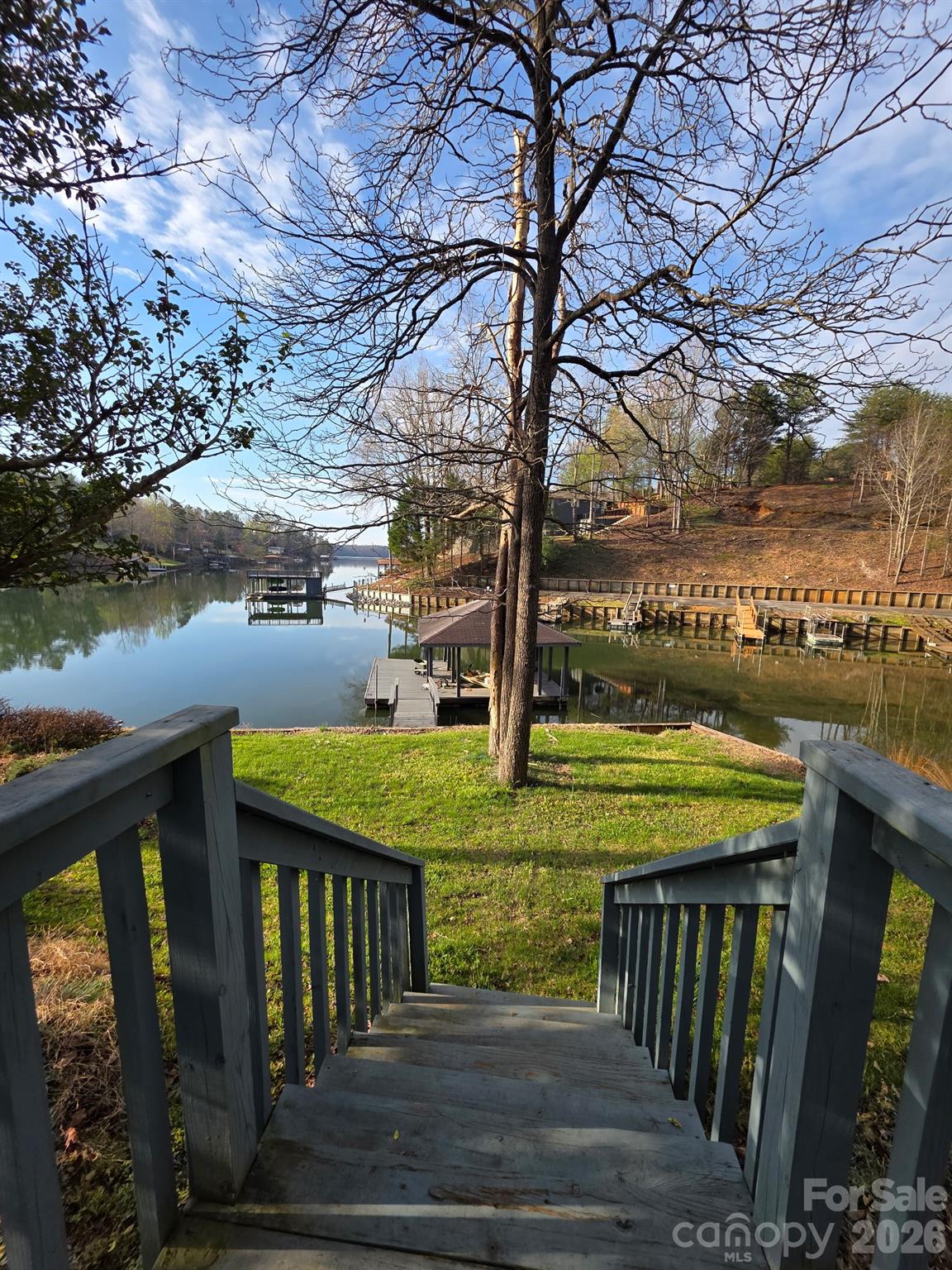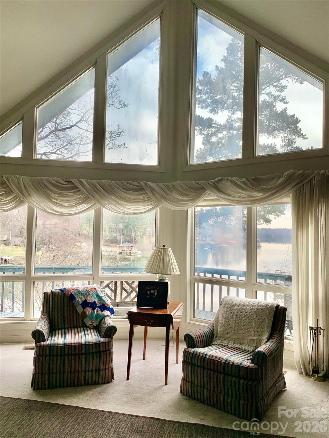 Stunning lakefront retreat on Lake Hickory offering approximately 2.82 acres and an impressive 450 feet of shoreline. Situated on a private point lot, this property boasts exceptional views overlooking a peaceful cove across the main channel, delivering both scenic beauty and a true waterfront experience. The home features 4 bedrooms and 2.5 bathrooms, with a functional layout including a main level living area and full basement, providing ample space for family, guests, or entertaining. Expansive windows throughout capture breathtaking lake views and fill the home with natural light. Step outside to a large deck overlooking the water, perfect for relaxing or hosting gatherings while enjoying the tranquil setting. A covered boathouse offers convenient lake access, ideal for boating, fishing, or simply enjoying life on the water. Surrounded by mature trees and a serene landscape, the property provides privacy and a natural setting rarely found with this amount of waterfront. A detached garage offers additional storage or workshop space. Whether you’re looking for a full-time residence, vacation getaway, or investment opportunity, this property offers a rare combination of acreage, point lot positioning, and expansive waterfront on Lake Hickory.