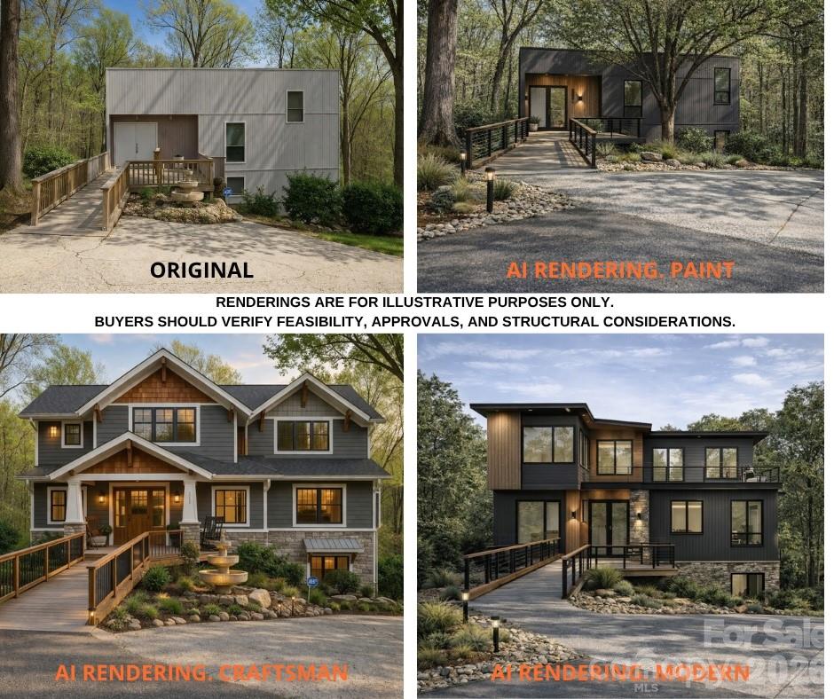 Tucked away on a private, wooded 1-acre lot in Mountainbrook, one of SouthPark/ South Charlotte’s most established neighborhoods, 3423 Tinkerbell Lane is anything but ordinary. Originally built in 1977 with bold contemporary architecture, this home presents a rare opportunity for buyers seeking a modern renovation project, large lot, or custom build opportunity in South Charlotte. With approximately 2,900 square feet, 4 bedrooms, and a uniquely tiered layout, the main living areas are positioned on the upper level to maximize natural light and wooded views, while the bedrooms and secondary living space are tucked below for privacy. The lower level offers the feel of a private retreat with walk-out access, including a tucked-away patio that lives like a secret garden—quiet, secluded, and surrounded by nature. Set on over an acre in Mountainbrook, a highly sought-after SouthPark neighborhood, the property offers a rare combination of privacy, mature trees, and proximity to everything. Located just minutes from SouthPark’s shopping, dining, and daily conveniences, this home delivers space and seclusion in the heart of Charlotte. Residents also have the option to join the private Mountainbrook swim and tennis club, offering community amenities without a mandatory HOA. The home is livable as it stands but is ideally suited for a buyer with vision. Whether renovating the existing contemporary structure or building new, this property offers strong upside potential in an area where renovated and new construction homes command premium values. Conceptual renderings are included to illustrate the home’s potential—featuring a reimagined open-concept main level, expanded chef’s kitchen, enhanced indoor-outdoor living with a large entertaining deck, and the opportunity to add an upper level. Renderings are for illustrative purposes only; buyers should verify feasibility, approvals, and structural considerations. A rare chance to create a modern home on a private 1-acre lot in SouthPark Charlotte—where location, land, and potential come together.