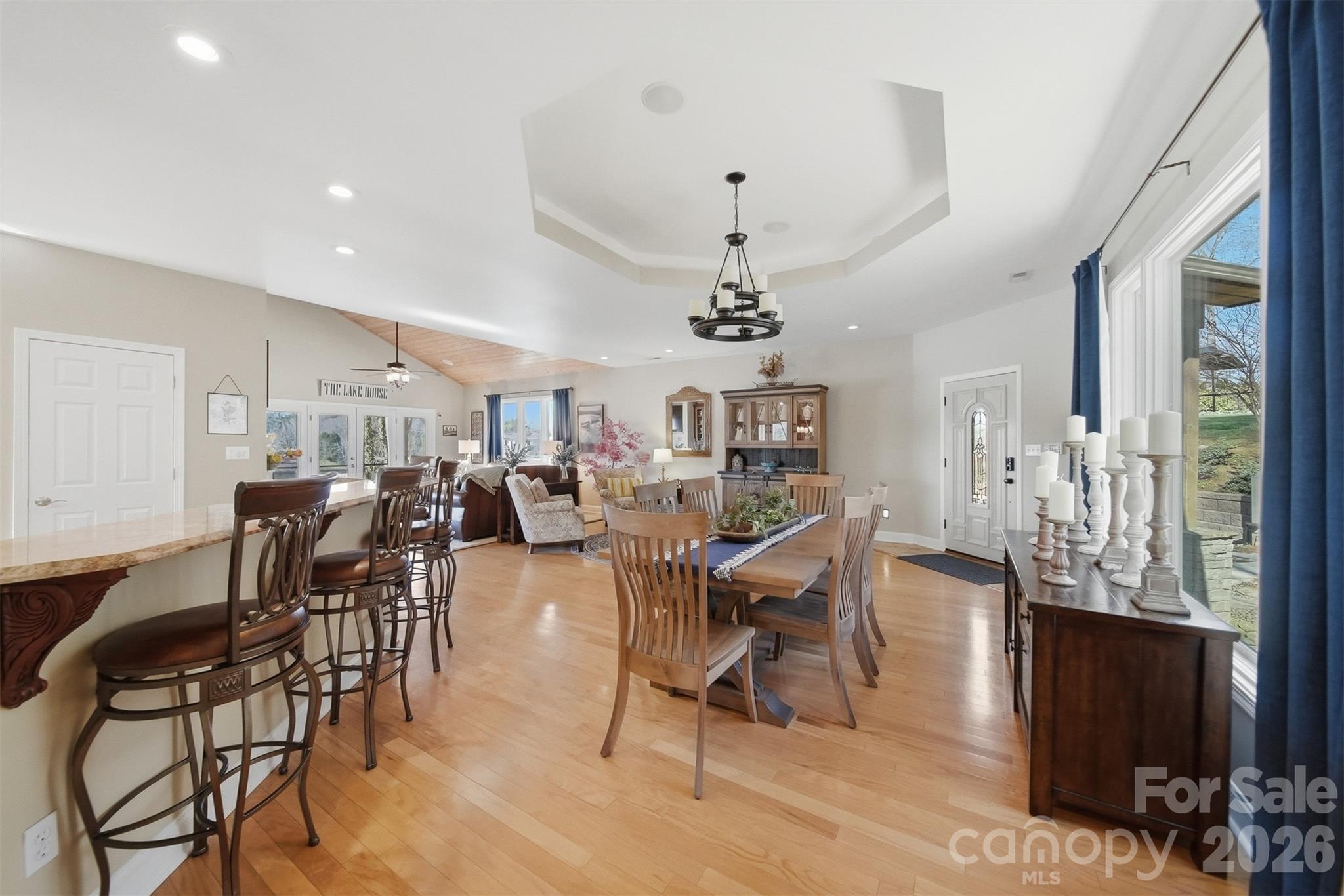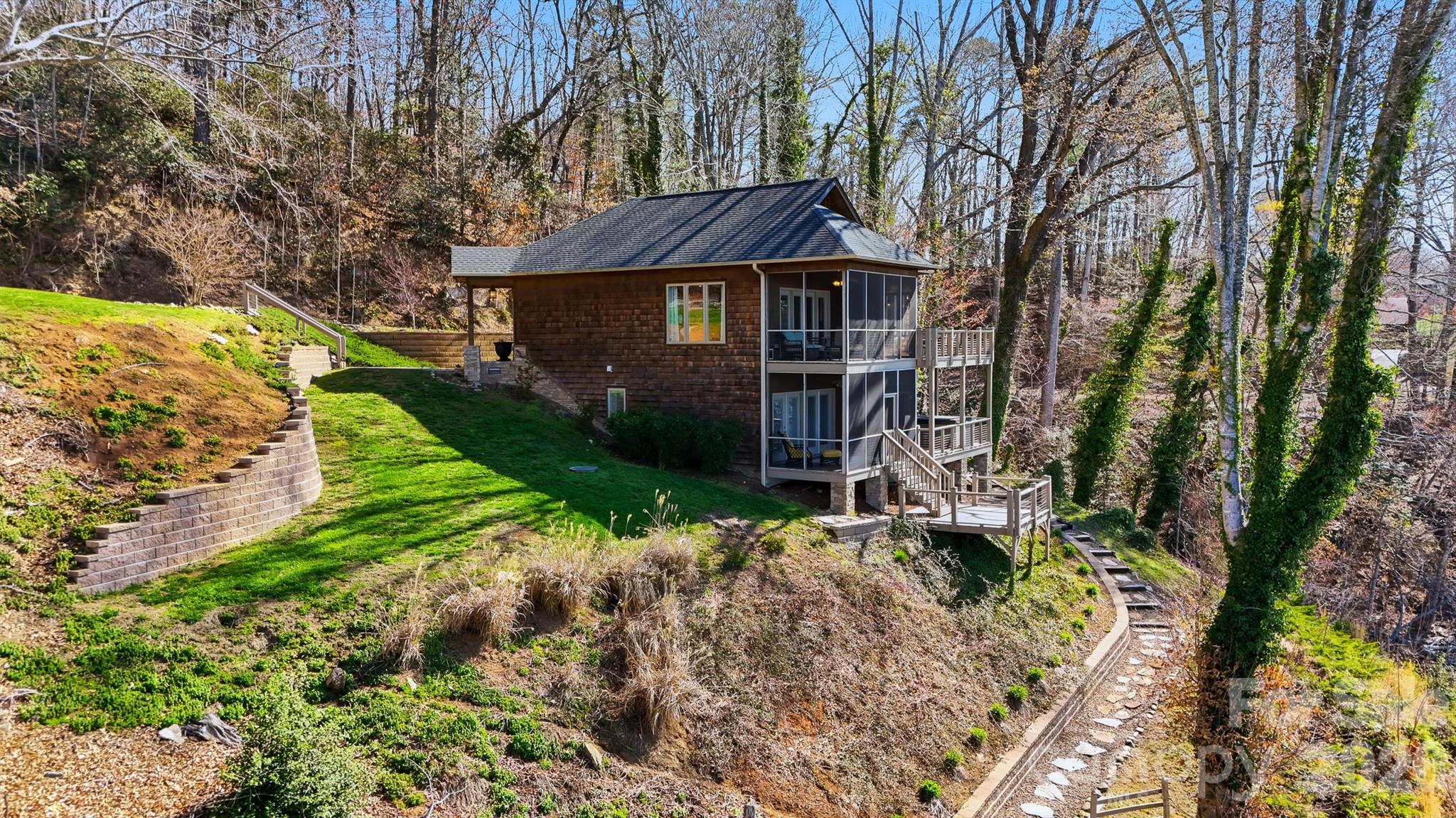 Experience lakeside living at its finest with this stunning, partially furnished home on the main channel of Lake Hickory. This gorgeous home comes complete with stylish furniture, decor, and accessories-simply open the door and start enjoying your new home. The property features enclosed decks on both the upper and lower levels, with the upper deck off the main living area and the lower deck accessible from the primary bedroom. Enjoy breathtaking sunrises and sunsets from the decks or updated dock! Nestled in a private, wooded setting surrounded by nature and wildlife, this home offers a peaceful retreat with modern updates. The beautifully landscaped grounds enhance the outdoor space, including a cozy fire pit area. With so many features and comforts, this property is truly a lakeside paradise. The septic allows for a 2BR. There is a 3rd room on the lower level that can be used as an office but has been used as a third bedroom. Jack and Jill bath shared between bedroom 2 and office. The home was previously on the market and taken off for a short term rental. Road maintenance agreement in place. Deed book 268 pg 169