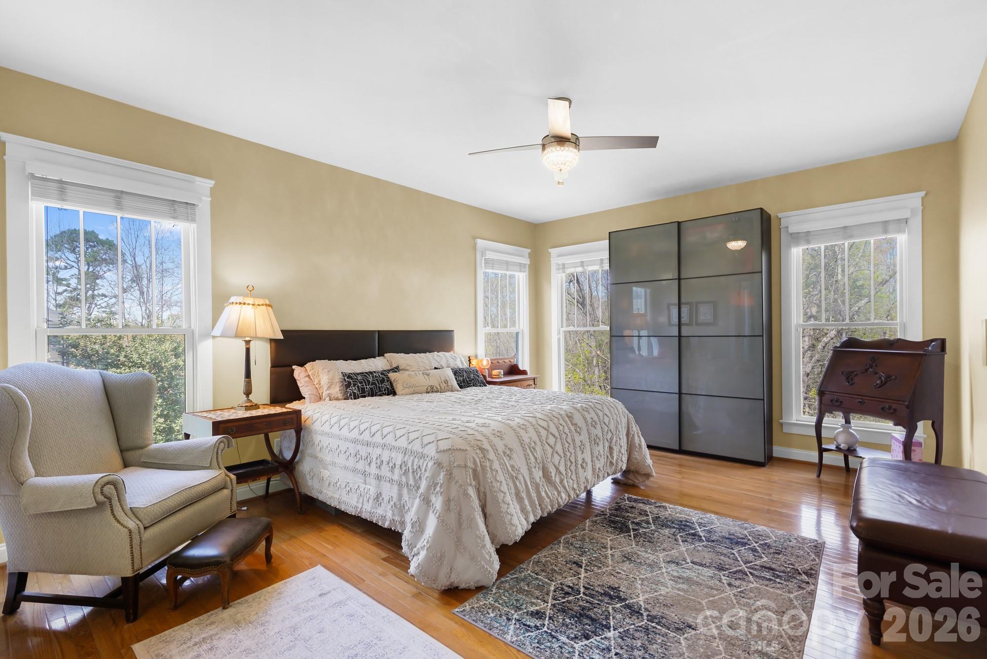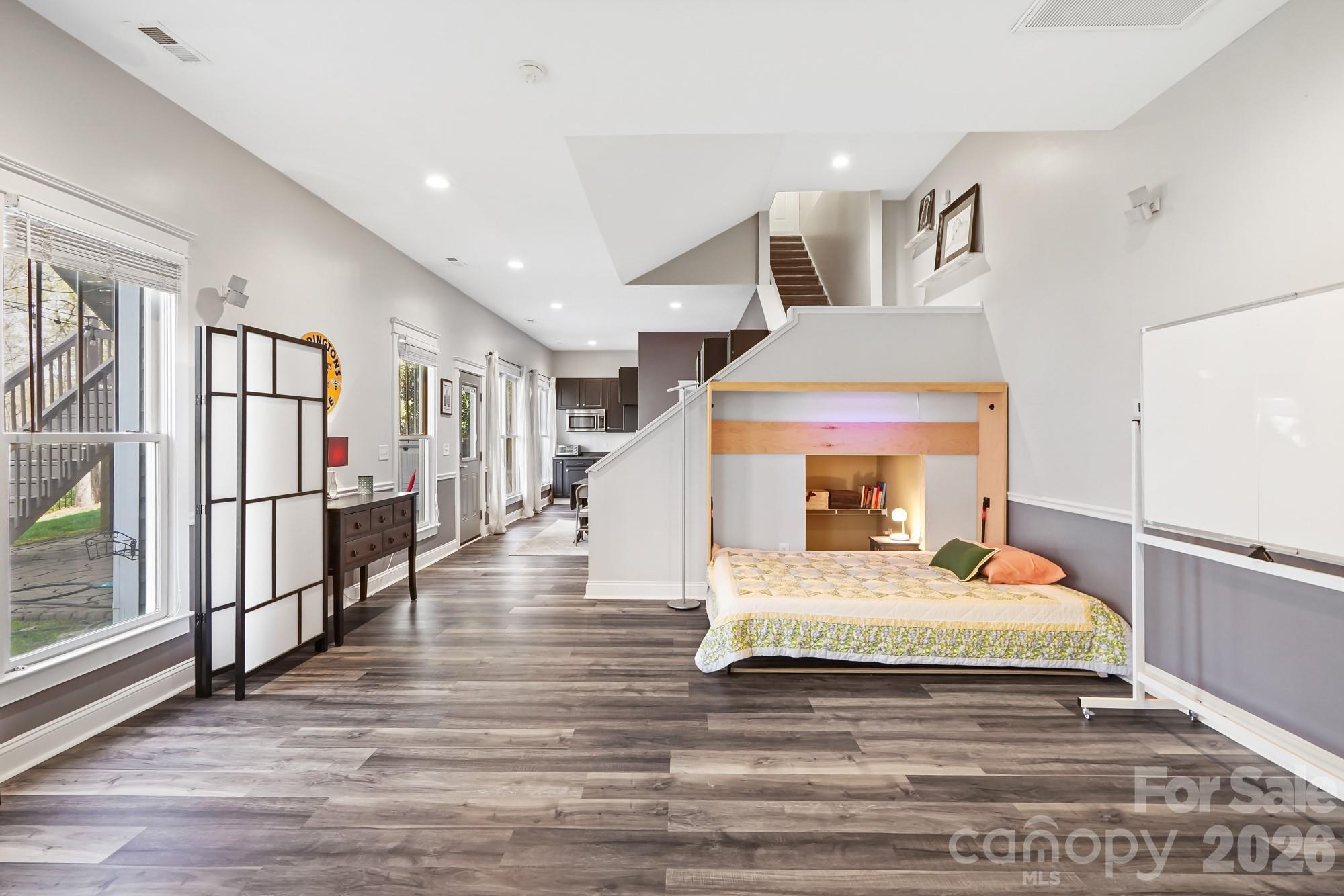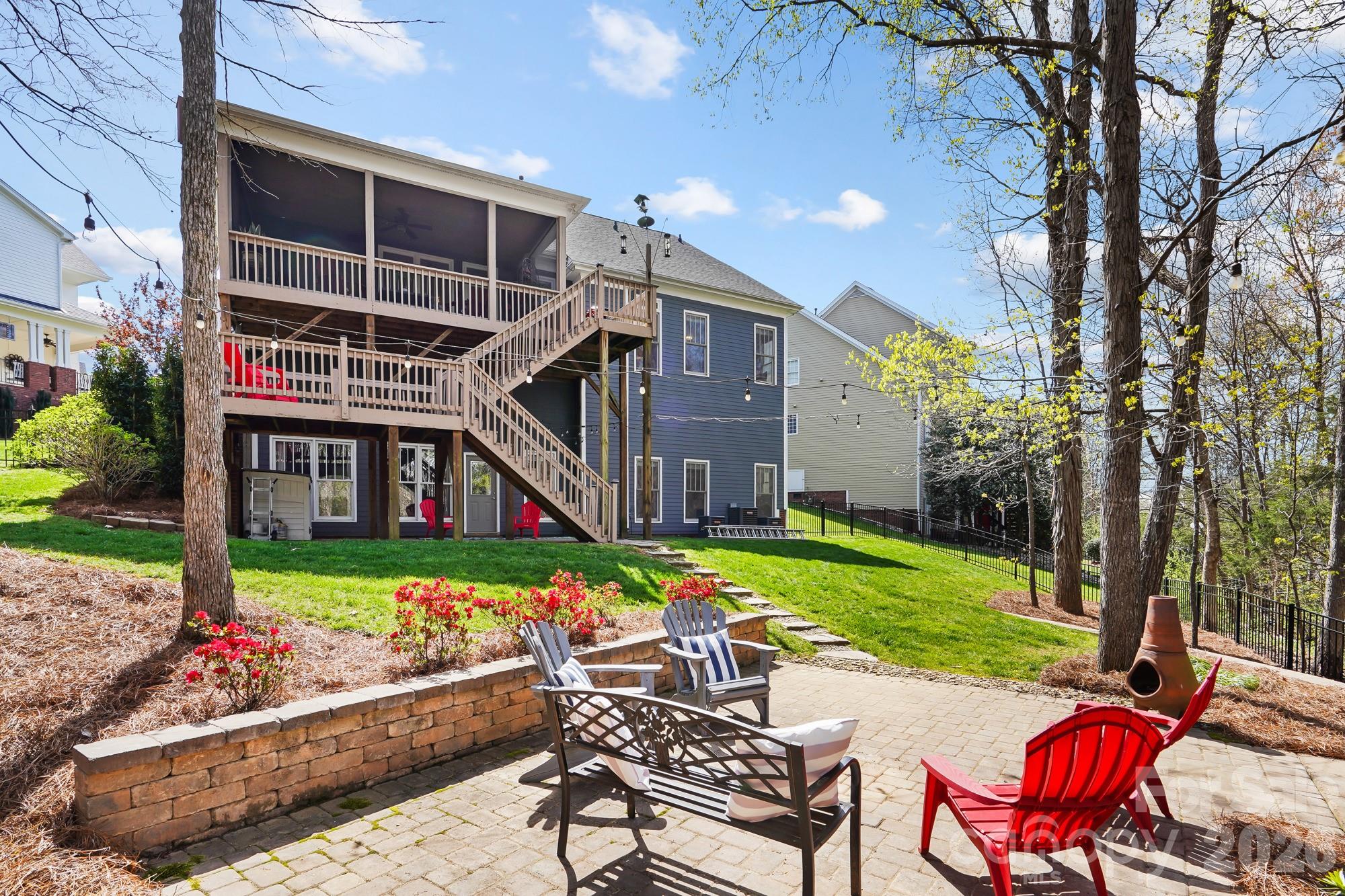 This beautiful basement home is a one of a kind find in Skybrook! From the charming front porch, to the unique, custom touches throughout, you’ll love it from the moment you arrive. Located on a rare Skybrook cul-de-sac lot, this home sits on .9 acres, one of the largest lots in the community, and backs to a wooded greenspace area that will never be developed. The first floor Owner’s retreat boasts tons of natural light, a custom primary bathroom with an oversized custom tile shower, custom vanity, and a large walk in closet with built ins. The great room feels both grand and cozy at the same time, thanks to vaulted ceilings and a cozy fireplace. Enjoy the beautifully renovated kitchen that features custom cabinetry, granite countertops, a decorative ceramic tile backsplash and stainless steel appliances. Upstairs, there are three bedrooms, two full baths, and a very large bonus room, ensuring there is plenty of space for everyone. Work from home with several home office options for zoom meetings. Need even more space? The finished basement doesn’t feel like a basement at all, with tons natural light, 10 foot ceilings, and its own exterior entrance, this lower-level offers a whole separate living space. There is a kitchenette with a 2 burner electric stove & small refrigerator, a full bathroom with custom walk-in shower, a closet, and a large recreation room. Want the option to use it in multiple ways? There is a built in murphy bed that stores perfectly against the wall to give a lot of space in the basement Rec Room or pulls down into a bed for guests. Use the basement as a recreational space, an office, or even as an income generating lower level studio apartment with its own entrance. Love the outdoors? This home has 5 different outdoor living areas! Enjoy a cup of coffee on your full front porch while sitting on your porch swing in the morning. Then have a refreshing glass of lemonade on your large screened in porch with fan and retractable sun shades during the day, then entertain at night, using the versatile deck off the stairs as a grilling deck and food/drink station while you entertain guests between the large patio off the basement and large hardscape paver patio in the backyard, both magical at night underneath party lights and perfect for entertaining. And the storage! There are multiple walk-in-attic storage options and there is a crawlspace towards the front of the home with flooring and electricity, making it a great place for a workshop and additional storage. Have an electric car? There is a 220V plug in the garage specifically installed to charge electric vehicles. 2 airports within 30 minutes! From the community, cul-de-sac lot, backing to greenspace, multi-level living options, multiple outdoor living areas and a basement that can be it’s own apartment, this home has it all!