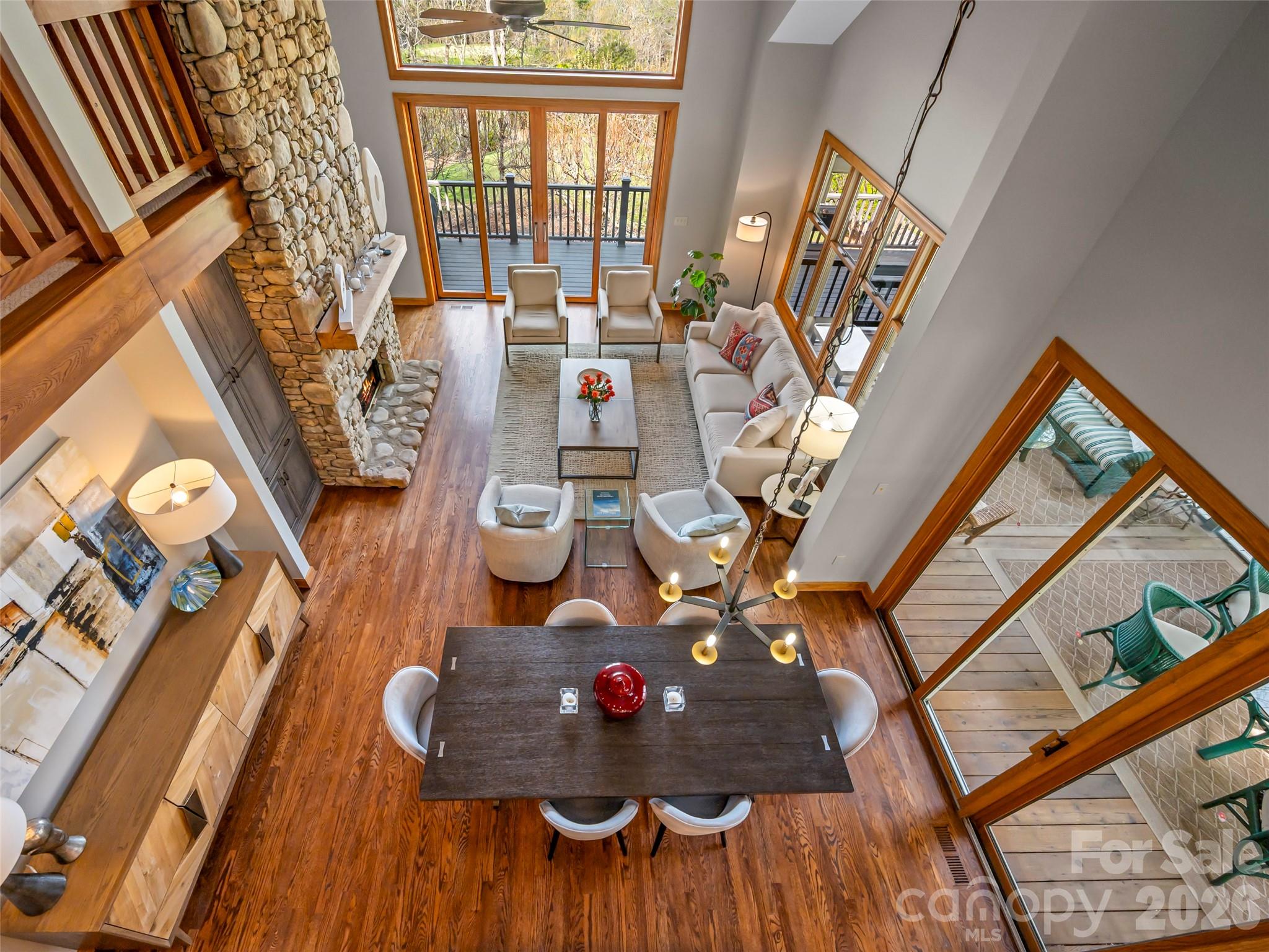 Experience mountain living at its finest in the prestigious Champion Hills community, home to Tom Fazio’s Mountain Masterpiece golf course. This stunning, fully updated 3 bedroom, 3 bath cottage offers breathtaking long-range views and a prime setting overlooking the 10th tee. Designed for effortless “lock-and-leave” convenience, this home delivers exceptional style, comfort, and scenery without compromise. Step through the covered entry into a light-filled open floor plan, beautifully anchored by a dramatic two-story stone fireplace. The heart of the home is the chef’s kitchen, thoughtfully renovated by Paul Taylor. Showcasing premium finishes and custom cabinetry, it flows seamlessly into the dining area and great room, perfect for intimate dinners or entertaining family and friends. Double sliding doors open to the expansive back deck, where the Blue Ridge Mountains create a stunning everyday backdrop. An oversized screened porch offers a tranquil retreat for quiet afternoons with a book or evenings spent enjoying wine with friends, surrounded by the peaceful sounds of nature. The thoughtfully designed layout emphasizes main-level living, featuring a comfortable guest bedroom with a full bath that can function as an ensuite, ideal for visitors or a home office. Upstairs, you’ll find a private ensuite bedroom, a versatile loft, and a dedicated office space, providing flexibility for work or relaxation. Embrace the serenity of the Blue Ridge Mountains while enjoying the resort-style amenities of one of the Top 50 private residential golf communities in the US.