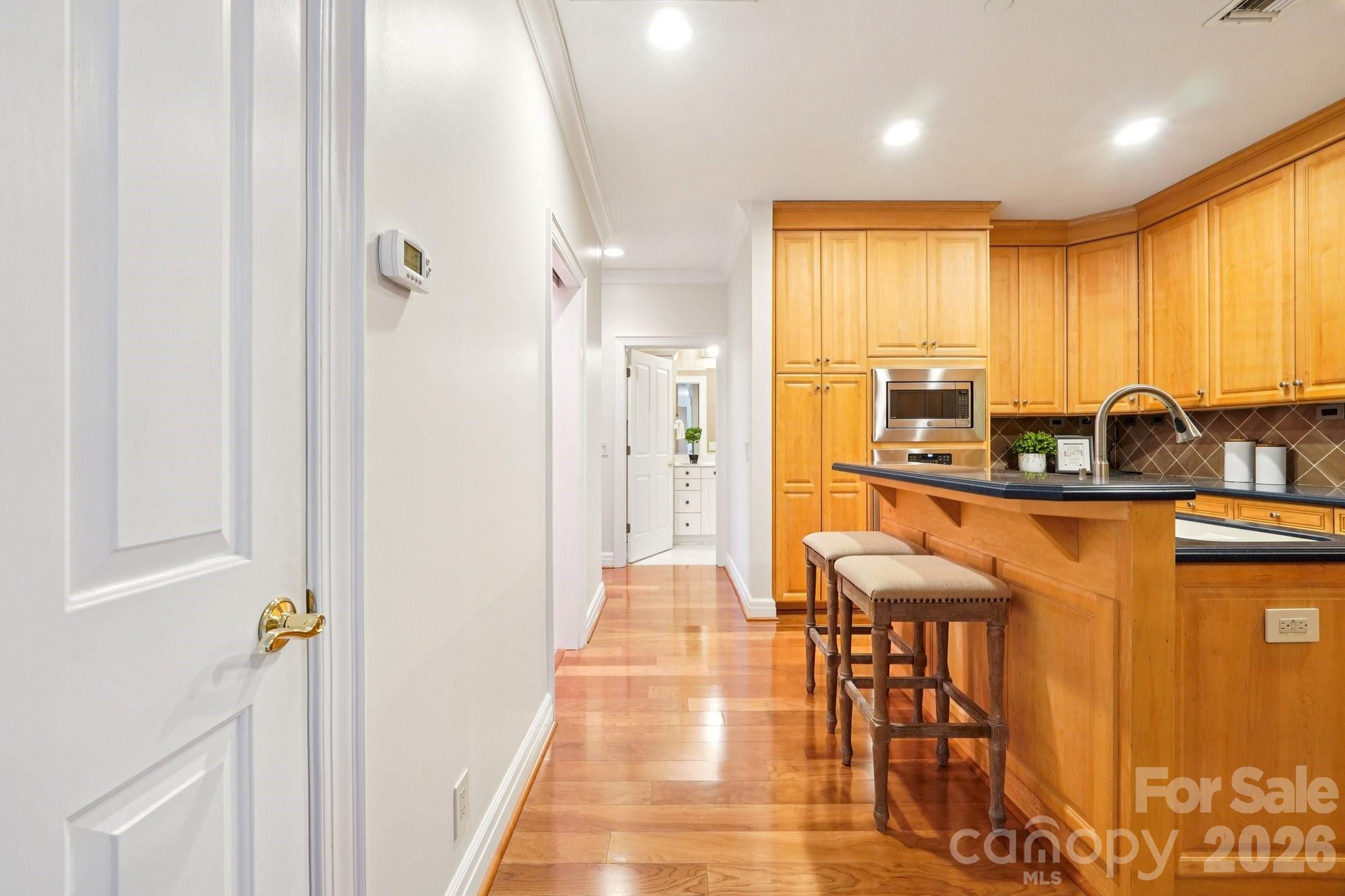 With a casual yet sophisticated urban elegance, this condo is special. Located in Historic 4th Ward, Chapel Watch is known for its superior construction, quality craftsmanship and boutique intimacy. As you enter the foyer you look directly through the spacious living area to the double glass patio doors which open onto the large covered terrace. There is plenty of space for alfresco dining and entertaining as well as a direct plumbed gas grill. The view is expansive over the green tree canopy of the neighborhood and showcases spectacular sunsets as you wind down after a busy day. There is also a terrace water source for your container garden The sidewalks on mostly residential North Church Street are tree-lined and neighbors are friendly. Inside you can enjoy all large rooms and an open feel with ample natural light. The Brazilian Cherry hardwood floors gleam. The kitchen has a large central island for gathering or multiple chefs doing the cooking. Gas cooking is a plus. The primary bedroom is ensuite and best in class size with a private nook for reading or organizing. The walk-in closet is huge. This is a secure building with 2 dedicated parking spaces and a temperature controlled storage unit across the hall. It is easy to lock-and-go for a long weekend or extended trip but you will always look forward to coming home.