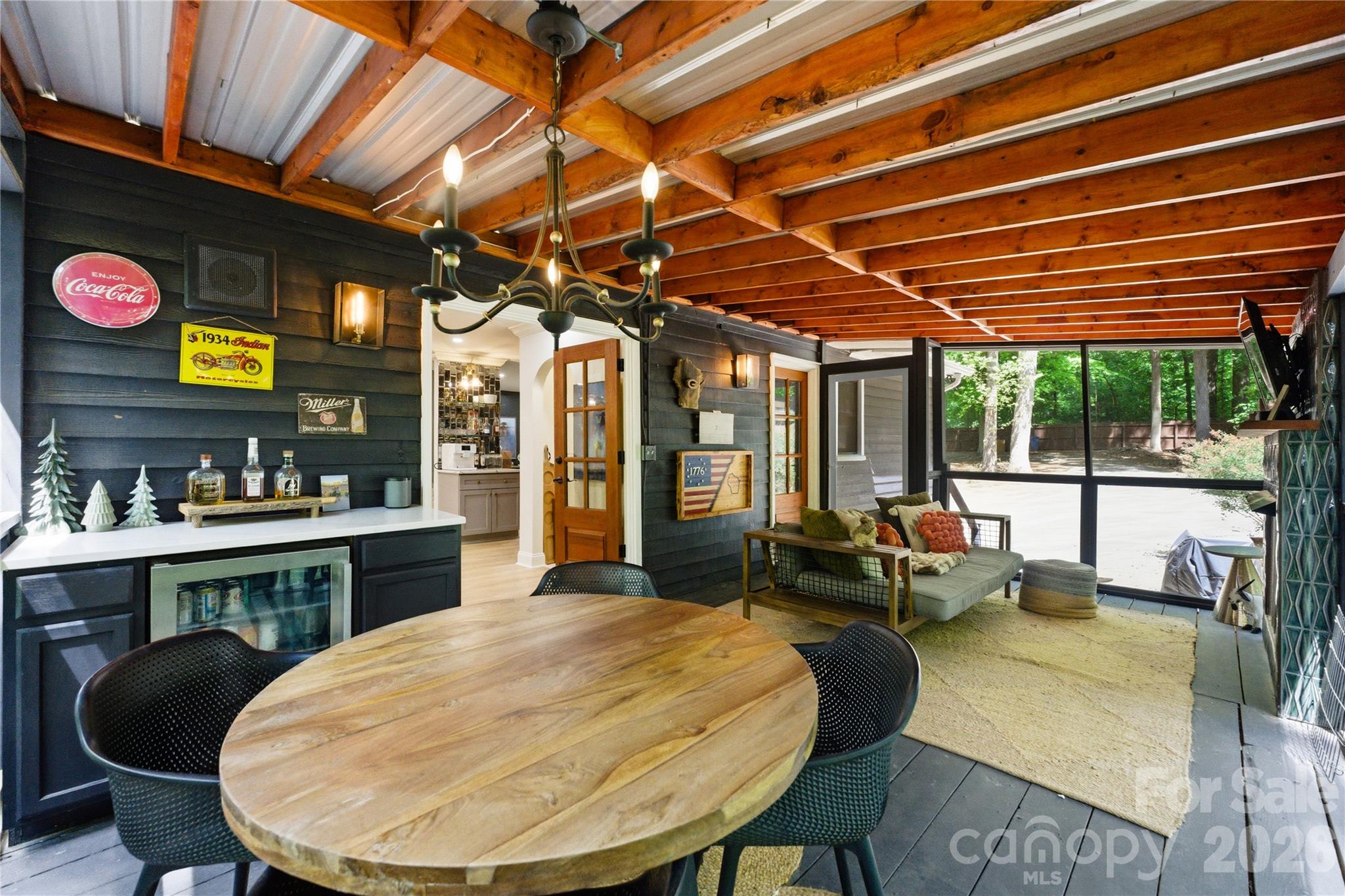 Already extraordinary, this home has now been refined with even more luxurious upgrades. Nestled on 3 wooded acres in Mint Hill, this custom residence offers a rare sense of privacy & serenity while remaining conveniently located inside the 485 loop & just 20 minutes from Uptown Charlotte. Featuring 5 bedrooms, 3 bathrooms, & thoughtful modern enhancements, this property blends tasteful craftsmanship with sophisticated appeal. The kitchen now featuring a new butler’s pantry & new tile backsplash, offering added style & functionality. A tankless gas water heater (2026) has also been installed for enhanced efficiency, comfort, & convenience throughout the home. Showcasing 3 fireplaces—wood, gas, & electric—the home is rich in warmth & character. A covered rocking chair front porch & screened-in back porch with fireplace create inviting spaces to relax & enjoy the peaceful wooded setting. The main level includes both a bedroom and the primary suite, while the three additional bedrooms upstairs provide generous flexibility for guests, a home office, or a flex room if needed. The primary suite also offers direct access to an exceptionally designed hot tub deck, complete with Massaranduba Brazilian hardwood decking & a Caldera Seychelles 7-person saltwater spa. Throughout the home, timeless finishes such as a fireplace built from ancient reclaimed Mediterranean stone, a travertine grilling patio, imported designer wall covering, & elegant lighting create a refined sense of character. Outdoor living is equally inviting, with an oversized fire-pit & fenced-in raised bed garden set within a peaceful wooded setting. Recent improvements include Monotech Monolithic hardwood floors installed in September 2025, an architectural shingle roof (2023), triple-pane windows (2022), mahogany wood doors (2022), a whole home water filtration system, & fully finished 2-car detached garage completed in 2024 with commercial-grade Polyurea flooring.