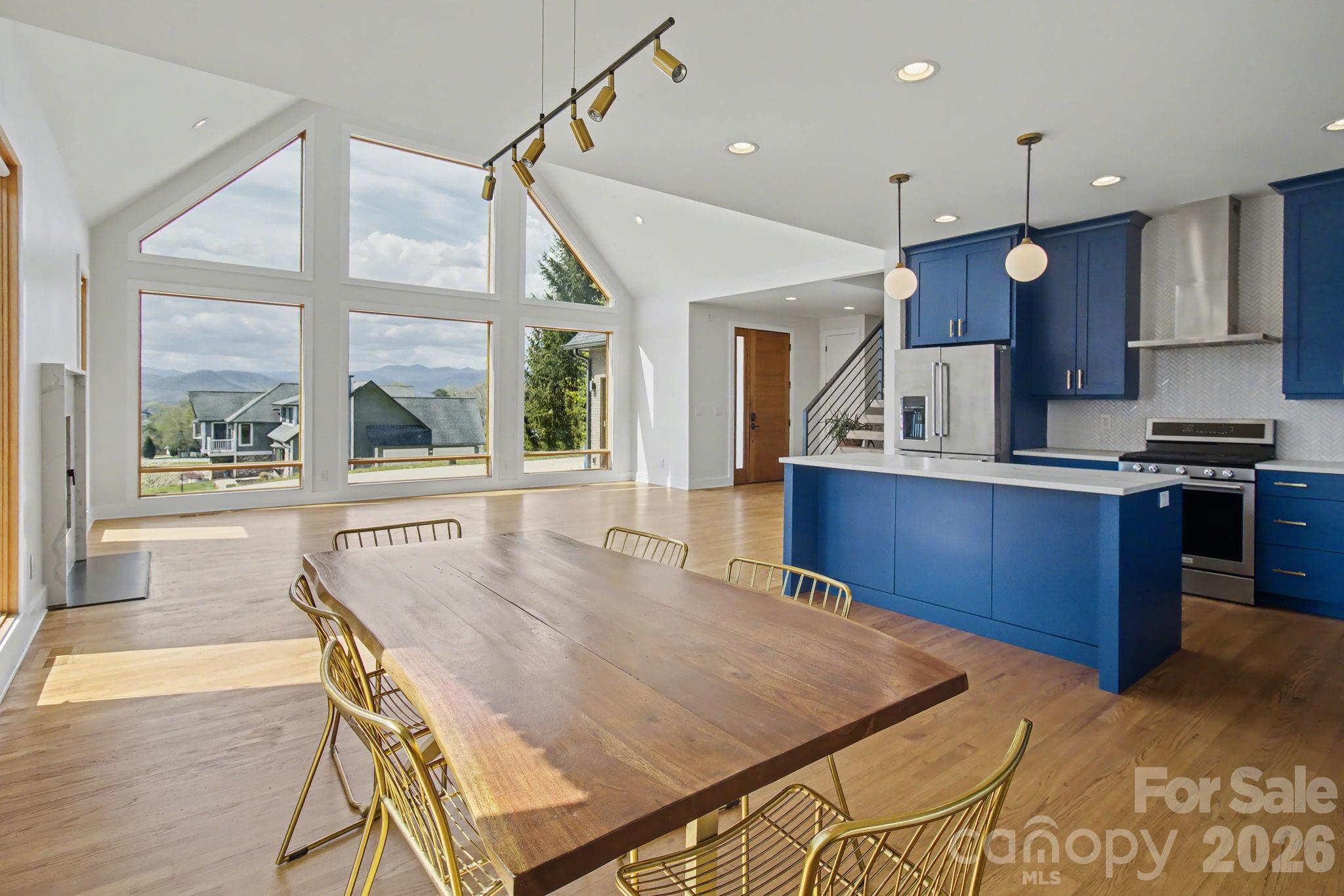 Discover modern luxury tailored for lovers of expansive open-plan living and unforgettable views. This impeccably designed residence frames million-dollar mountain panoramas through floor-to-ceiling glass in a soaring great room that flows effortlessly into a chef’s-caliber kitchen featuring a generous quartz island, artisan mosaic backsplash, oversized farmhouse sink, and gas range. A signature floating staircase, recessed lighting, and a sleek flush-mounted wood-burning fireplace elevate the contemporary aesthetic, while French doors open to a screened, covered deck for seamless indoor-outdoor entertaining. The primary bathroom has a 6 ft enameled cast-iron tub which stays hot for hours. There is a full house water filtration system & Charcoal filtration system that filters out Chlorine & Fluoride w/ a UV Light to Filter out bacteria, parasites & heavy metals. The main-level primary suite is a private sanctuary with direct access to the covered screened deck and spa-caliber bath freestanding soaker tub, floating dual vanity, tiled shower and a vast walk-in closet ready for custom organization. Upstairs, two generous bedrooms, a full bath and two versatile bonus rooms provide flexible space for guests, a home office, a fitness studio, or a creative studio. Comfort is optimized year-round with three independent heating and cooling zones, ensuring personalized climate control throughout. Modern, spacious and exquisitely appointed this home delivers refined living and panoramic views at every turn.