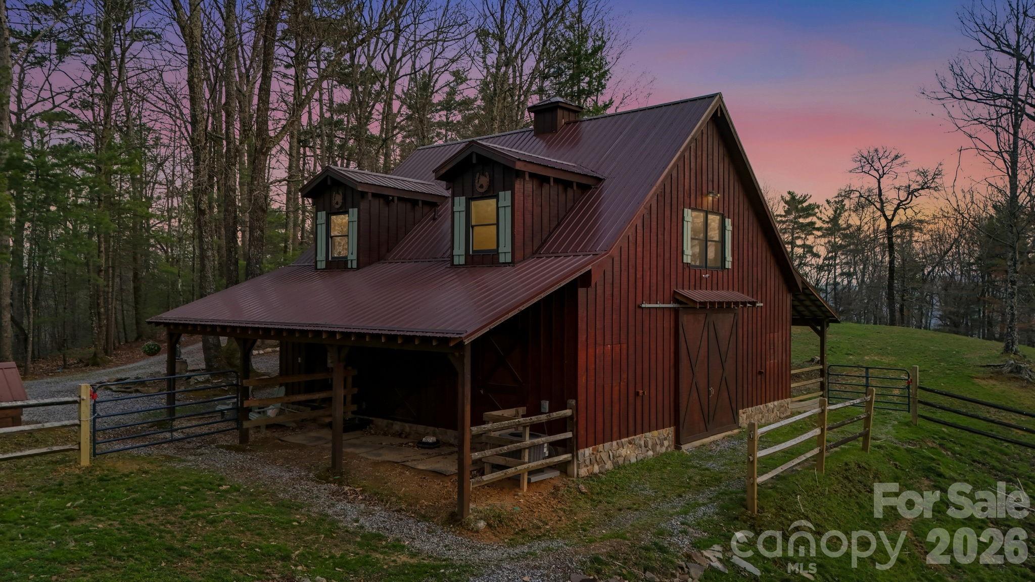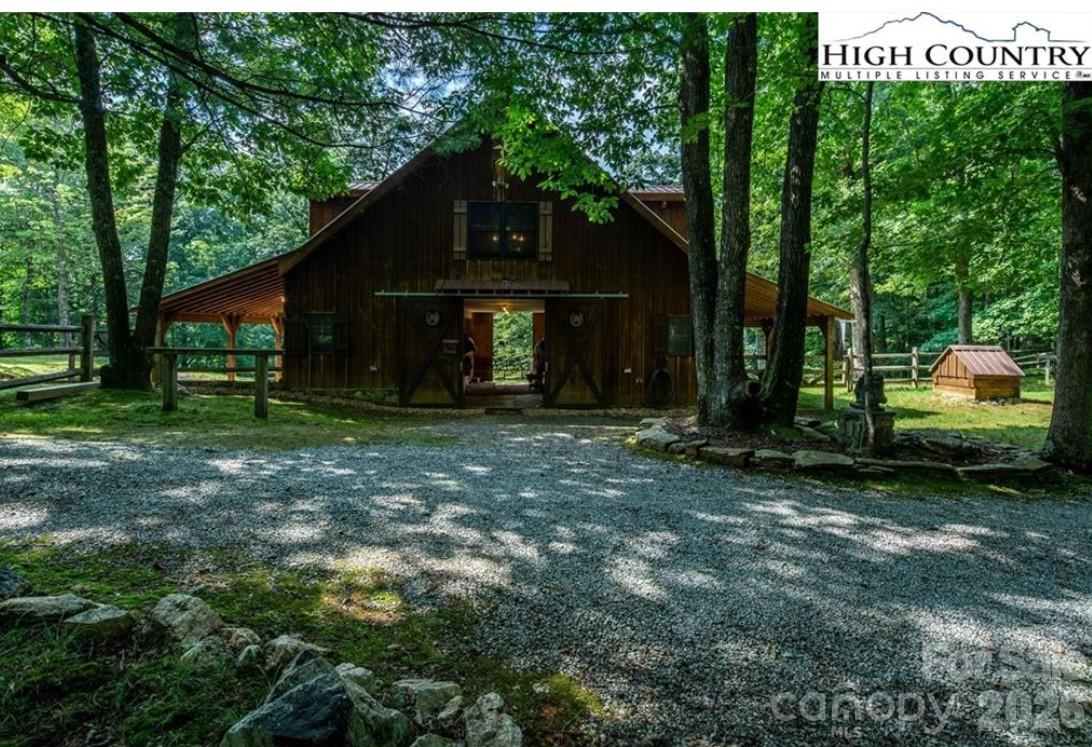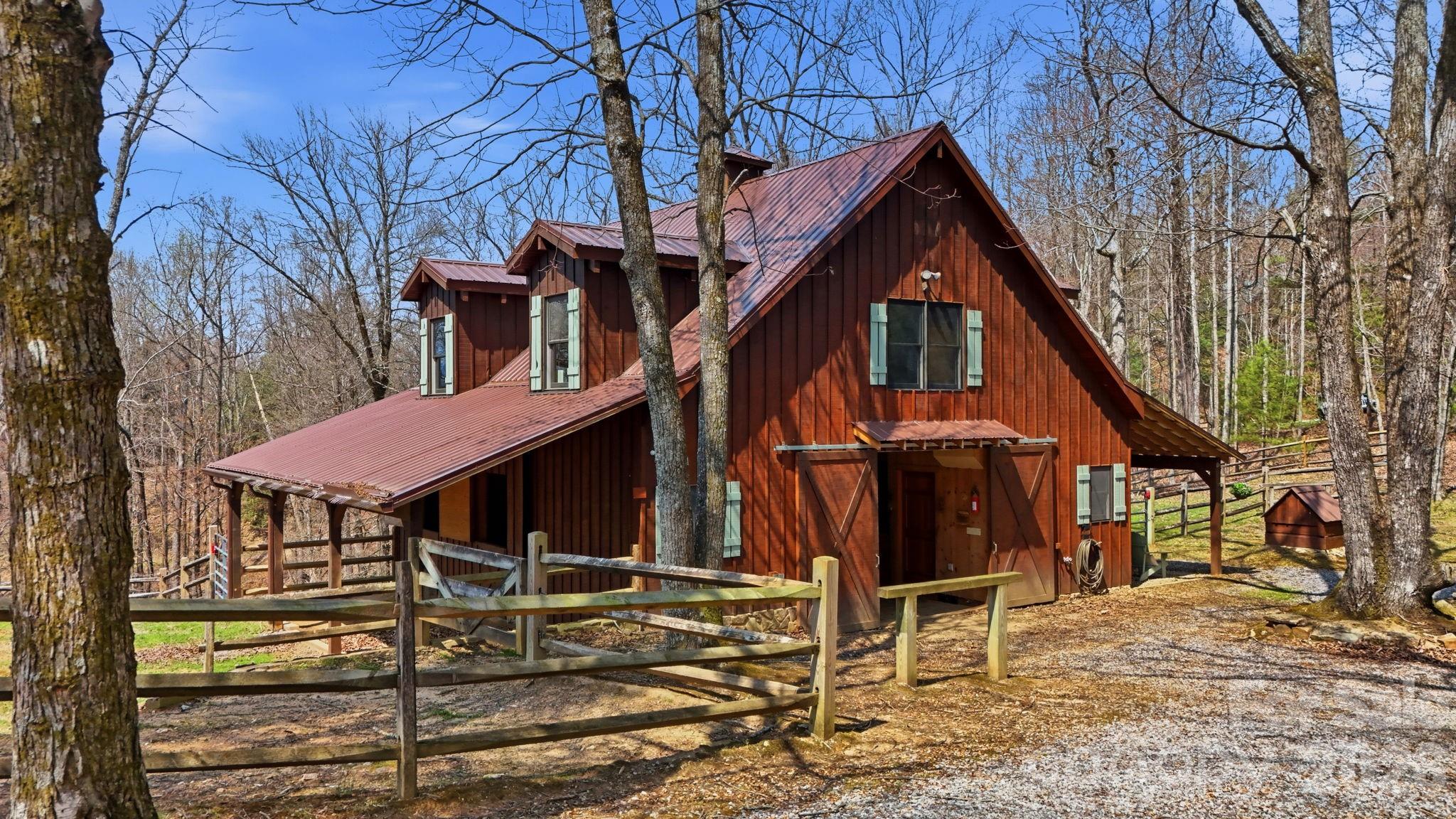 Saddle up and ride directly from your private 11.23-acre retreat! Located in the premier equestrian community of Leatherwood, this property features three fenced pastures, a run-in shed, and a custom 4-stall barn with a tack room and a stunning second-story apartment. The main cabin captures the "wow" factor with vaulted beam ceilings and a majestic wood-burning stone fireplace. Highlights include a main-level primary suite, kitchen with granite counters, second level with a large loft, guest suite with an ensuite full bathroom, and an expansive covered deck for sunset entertaining. The barn apartment is plumbed for a kitchenette and features its own HVAC/septic, which is ideal for guests, a rental, or a quiet home office. Bonus features: Carport, a detached storage building, and a ready-to-use chicken coop! Miles of trails await just minutes from your front door. Offered furnished with a few exceptions. BE SURE TO WATCH THE VIDEO OF THIS INCREDIBLE HORSE PROPERTY! Leatherwood is a gated community that offers extensive horseback riding & hiking trails, a swimming pool, tennis & pickleball. Commercial venues outside the entrance include a restaurant, equestrian center, zipline, and campgrounds. Convenient to Boone, Blowing Rock, West Jefferson & Wilkesboro.